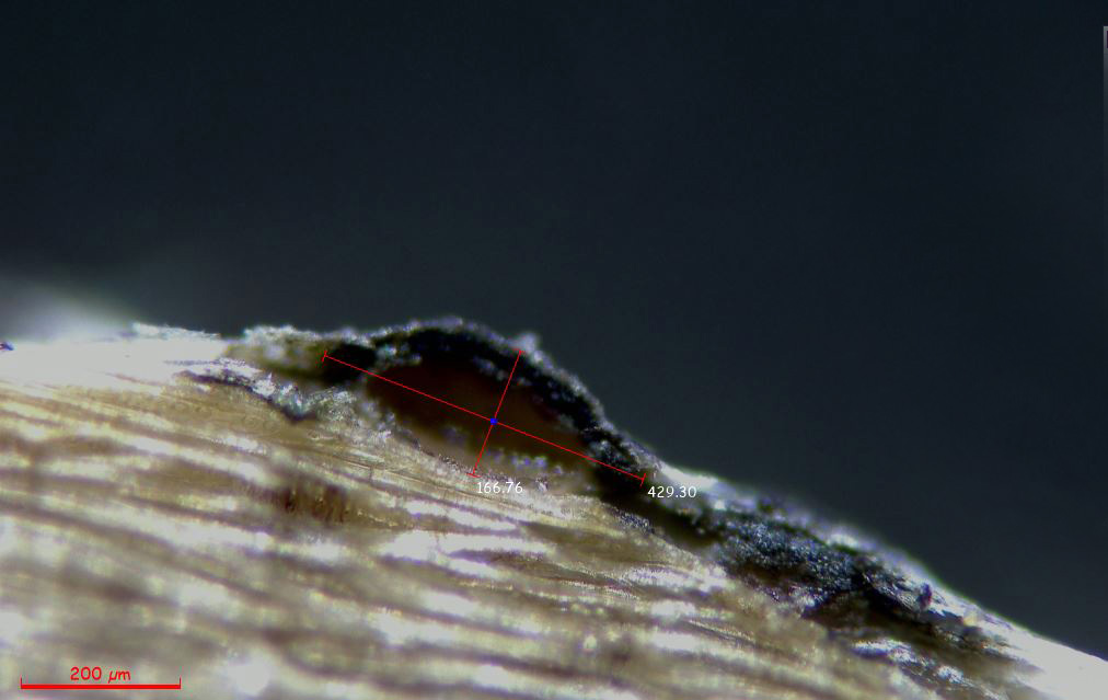 Para terminar añado una comparativa de los ascomas del Exarmidium inclusum y del Exarmidium del presente estudio a la misma escala, a mi propuesta la he llamado Exarmidium JTP 1938/23, que se corresponde con el número del herbario.