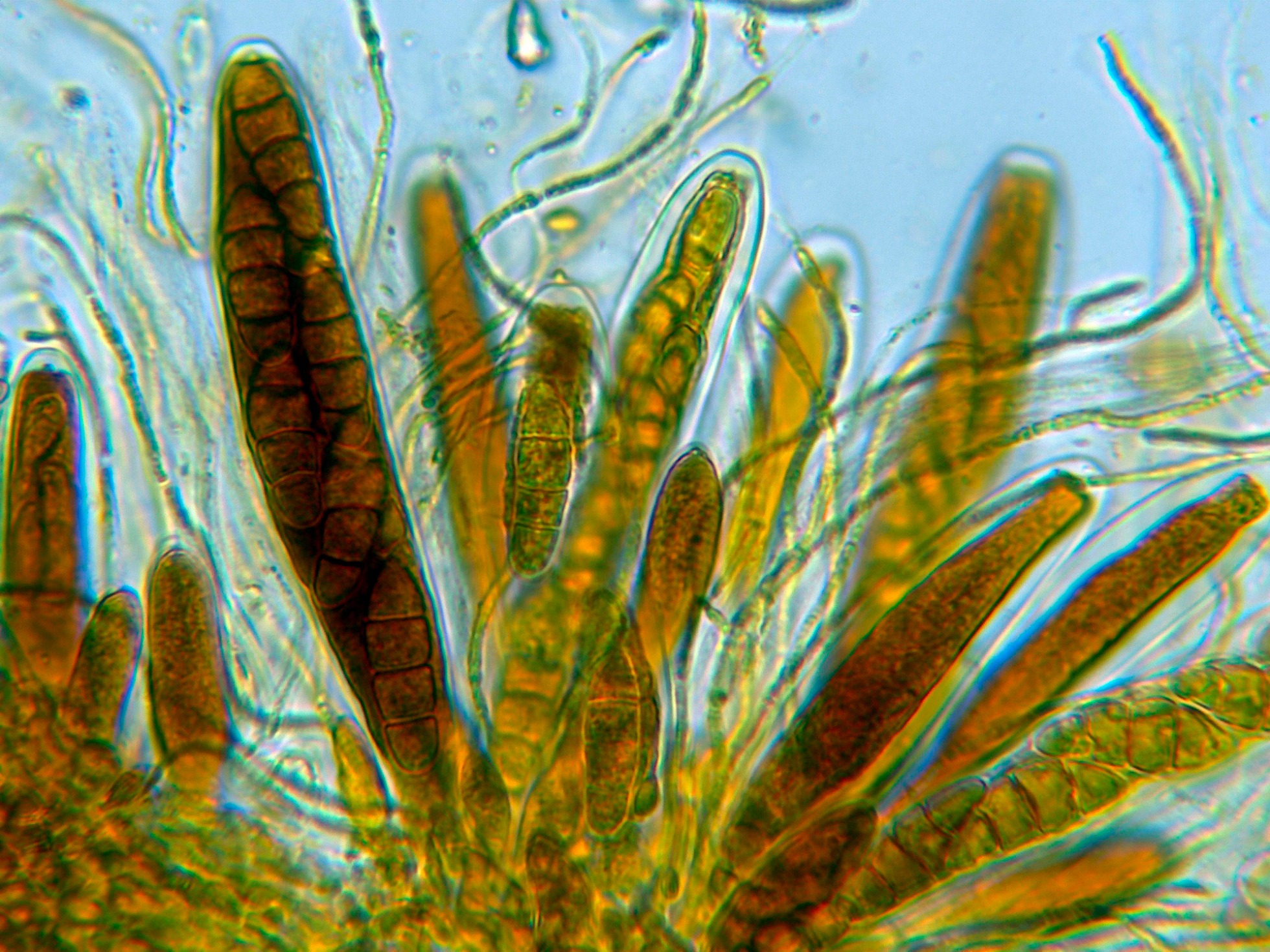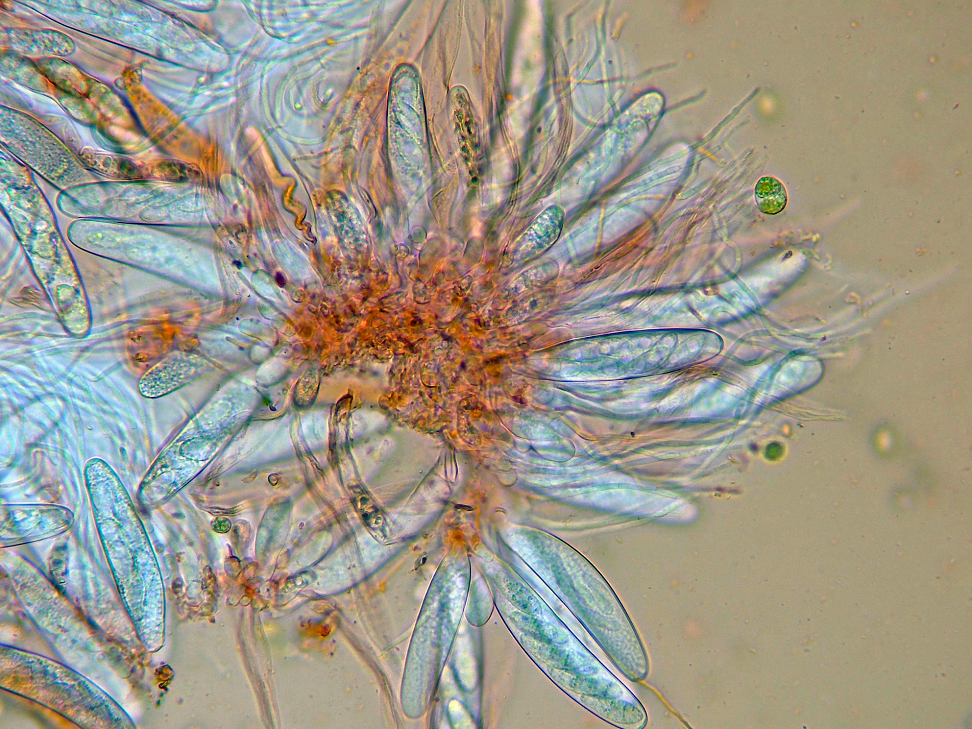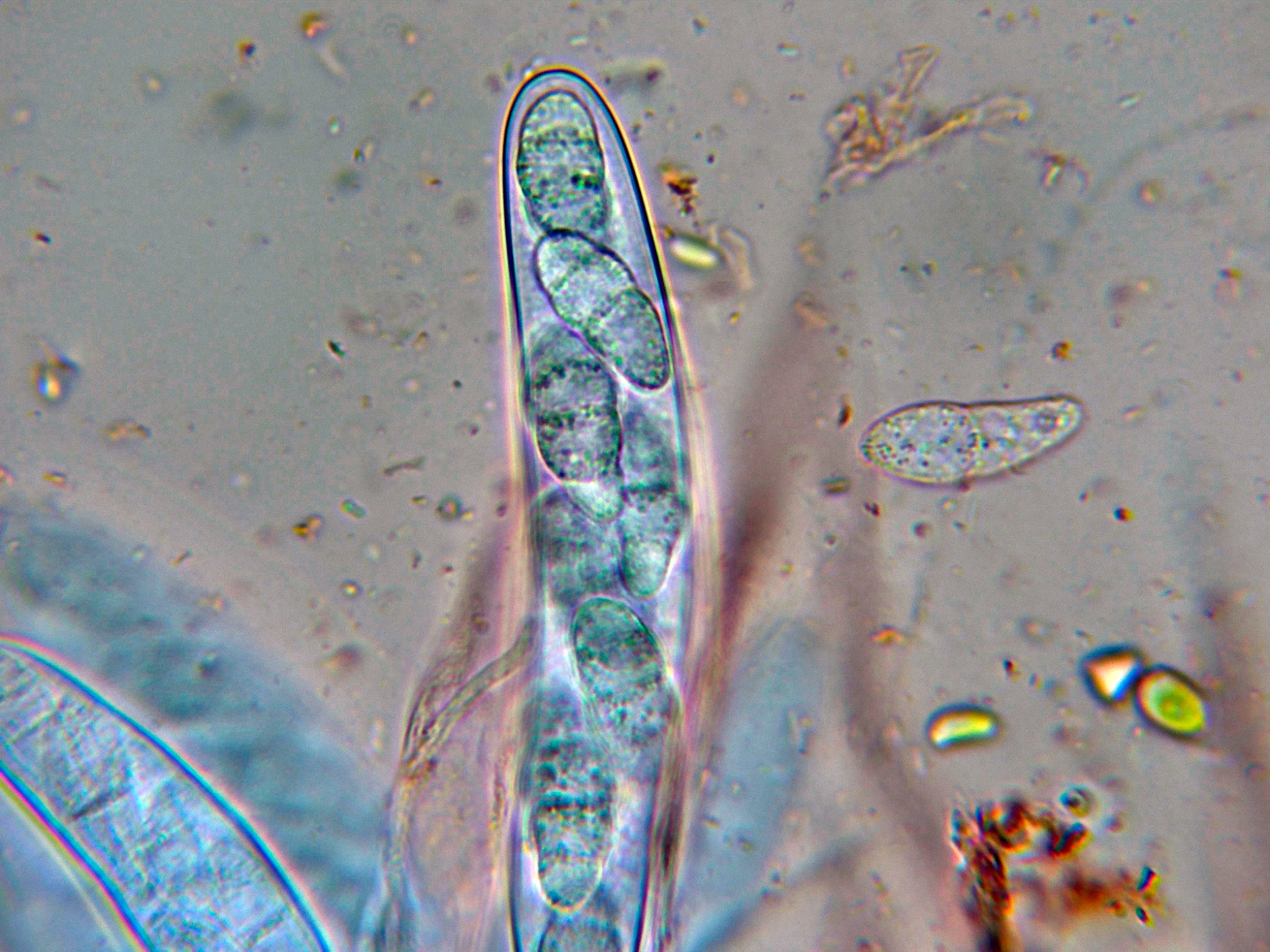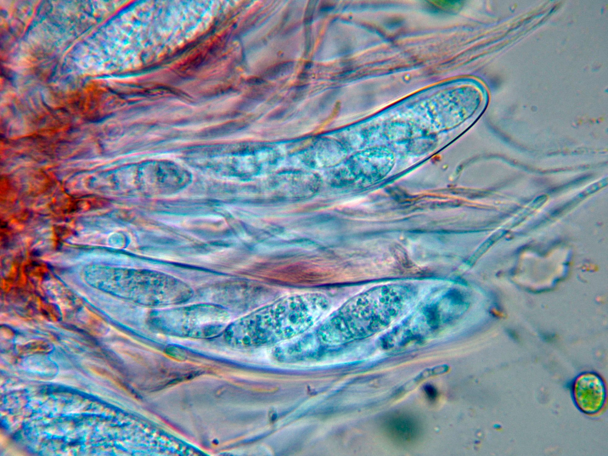 Al utilizar Lugol, la reacción dextrinoide de los ascos se hace ya más evidente: