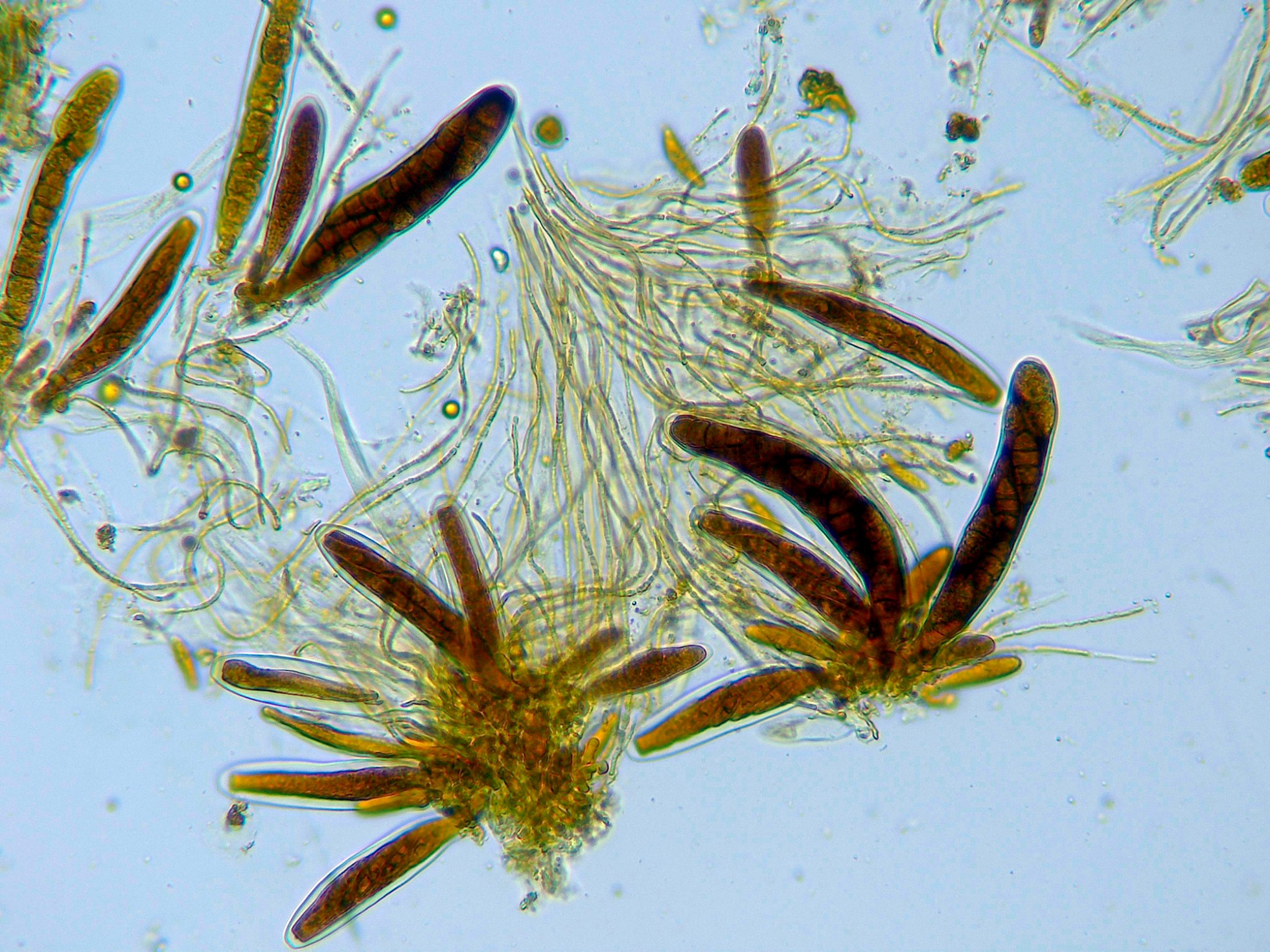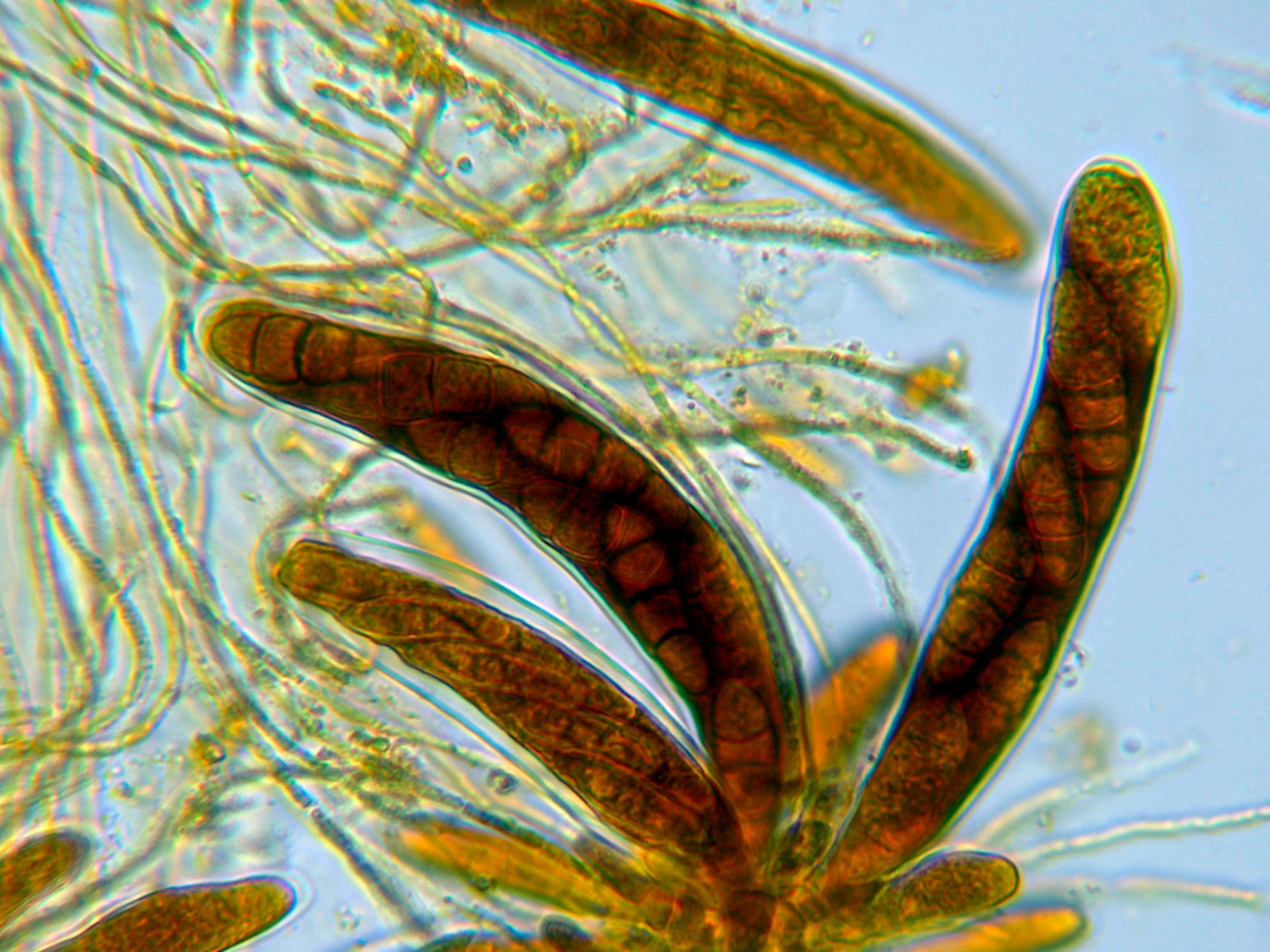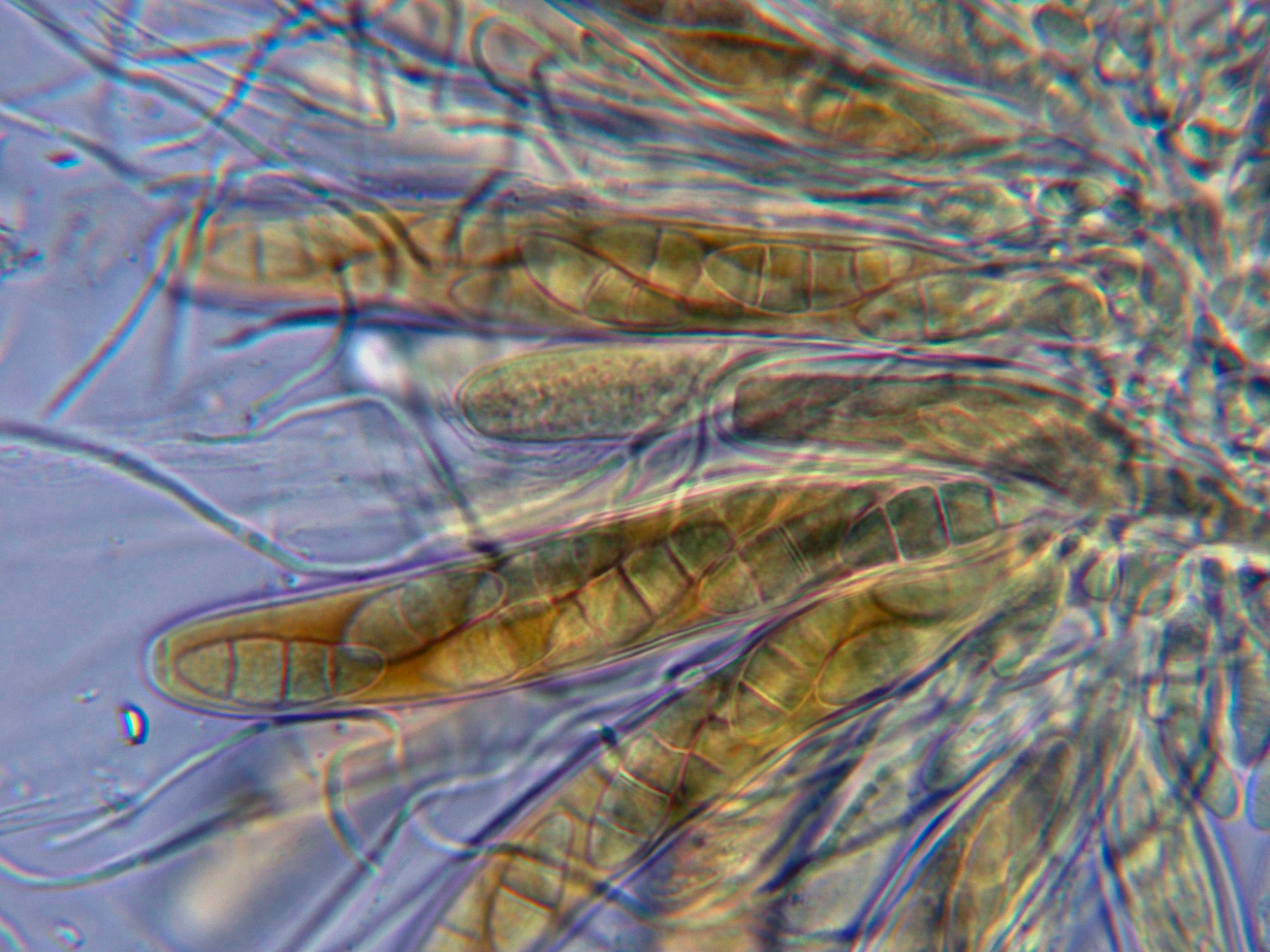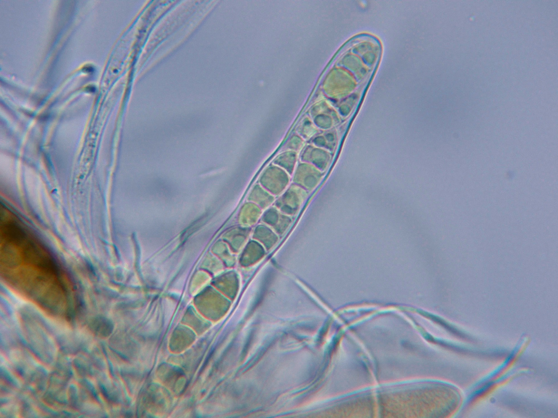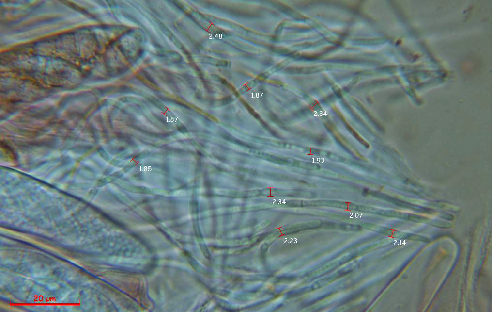 Materia interascal a modo de paráfisis, muy densa, filiforme, con septos y una anchura de entre 1,85 a 2,45 µm.