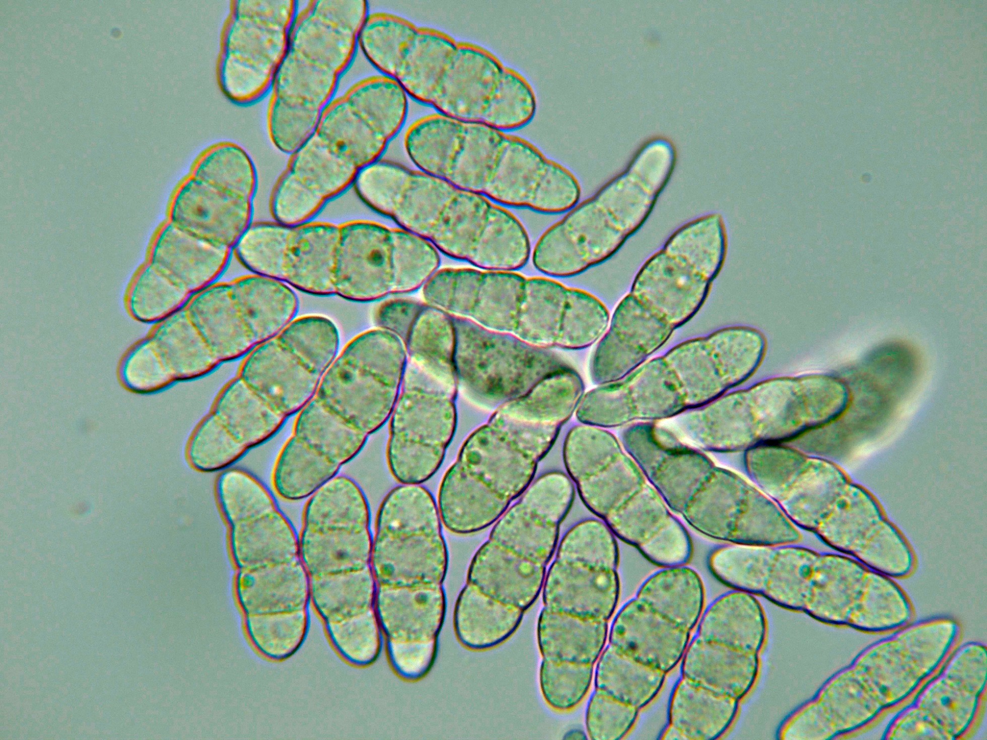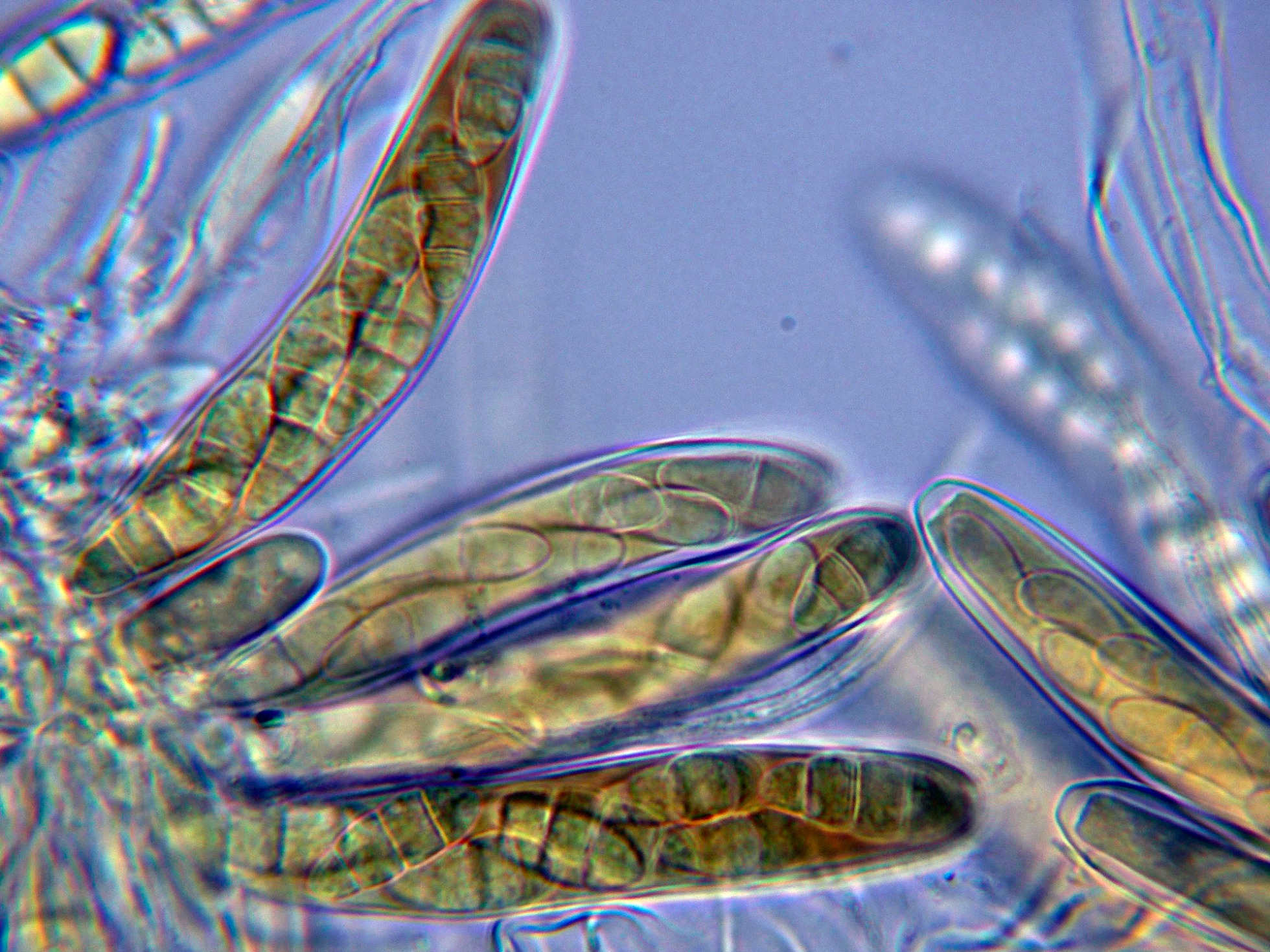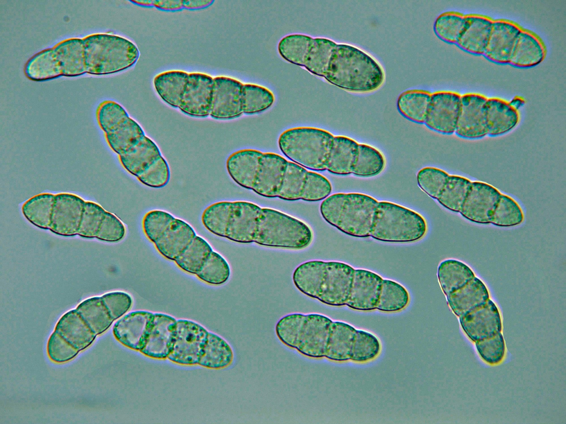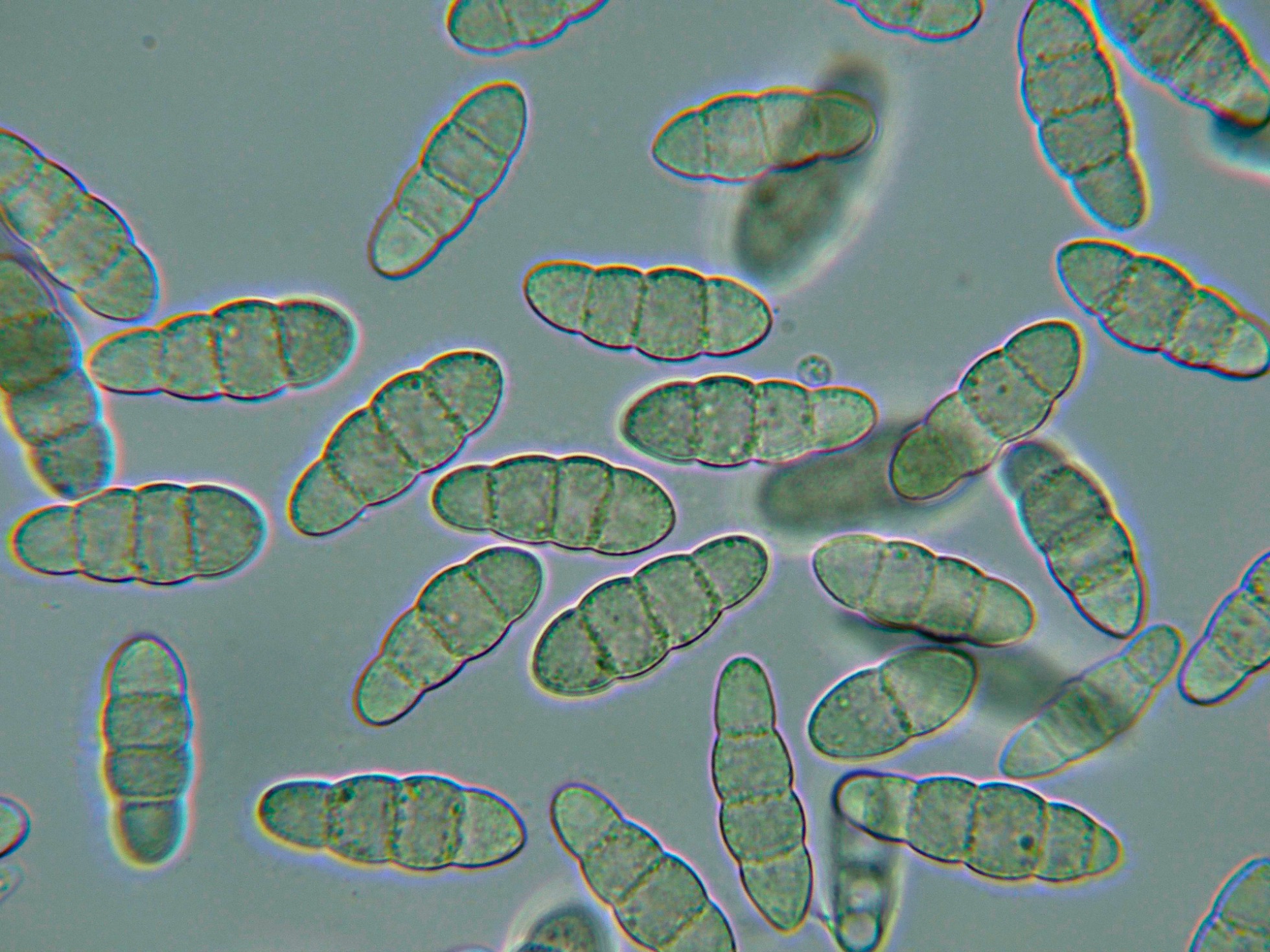Ascosporas hialinas, mayoritariamente con tres septos, con un marcado constreñimiento en estos septos y unas medidas en agua de las esporas obtenidas por esporulación natural de: