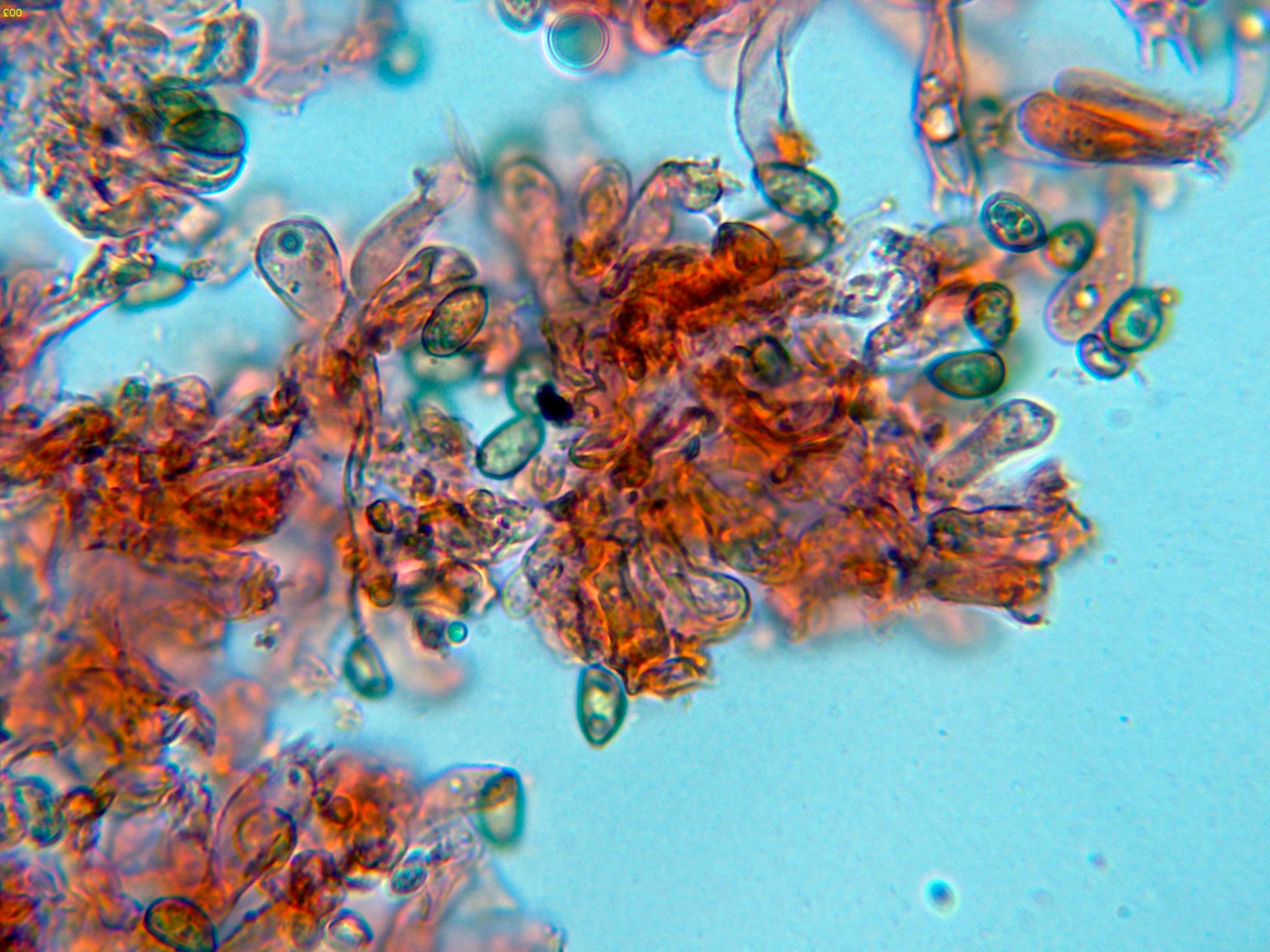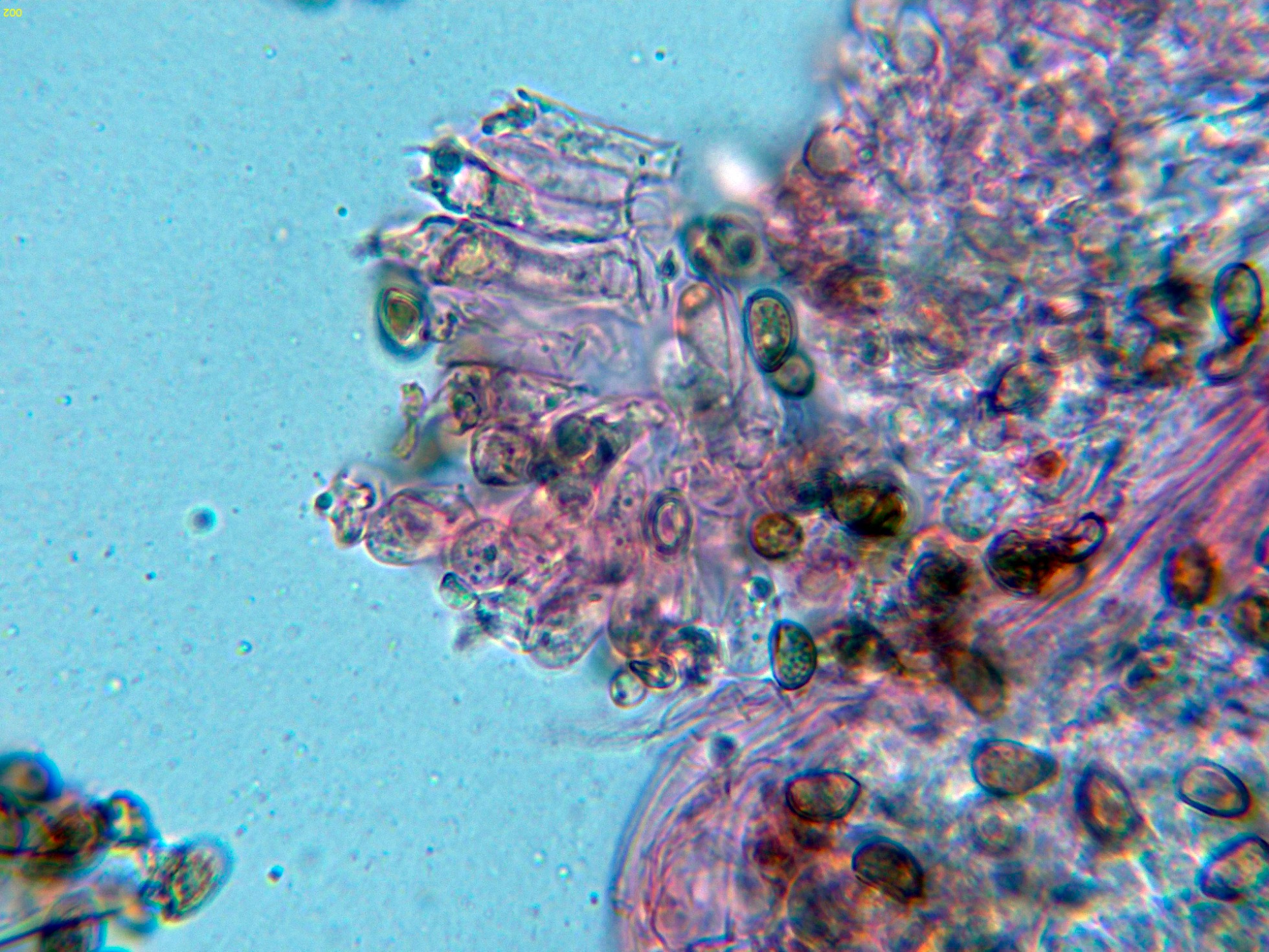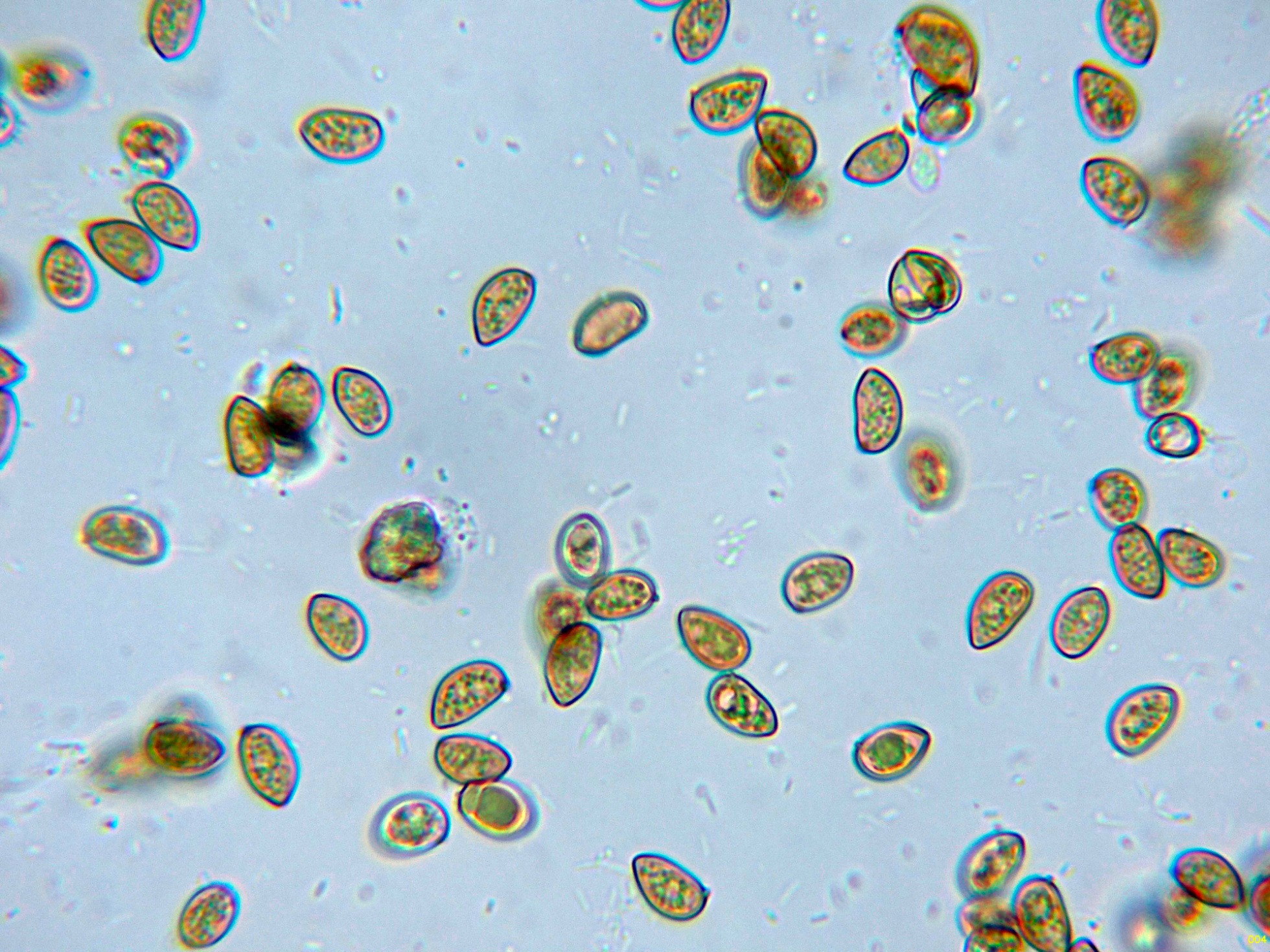 Las esporas en KOH al 10%, con solo un muy débil oscurecimiento: