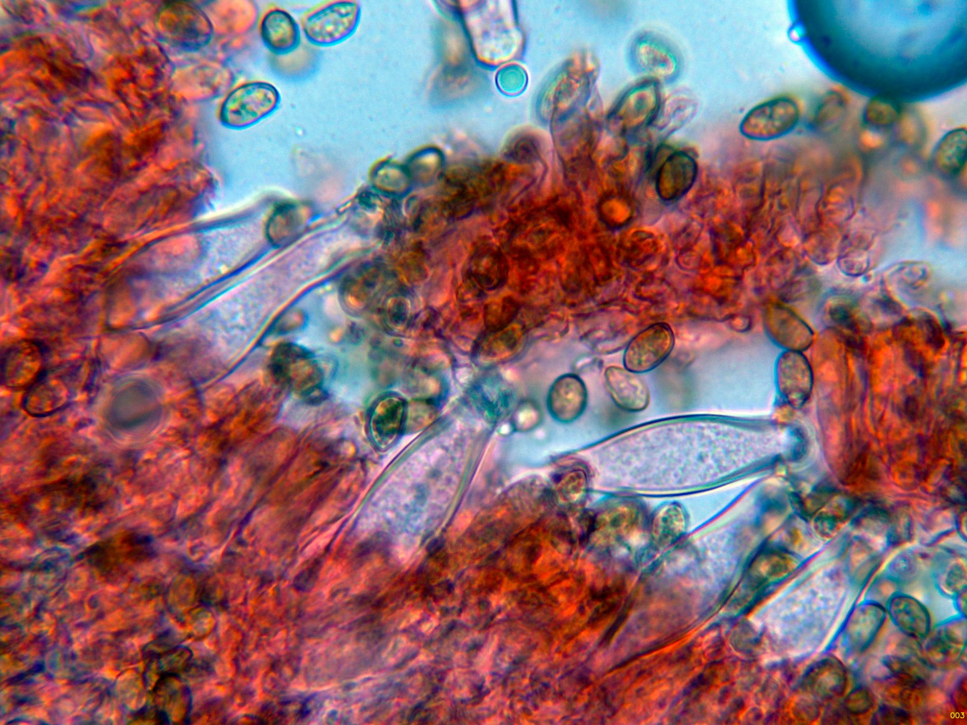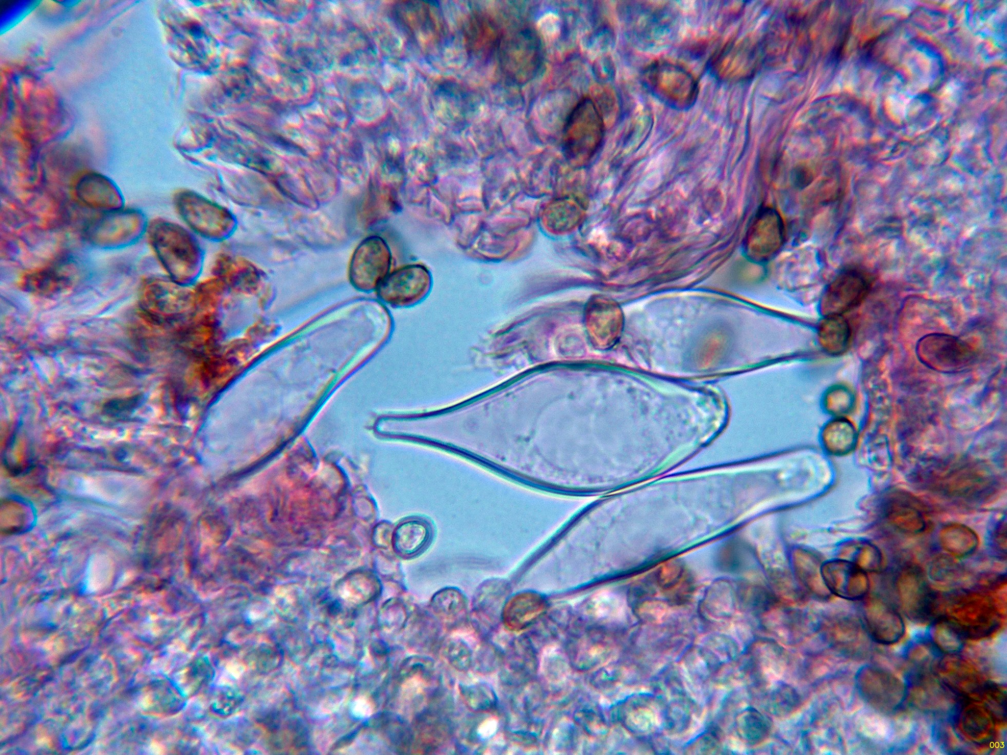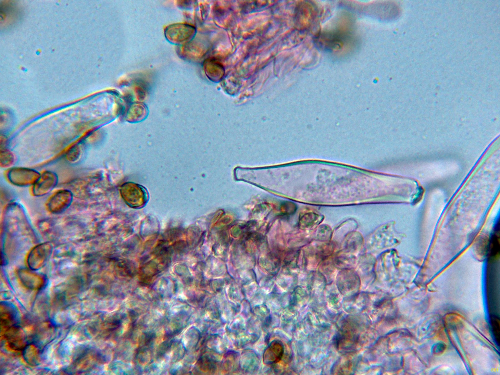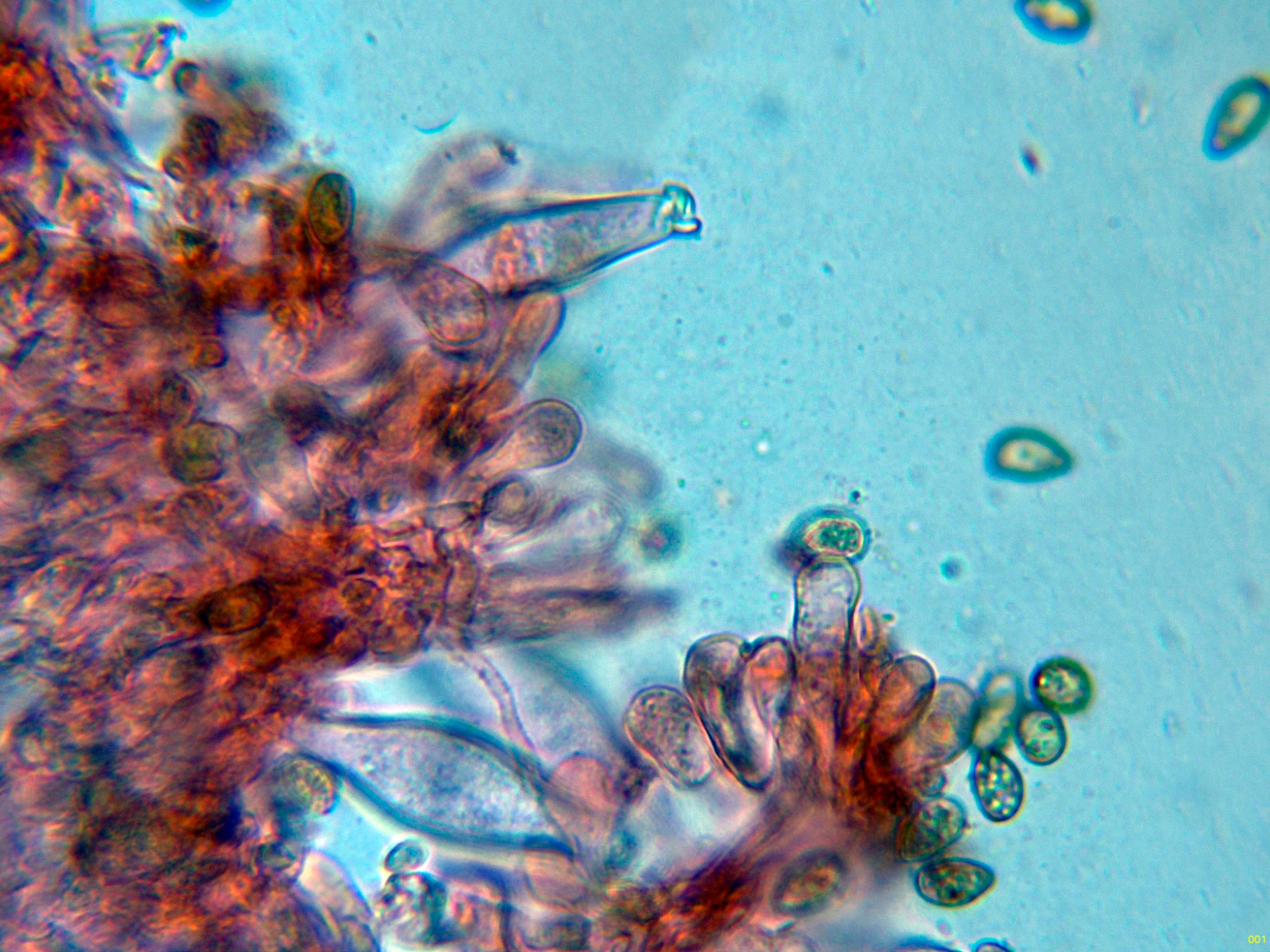 Las esporas en KOH al 10%, con solo un muy débil oscurecimiento: