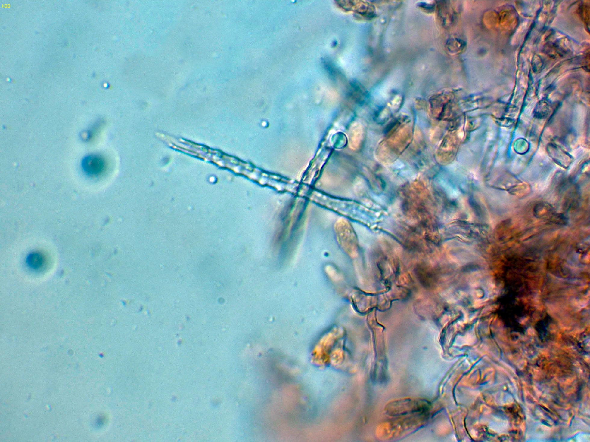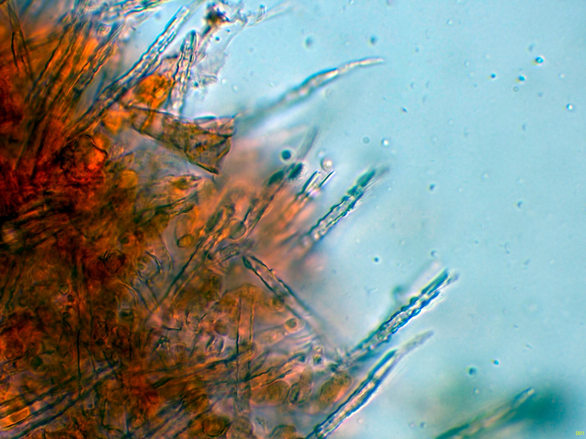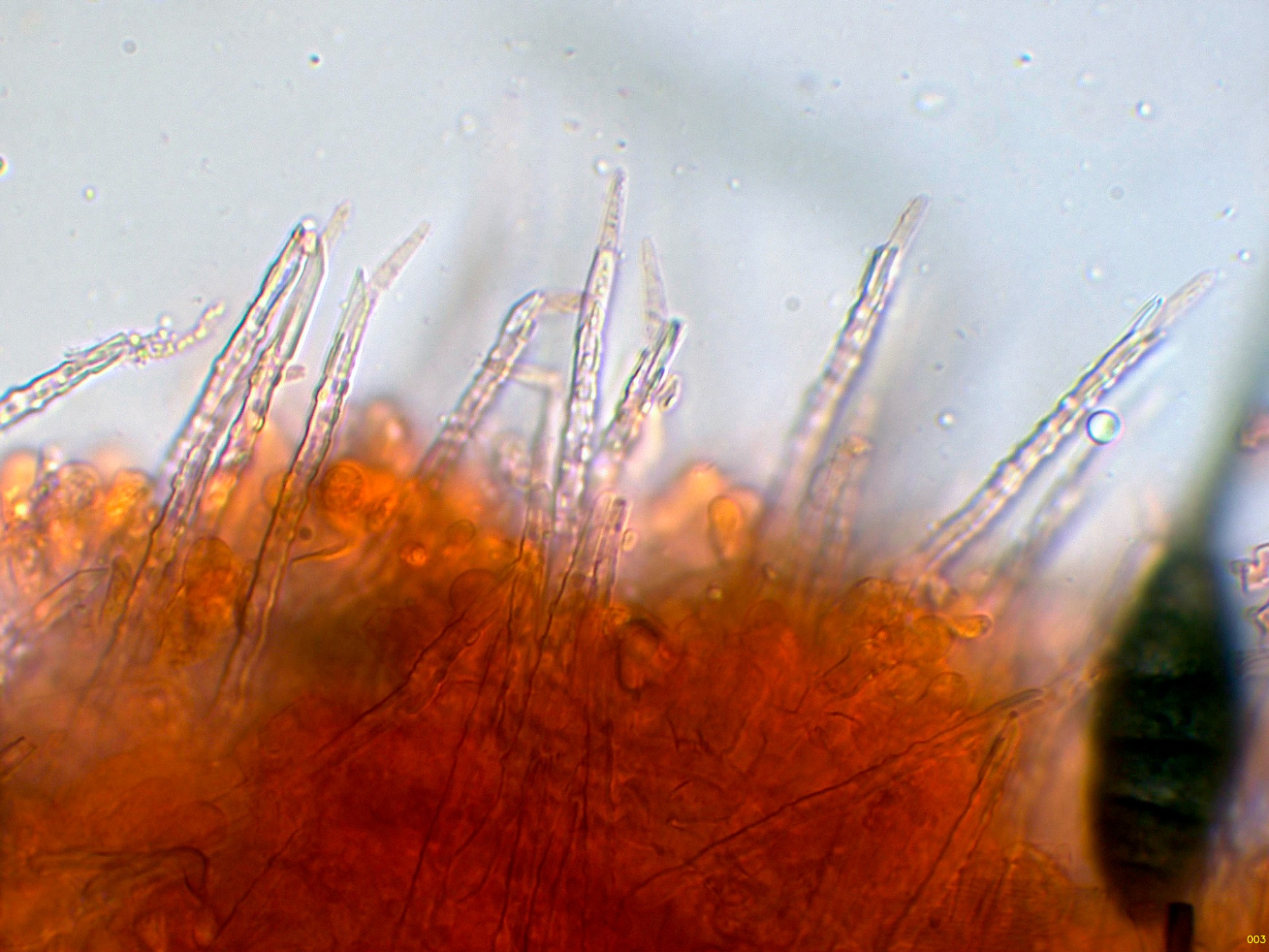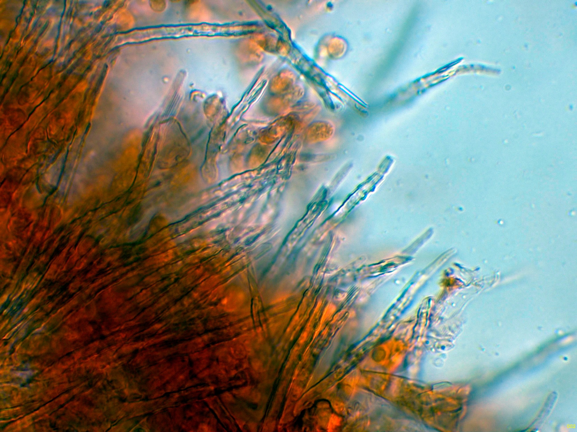 Estos cistidios muy abundantes por toda la superficie del himenio: