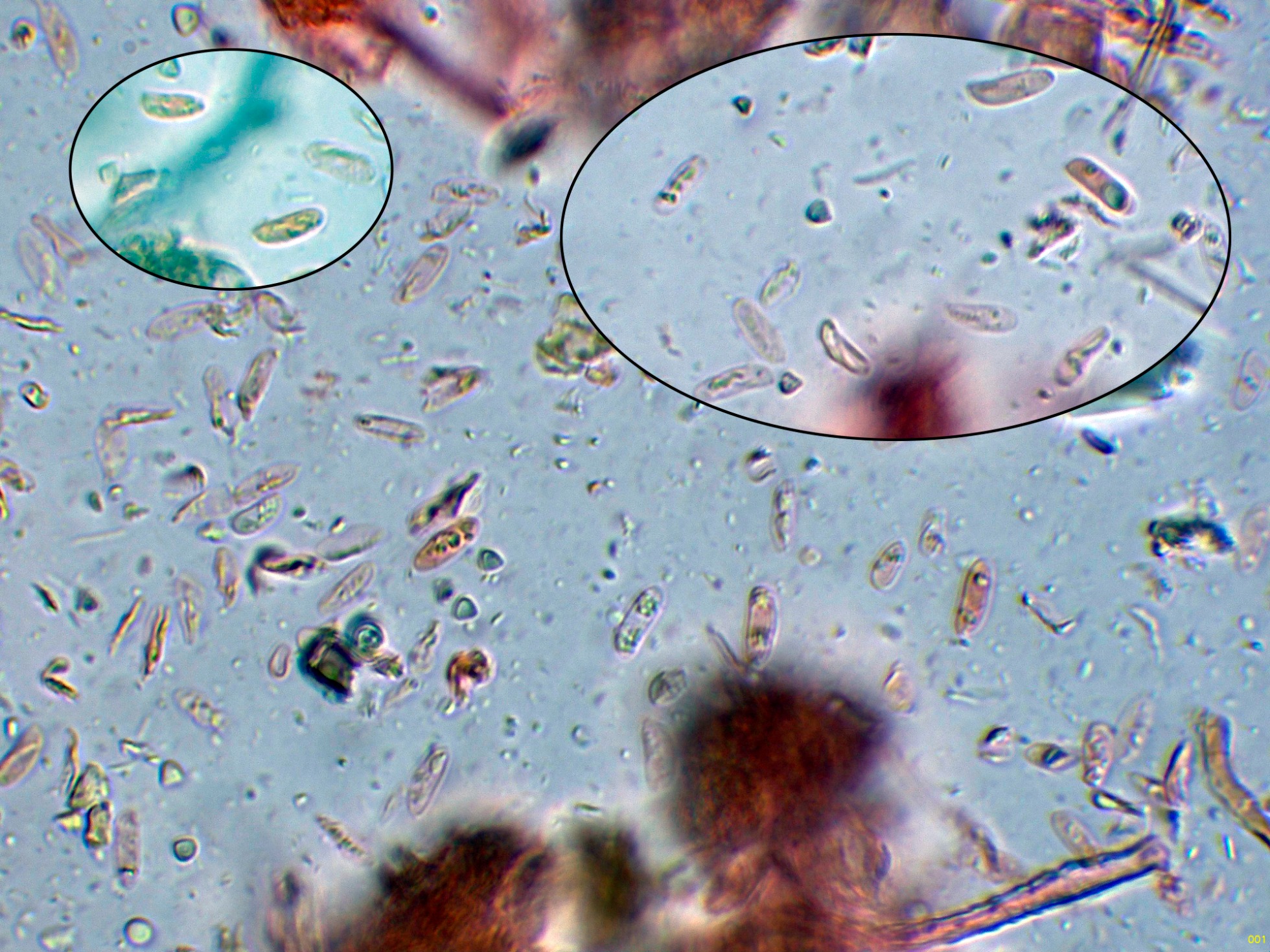 Estas esporas mayoritariamente por encima de las 3 micras de anchura.