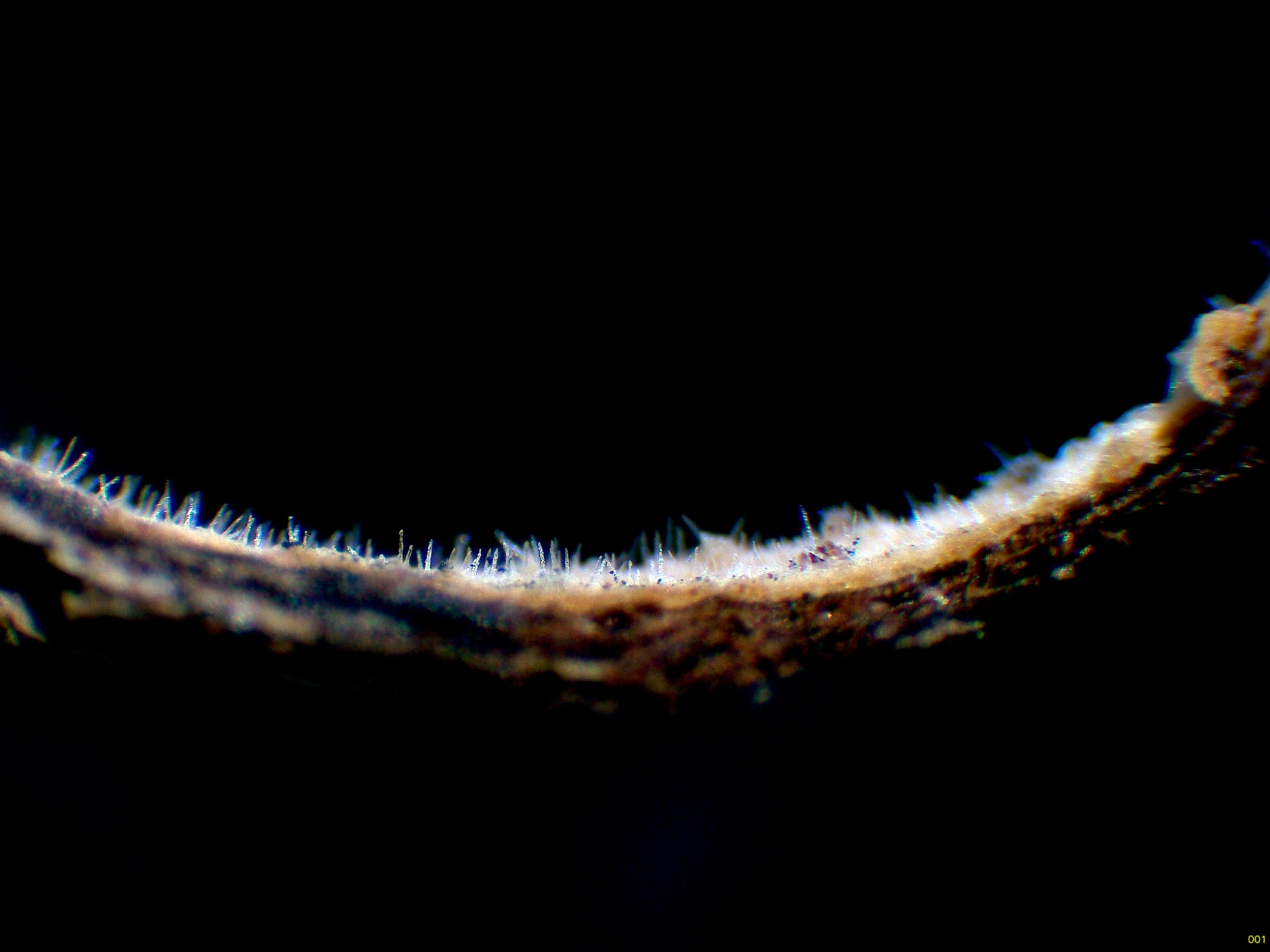 Observaciones: Estudio contrastado con la información del documento del 27 de abril de 2016 "Descriptions and reports of resupinate Aphyllophorales and Heterobasidiomycetes", del gran micólogo Elia Martini, en el que indica unas medidas para los cistidios del Tubuliciun vermiferum de 50–110 × 8–15 µm., ligeramente más cortos que los de mi estudio, y unas medidas esporales de 16–25 × 3.5–5 µm., muy concordantes con las medidas del presente estudio, lo único con lo que me surge alguna pequeña duda es que en el documento citan a estas esporas como sigmoides, y en mis imágenes salvo un par de ellas en las que se intuye esta morfología, la mayoría me parecieron fusiformes con un extremo curvo y el extremo opuesto apuntado, muy parecidas a las que muestra el maestro Enrique Rubio en su trabajo, dejo el enlace: