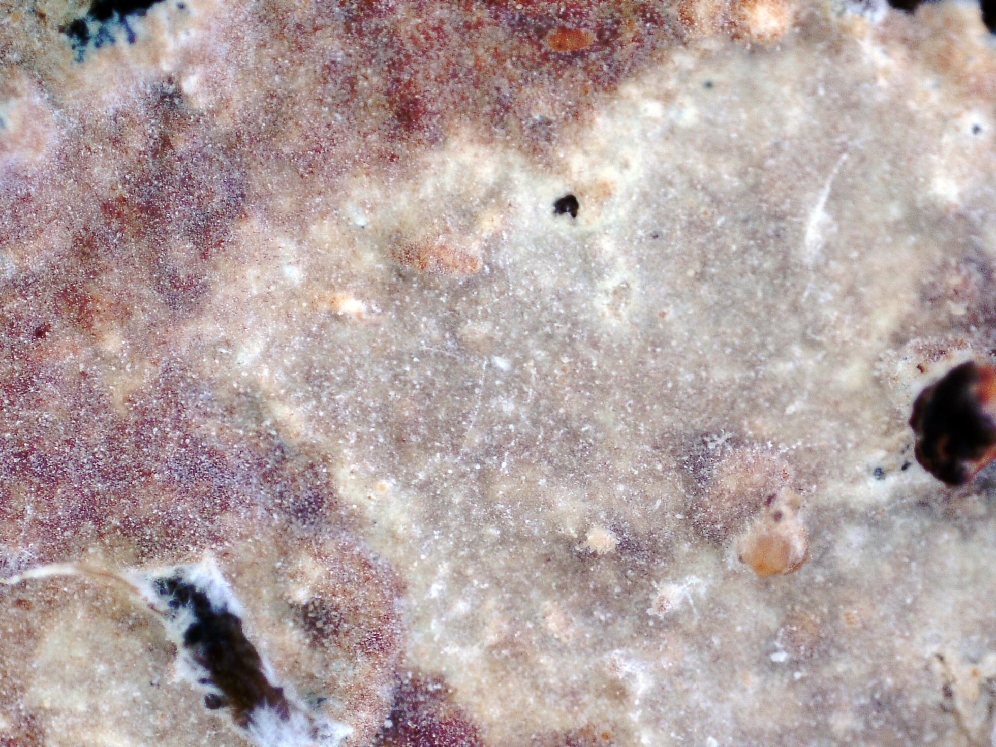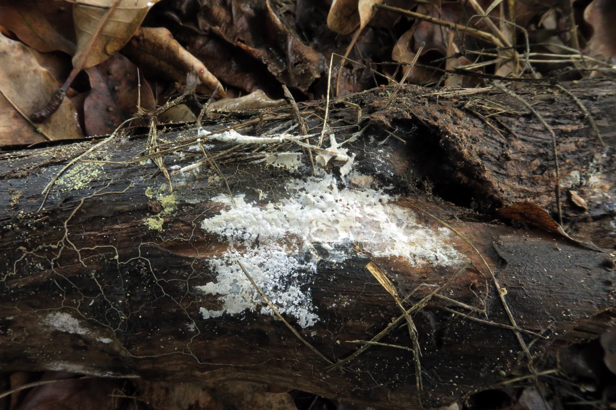 Un Corticial blanquecino bastante común por la zona, la Athelia epiphylla.