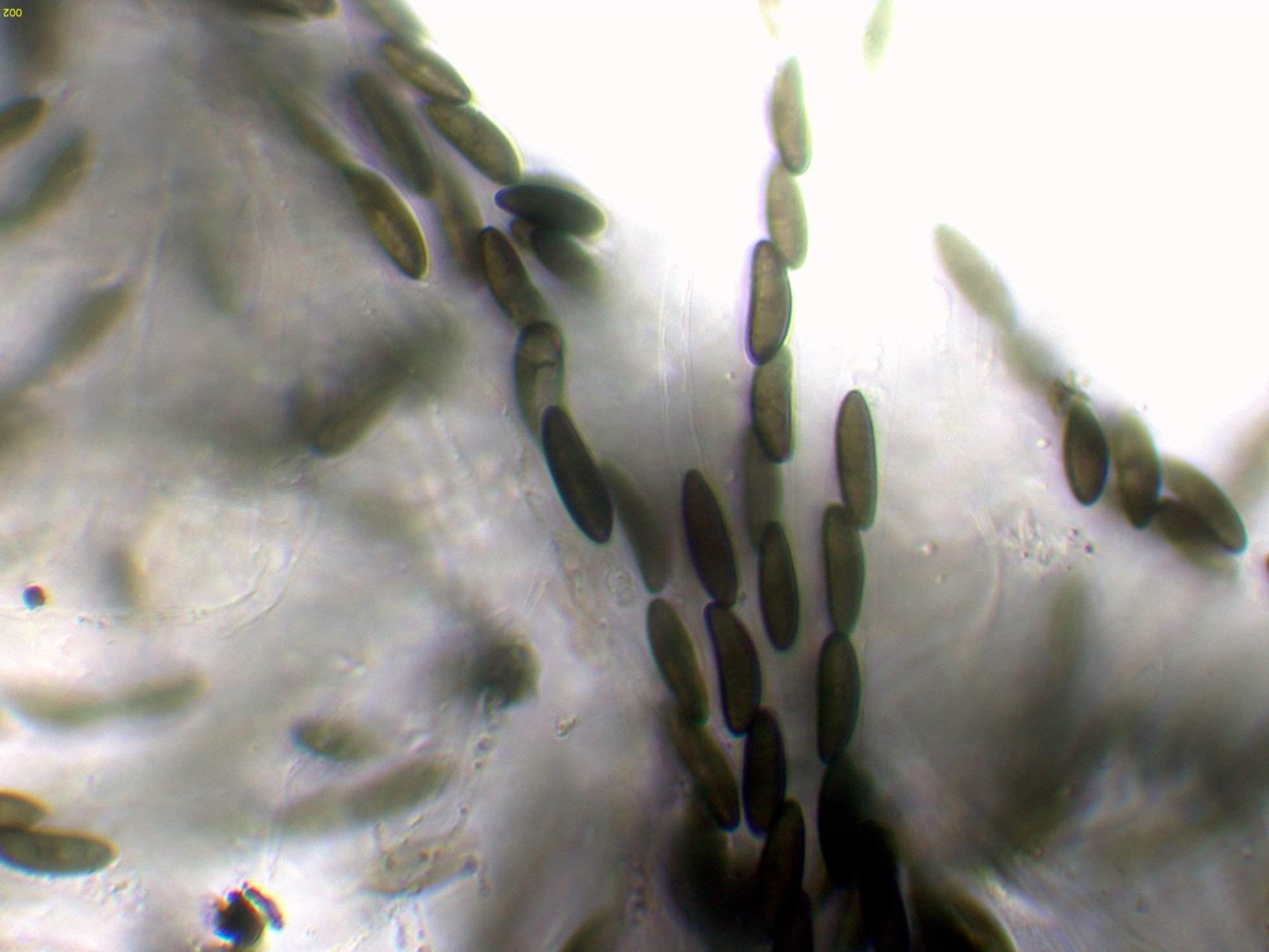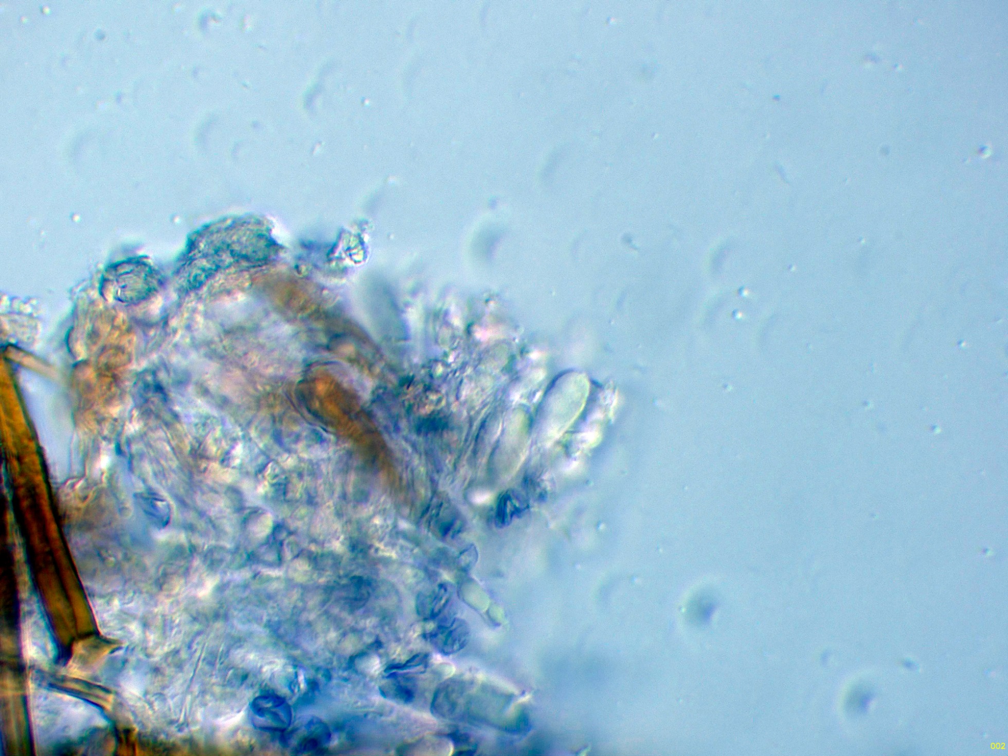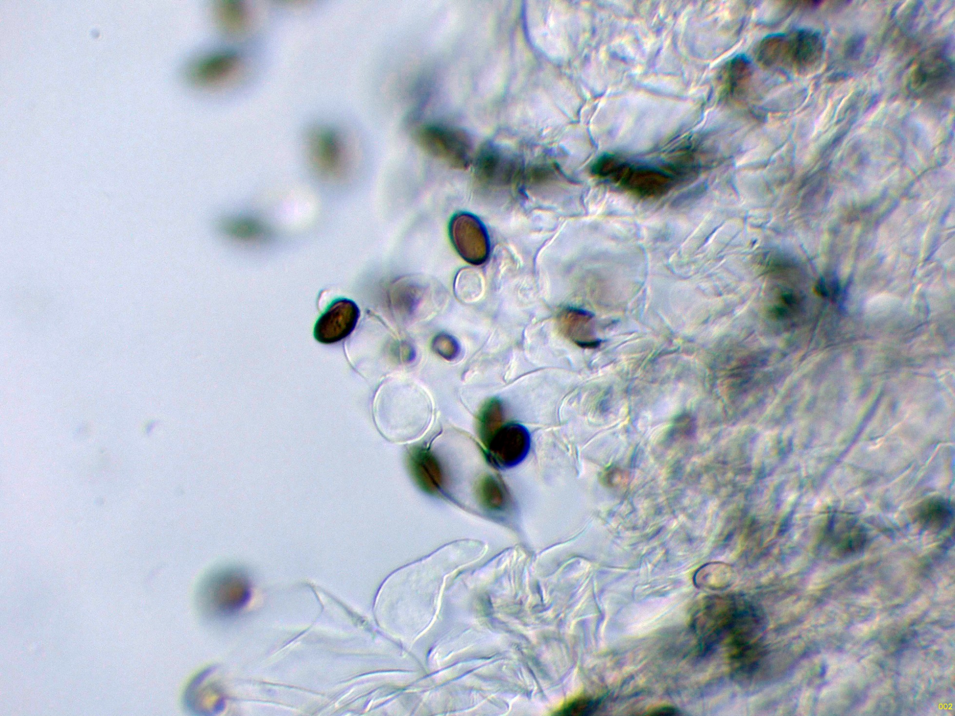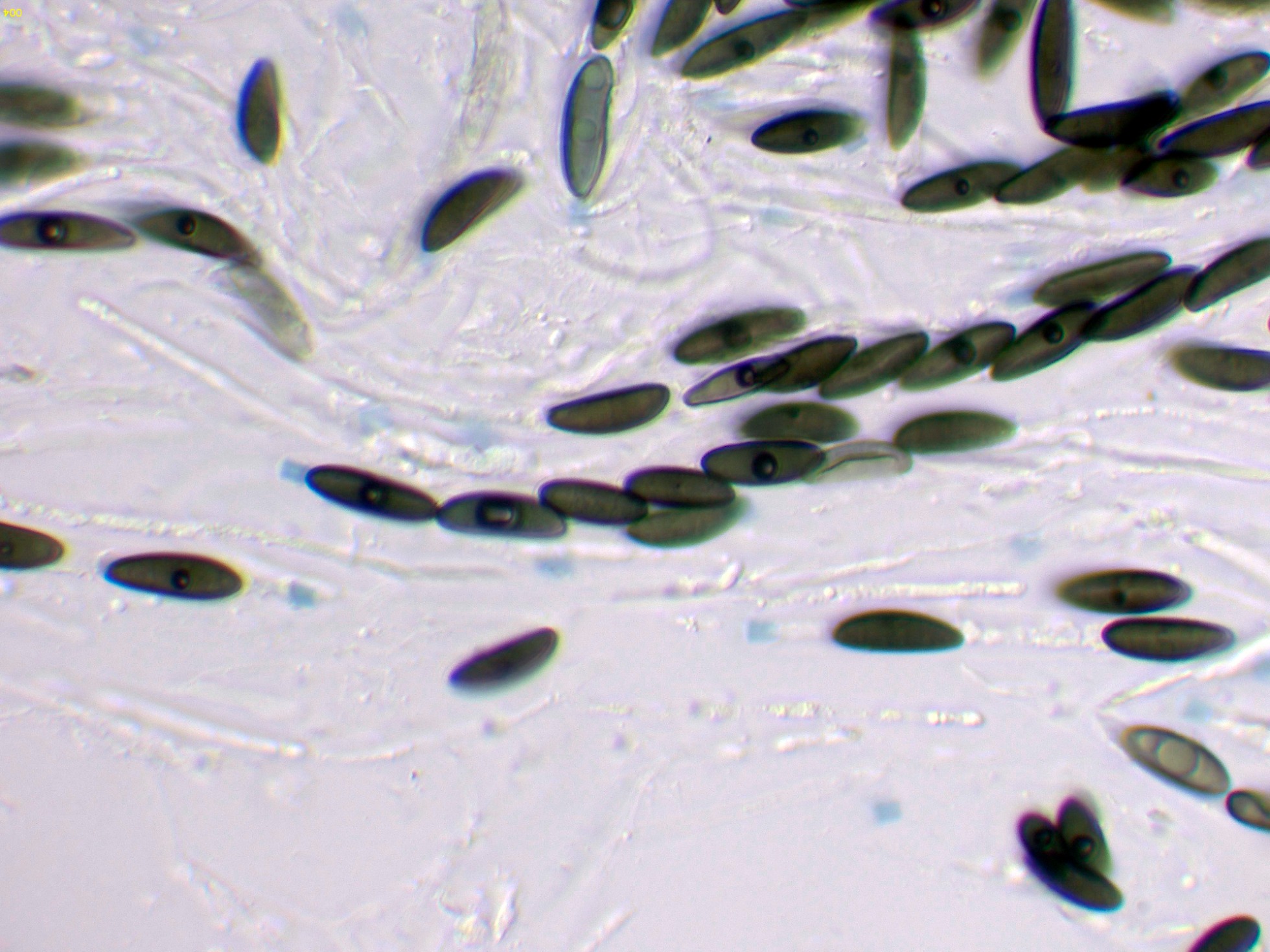 Los ascos en Melzer, con un aparato apical con unas medidas de 3.3 - 5.09 (5.1) × (2.1) 2.4 - 3.08 (3.1) µm.