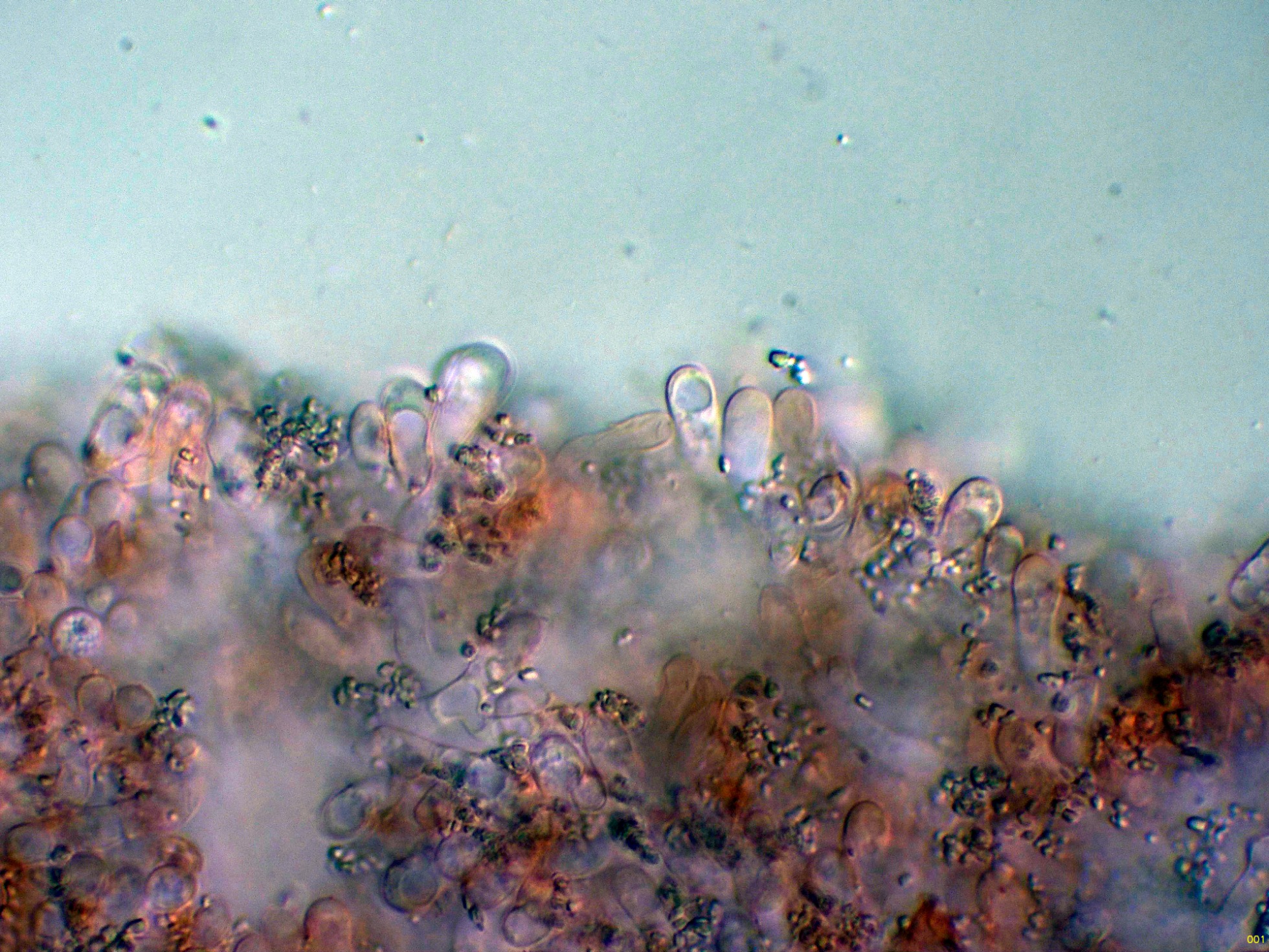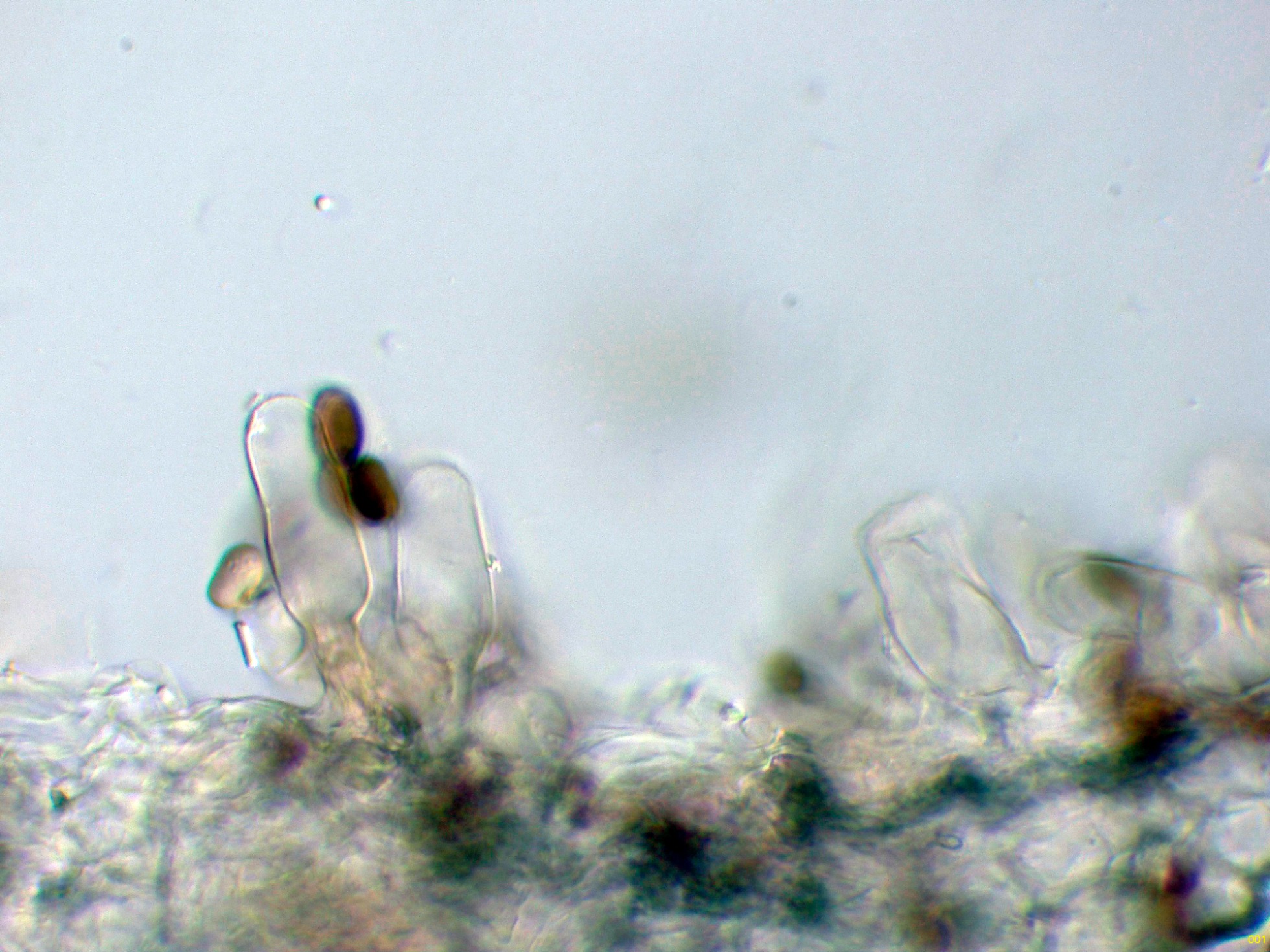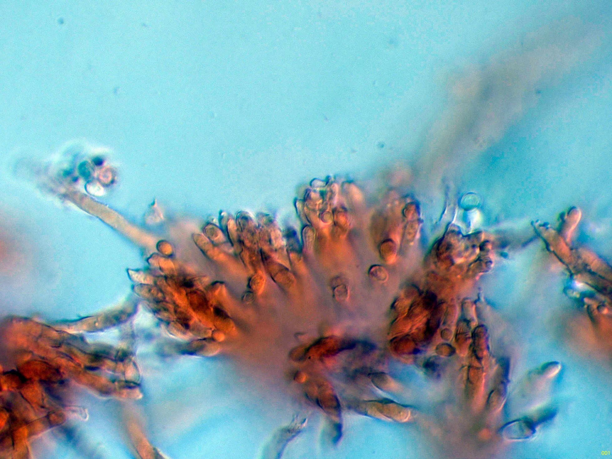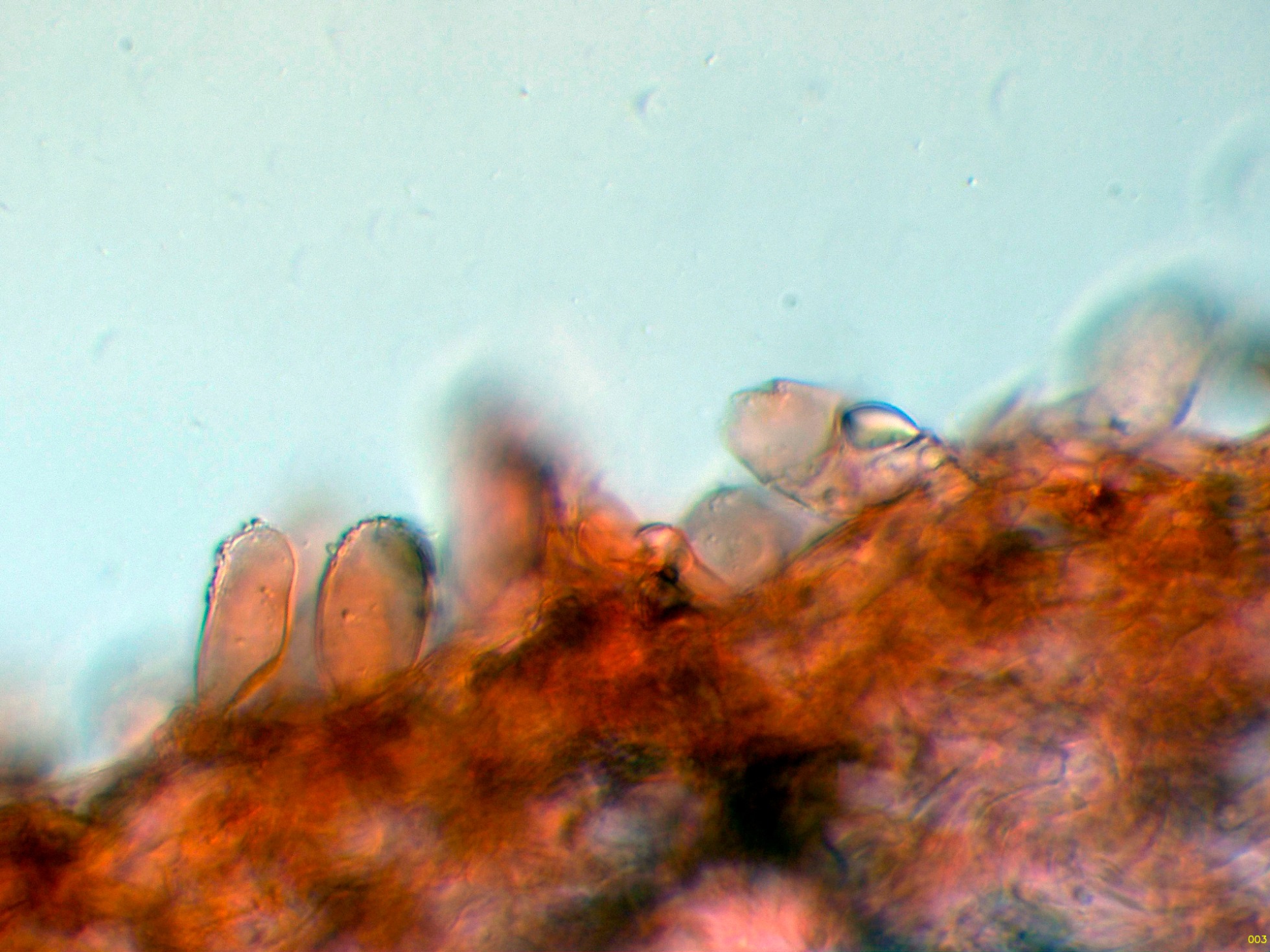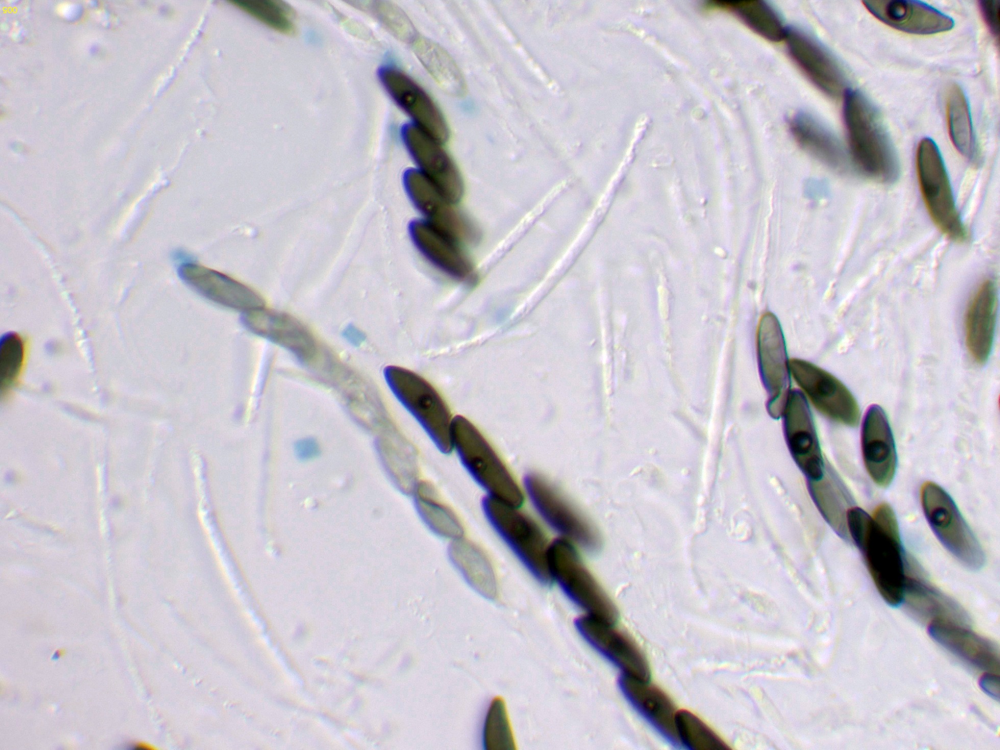 Los ascos en Melzer, con un aparato apical con unas medidas de 3.3 - 5.09 (5.1) × (2.1) 2.4 - 3.08 (3.1) µm.