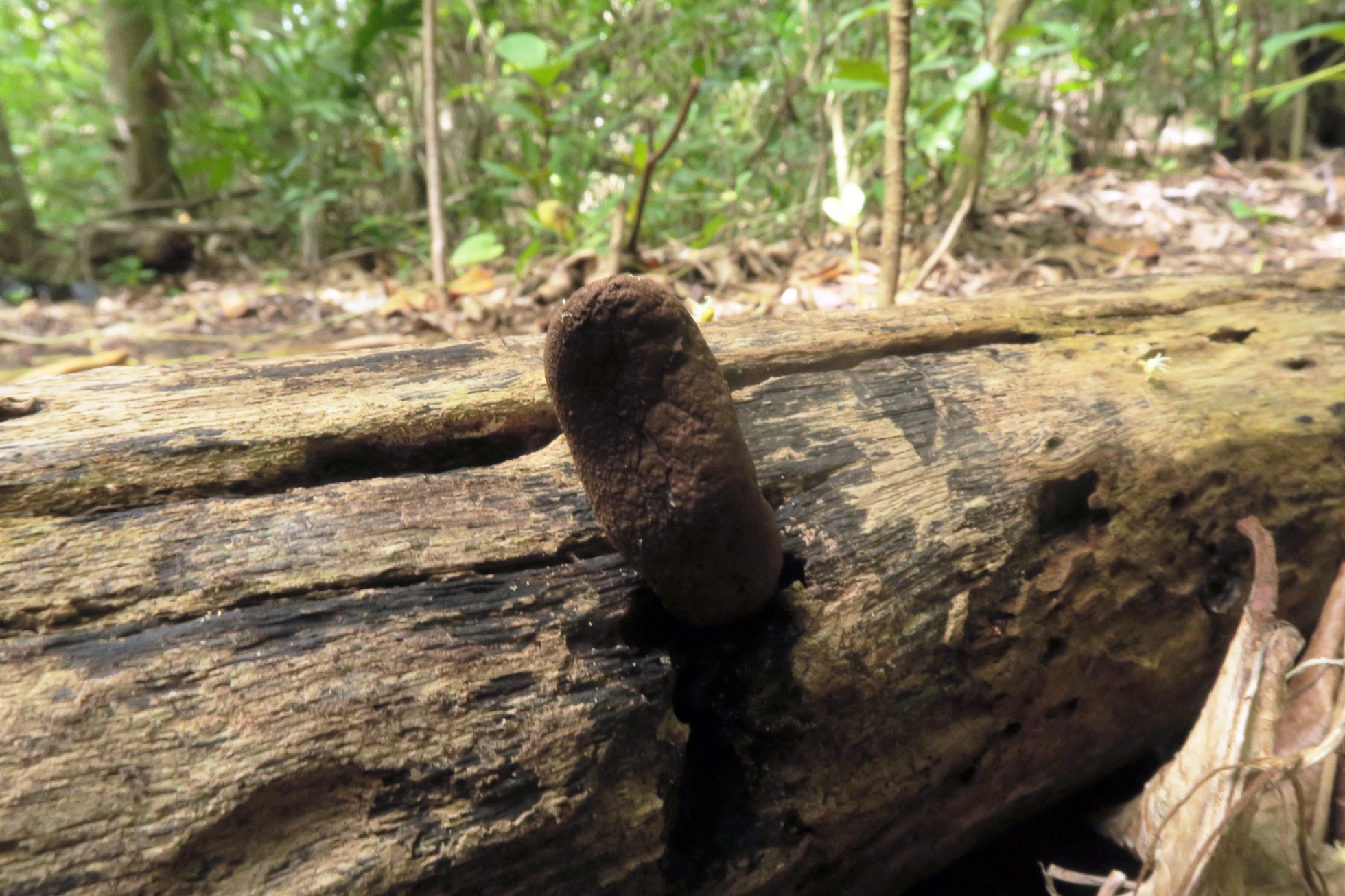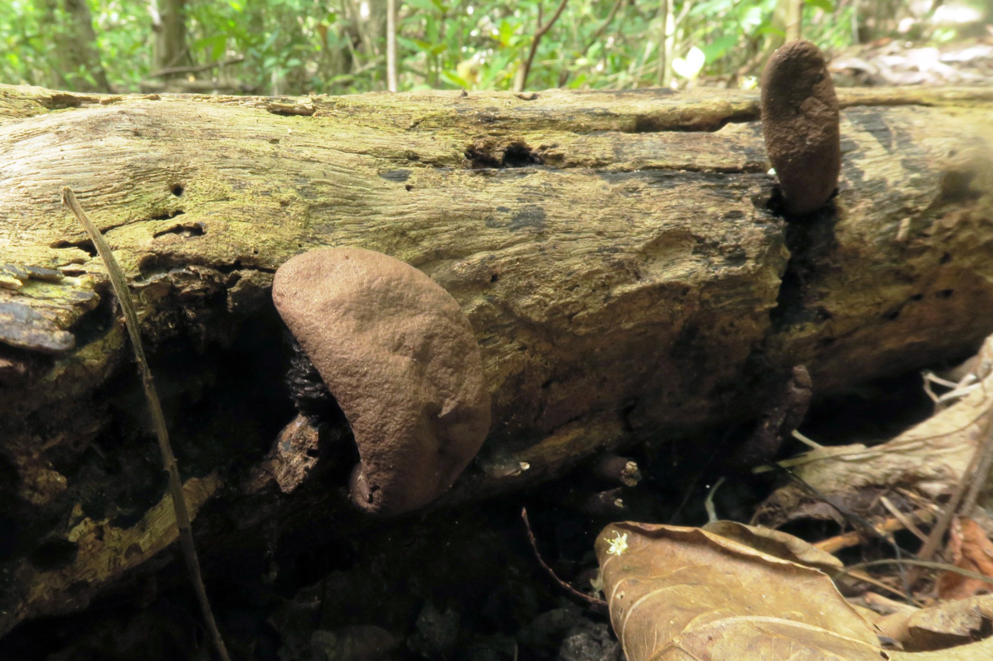 En el mismo tronco que la anterior tenemos un anamorfo, muy probablemente el Xylocoremium flabelliforme, curiosamente al Xylocoremium flabelliforme se le considera el anamorfo de la Xylaria cubensis, no de la Xylaria longipes, aunque años atrás, allá por 2017, me encontré a ambas Xylarias sobre un mismo tronco, la Xylaria cubensis se puede separar fácilmente por sus pequeñas esporas, en mi estudio de la Xylaria cubensis con unas medidas esporales de 7,6;8,9 x 4,4;4,9 µm.