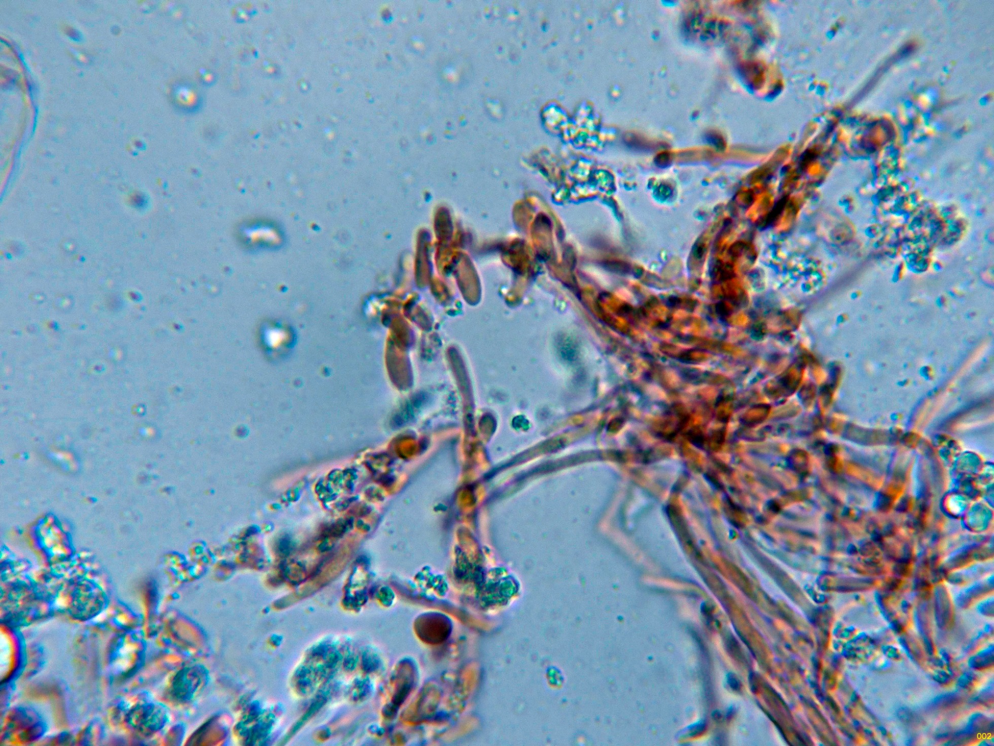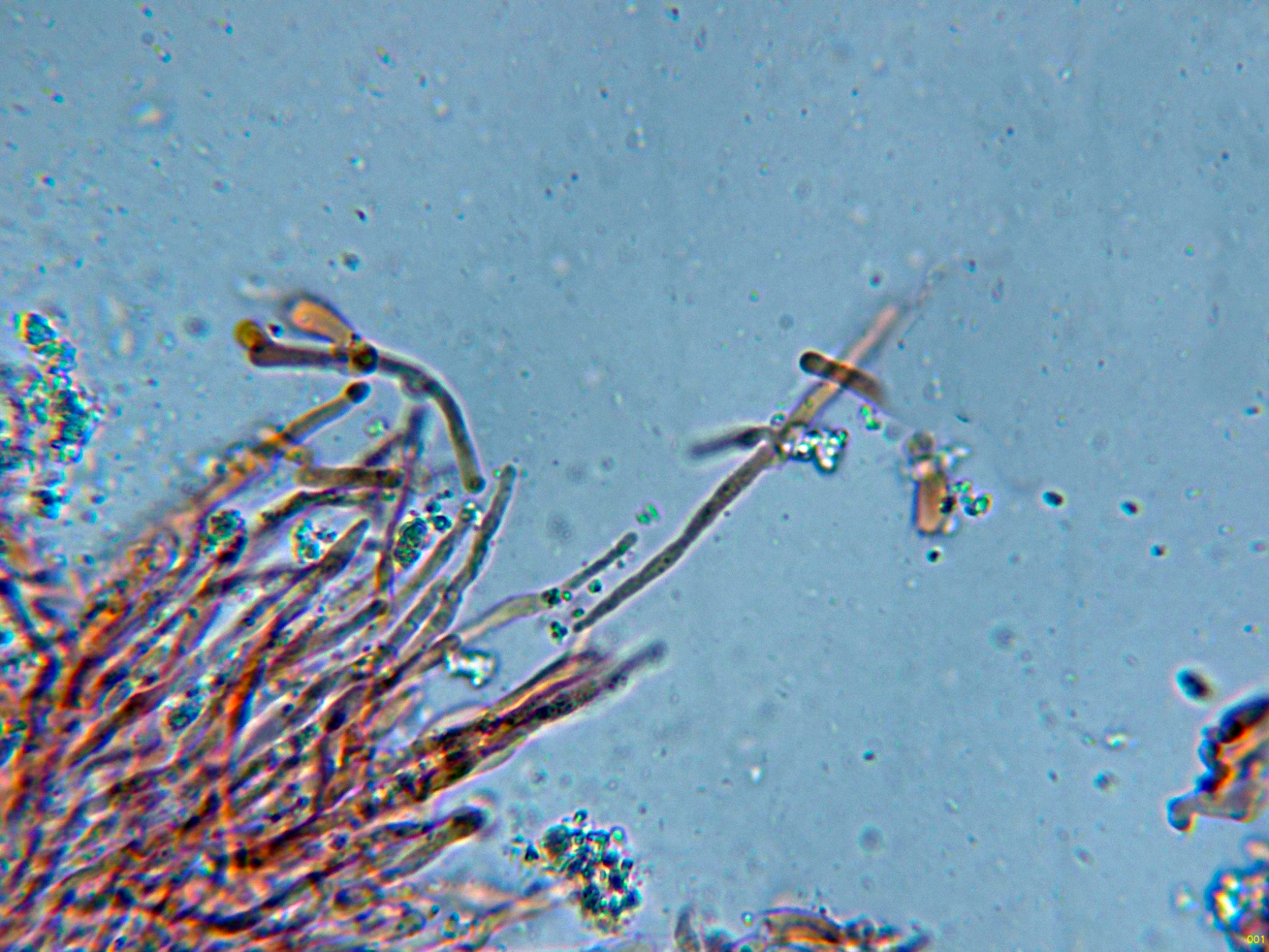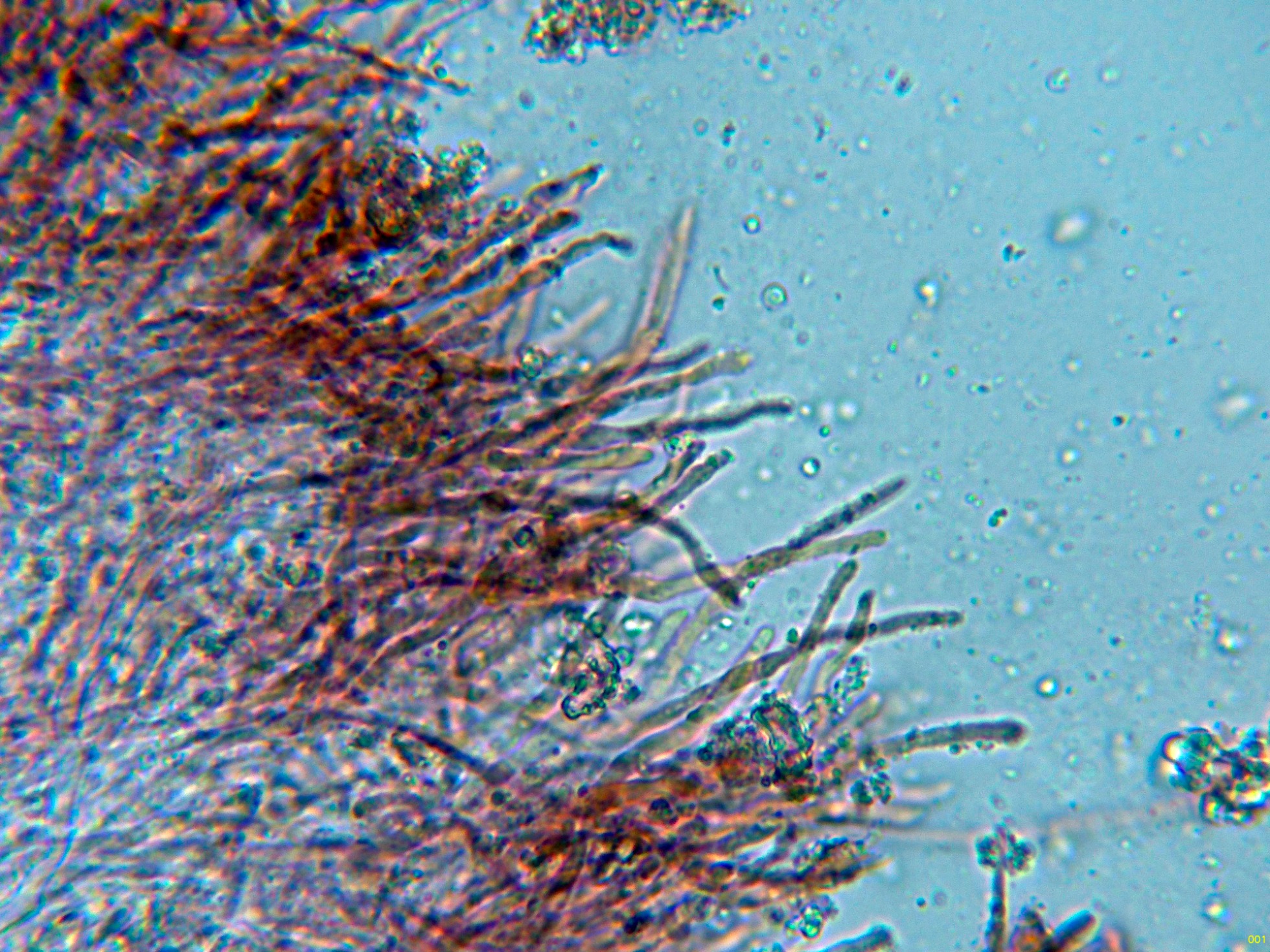Abundantes hifas terminales cilíndricas, alargadas y con terminaciones romas.