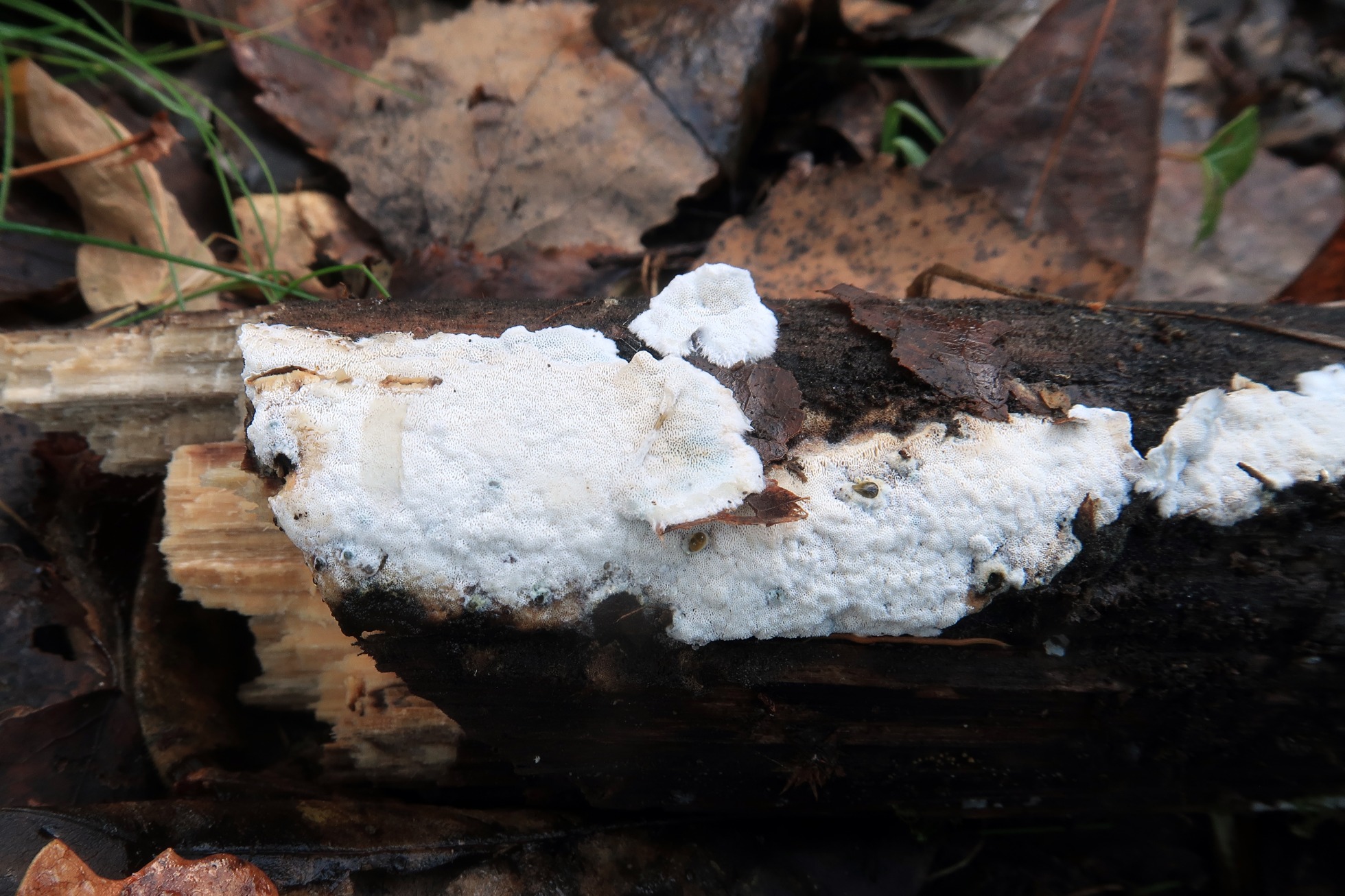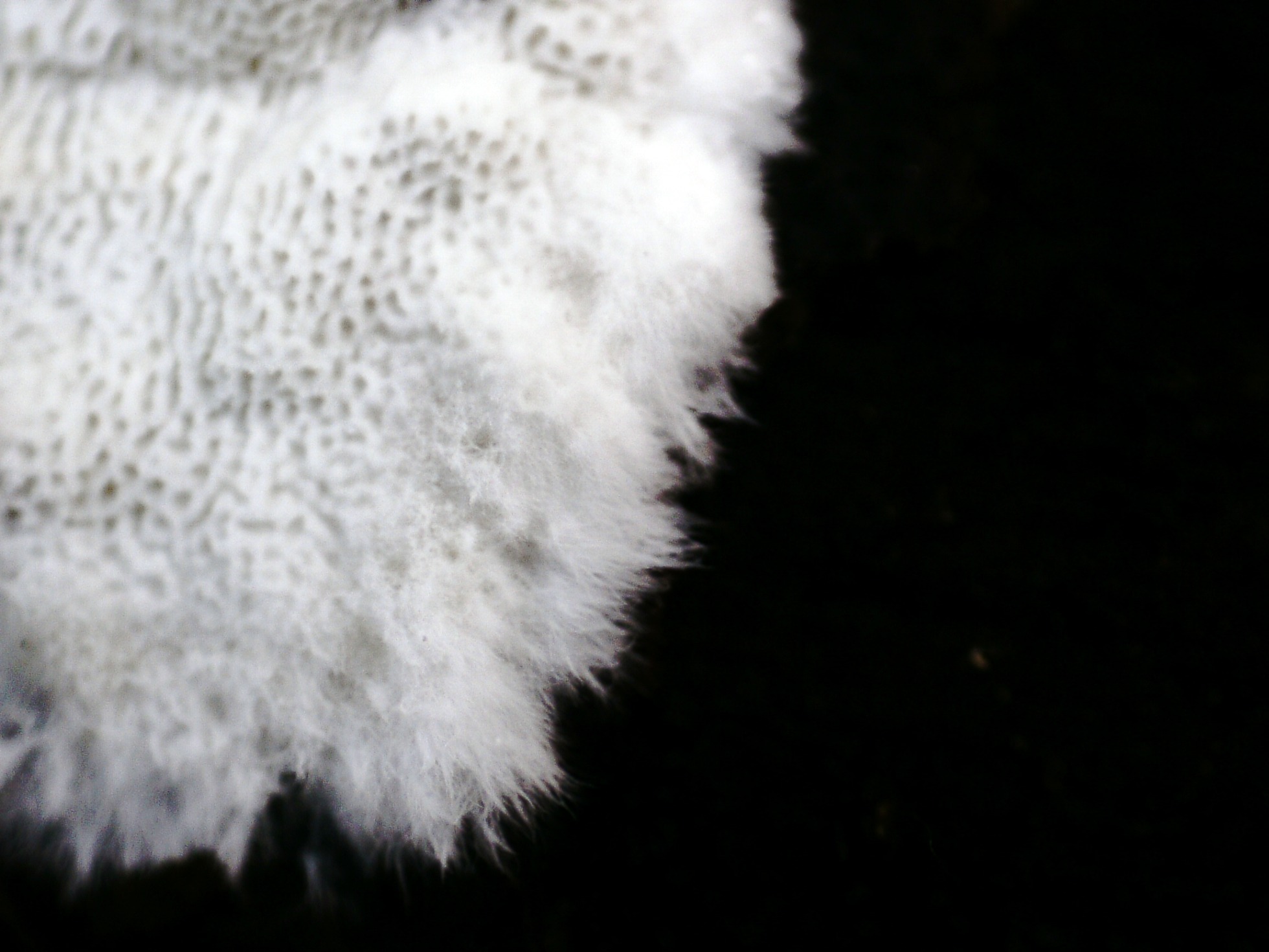 Un Skeletocutis fotografiado y recolectado el 10 de diciembre del pasado año, como que con las claves del monográfico de Ryvarden de 2010 no conseguí llegar a ninguna propuesta, opté por el análisis molecular, después de varios intentos no se pudo conseguir una extracción de ADN limpia, por lo que ya decidí prescindir de los datos moleculares.