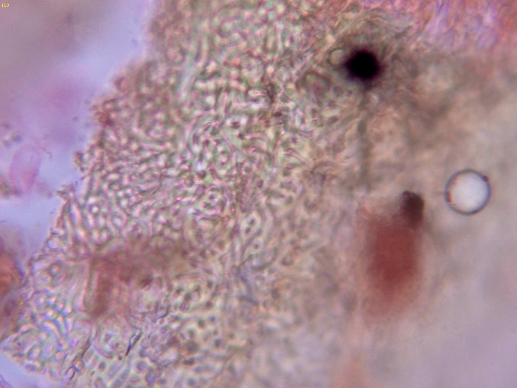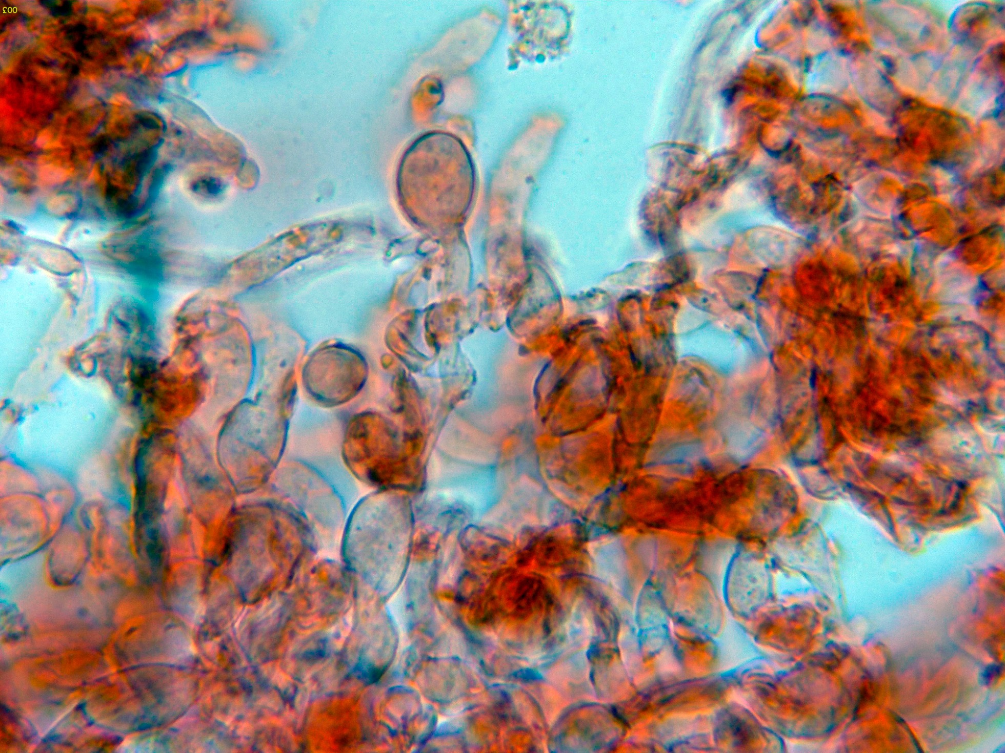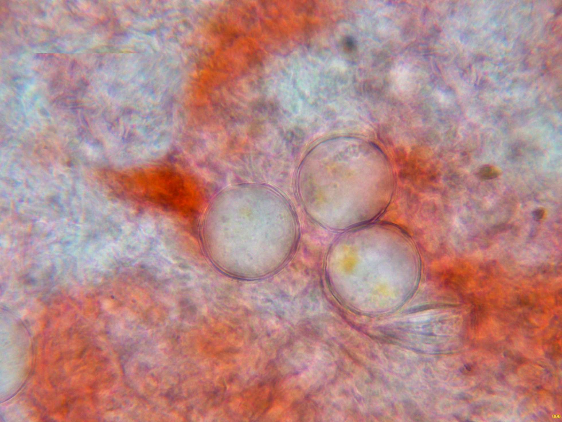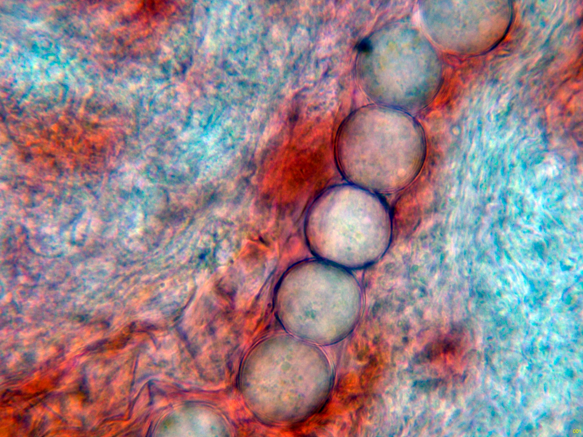 Las mismas esporas de la imágen anterior, observadas desde distinto plano, para poder observar mejor su ornamentación: