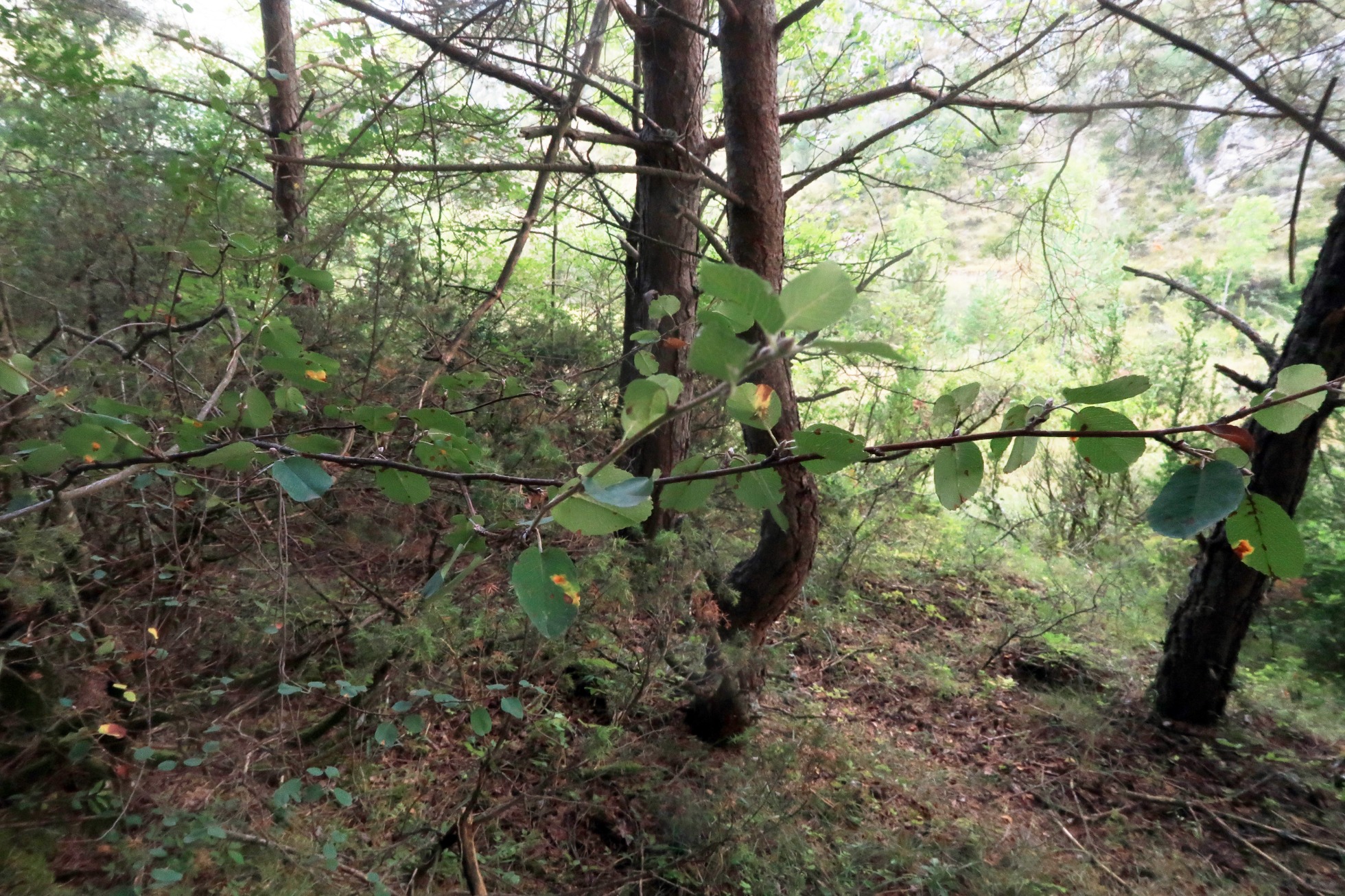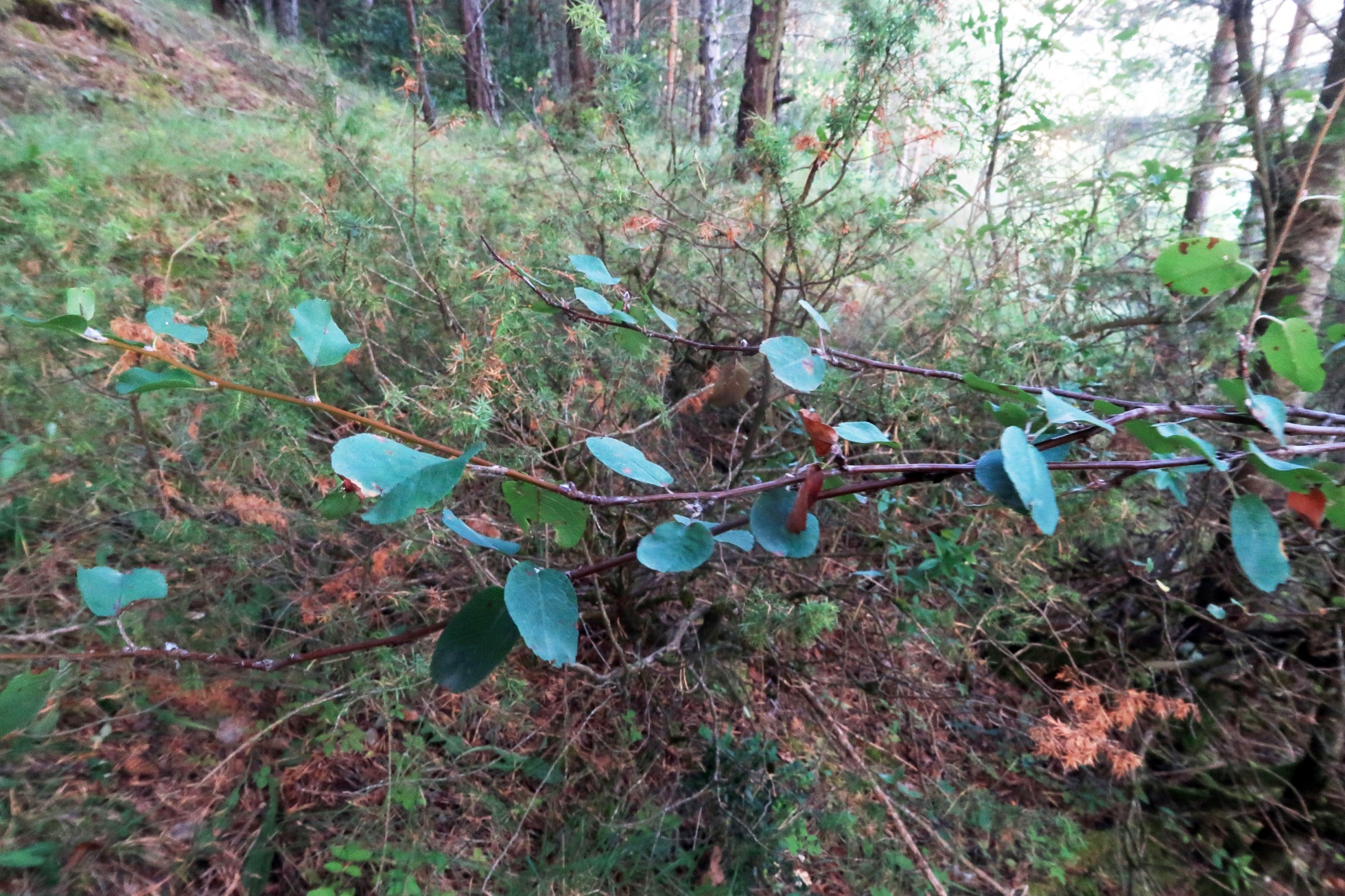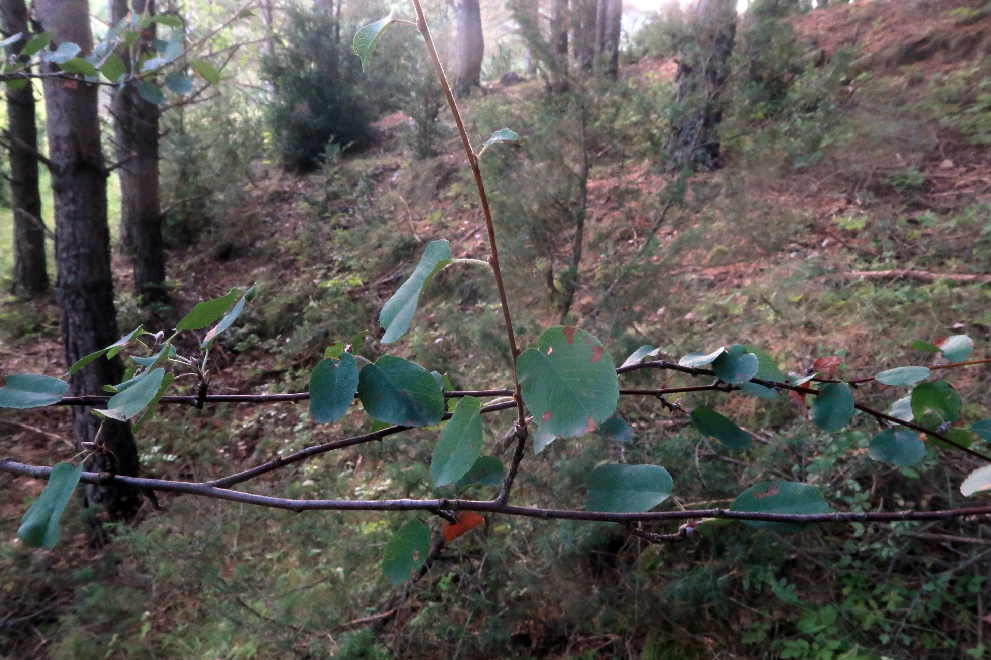 Un Gymnoporangium del pasado 25 de agosto, nuevo para mí, parasitando unas hojas vivas de Amelanchier ovalis.
