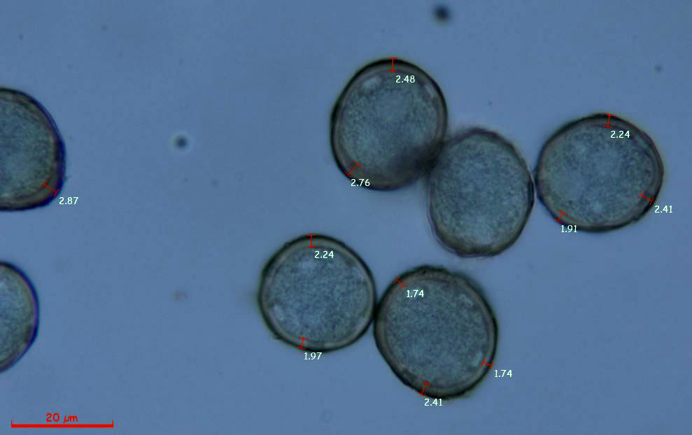 Y por último una imágen con las medidas de la pared de estas eciosporas: