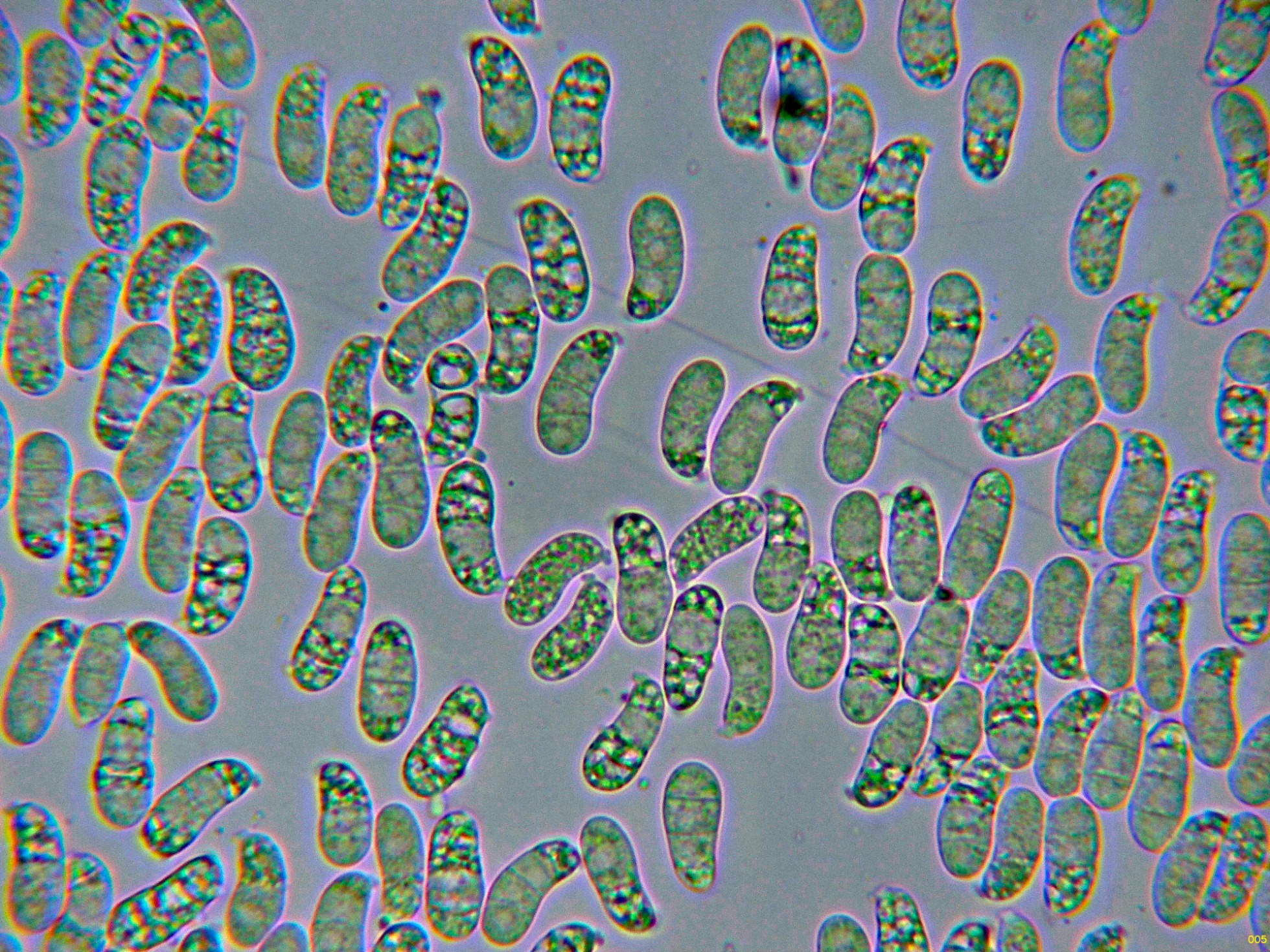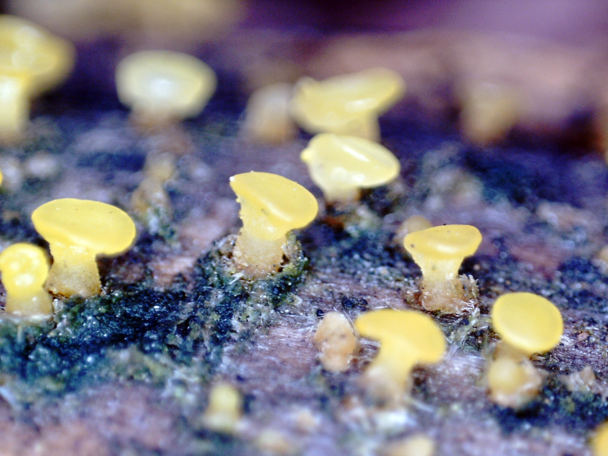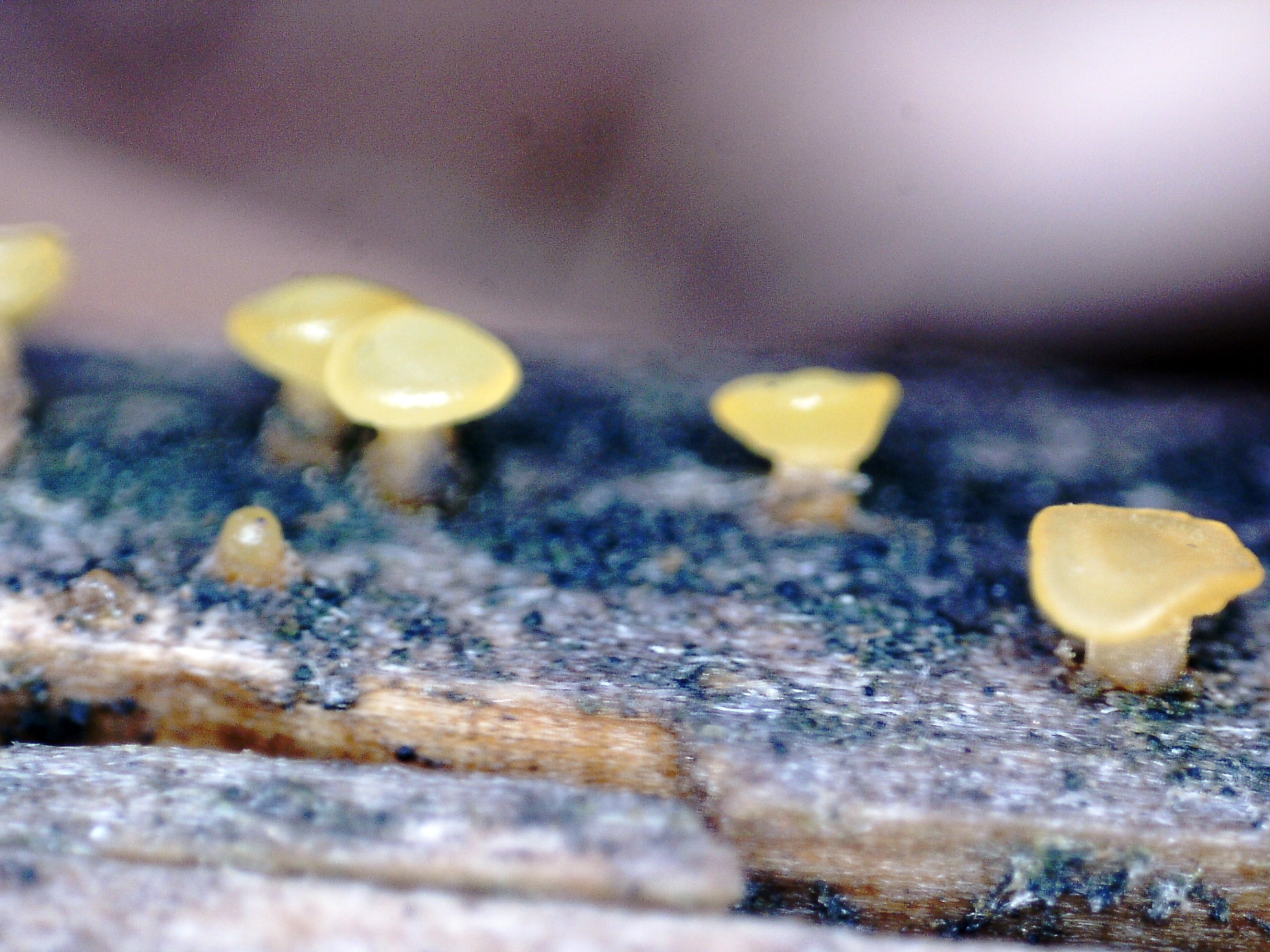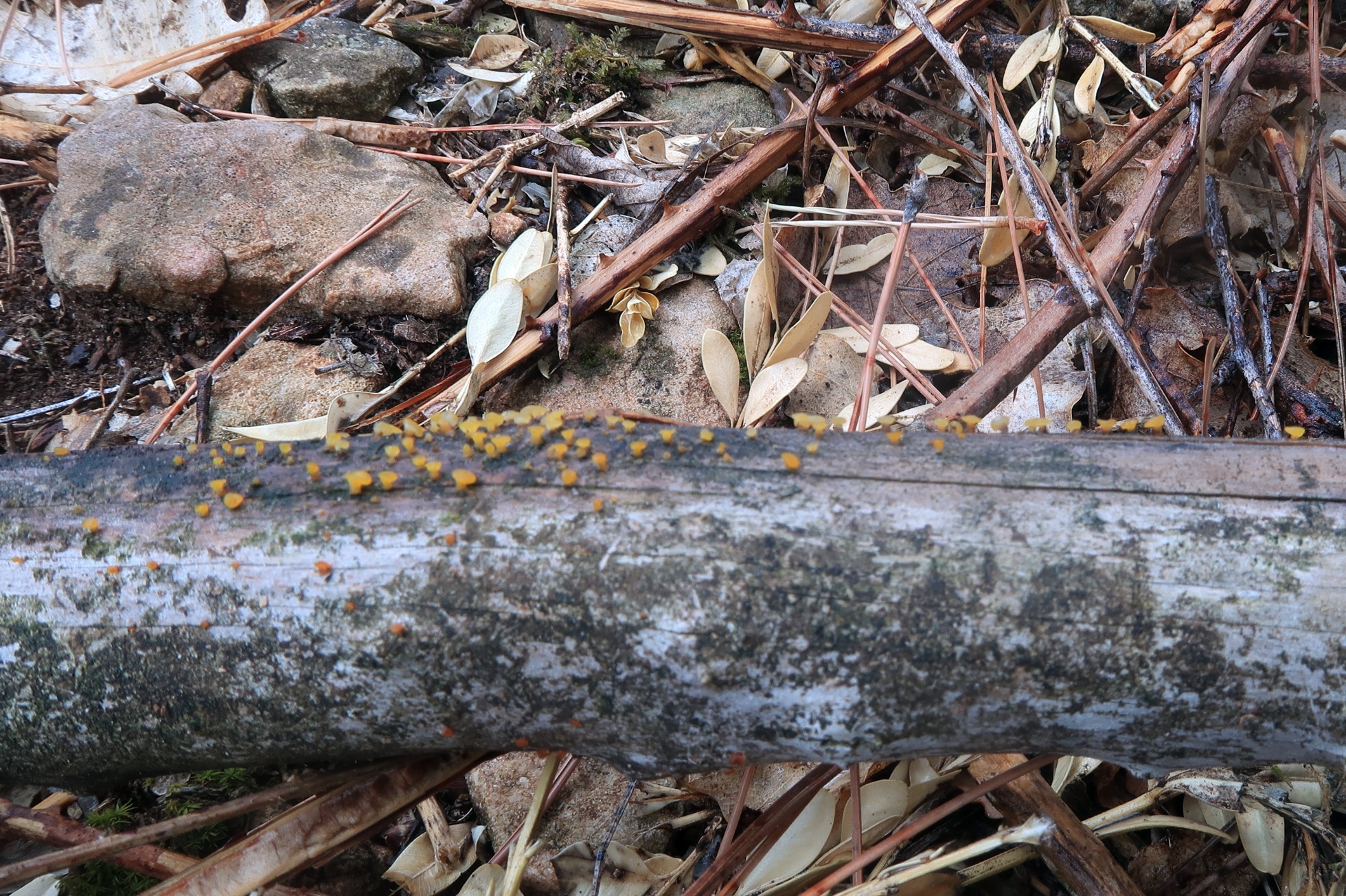 Un Dacrymycetal del 18 de agosto pasado que si bien ya me había encontrado allá por 2015, no lo había visto desde entonces y de él no disponía de su microscopía, tan solo conservaba una mala imágen de sus esporas.