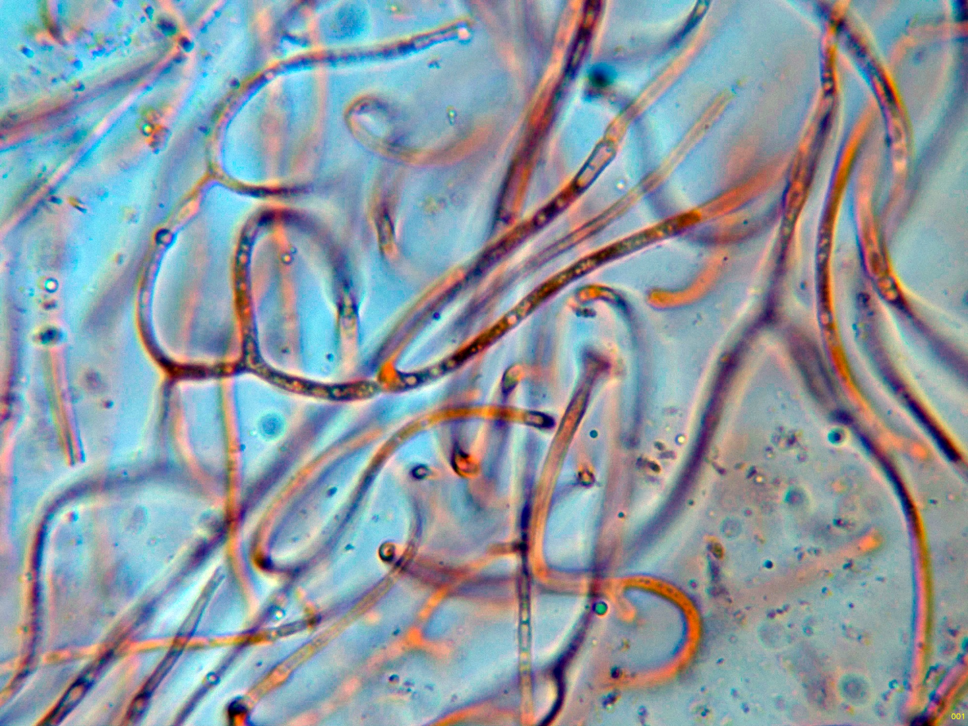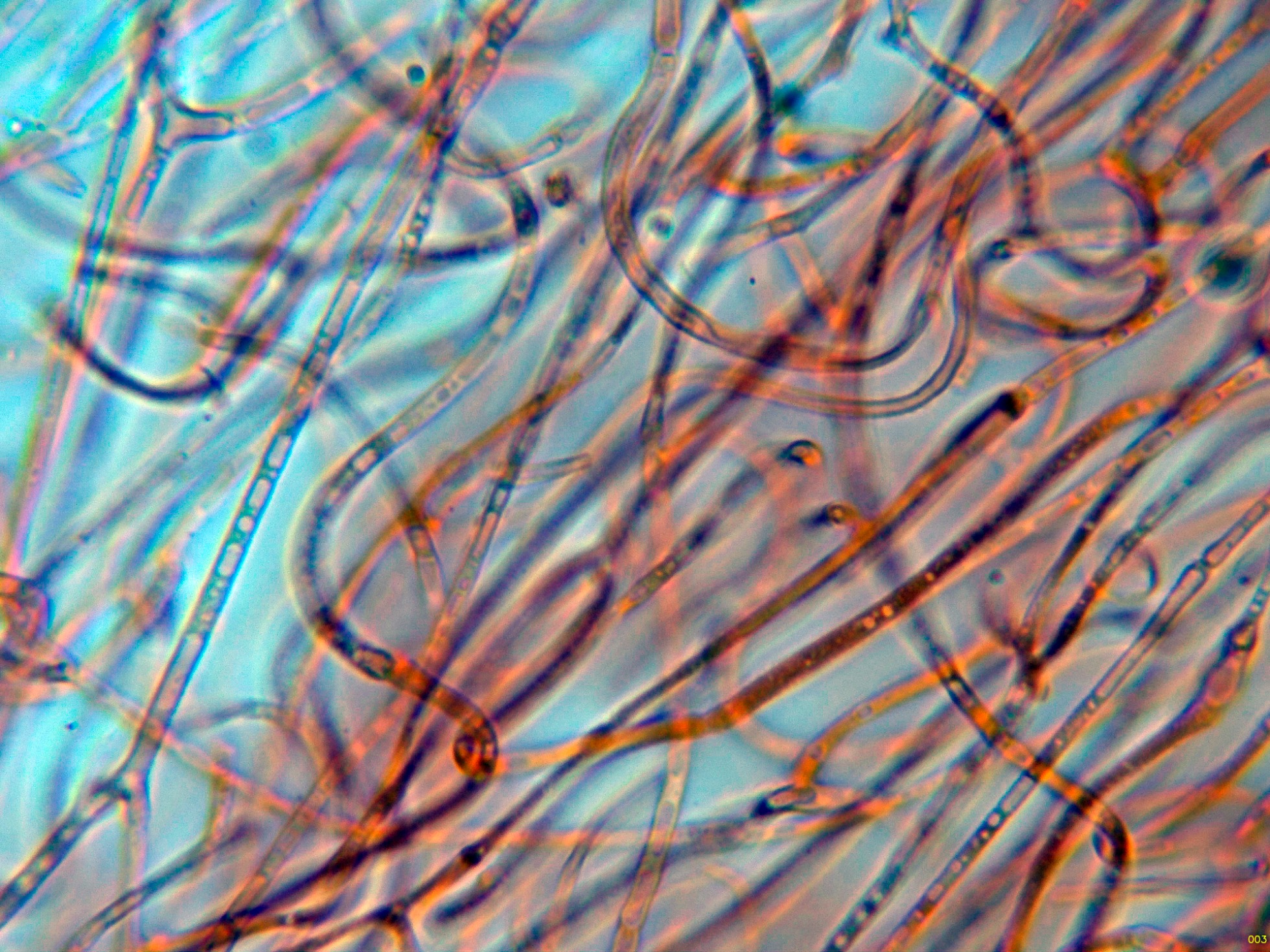 Las hifas del contexto muy separadas por gelificación y sin fíbulas.