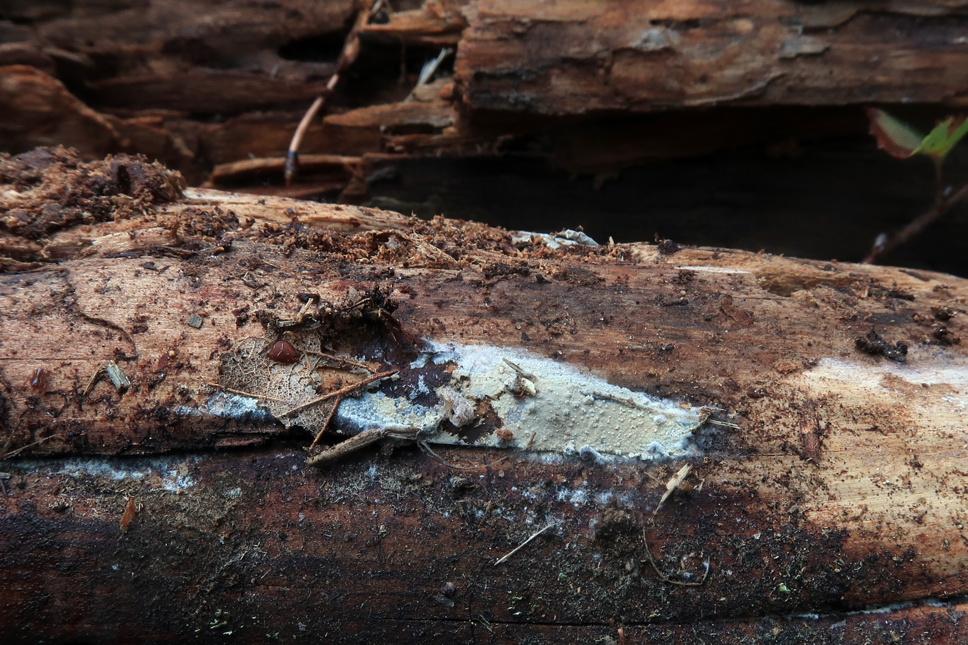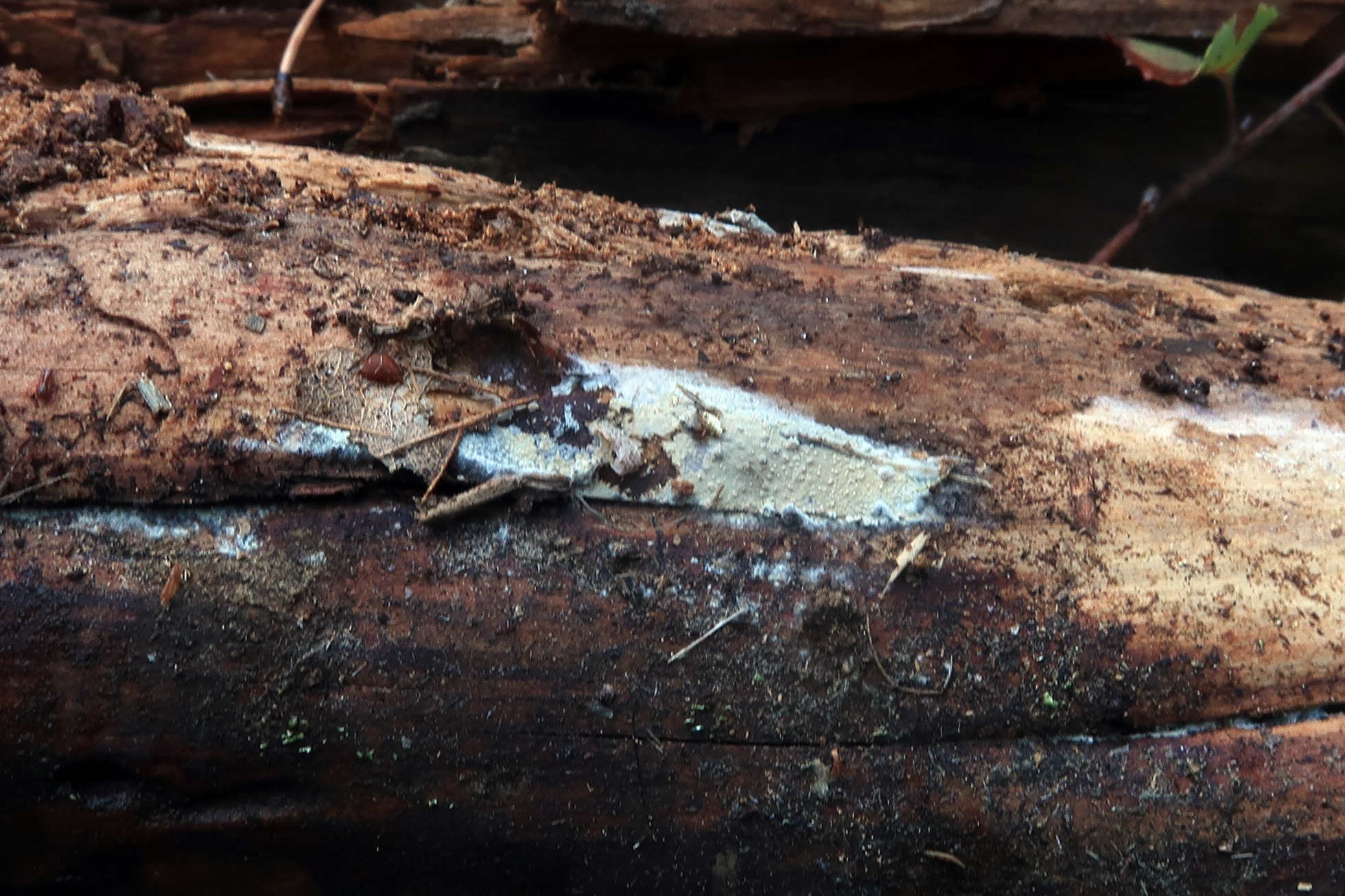 Un Dacrymyceto resupinado fotografiado y recolectado el 18 de agosto pasado.