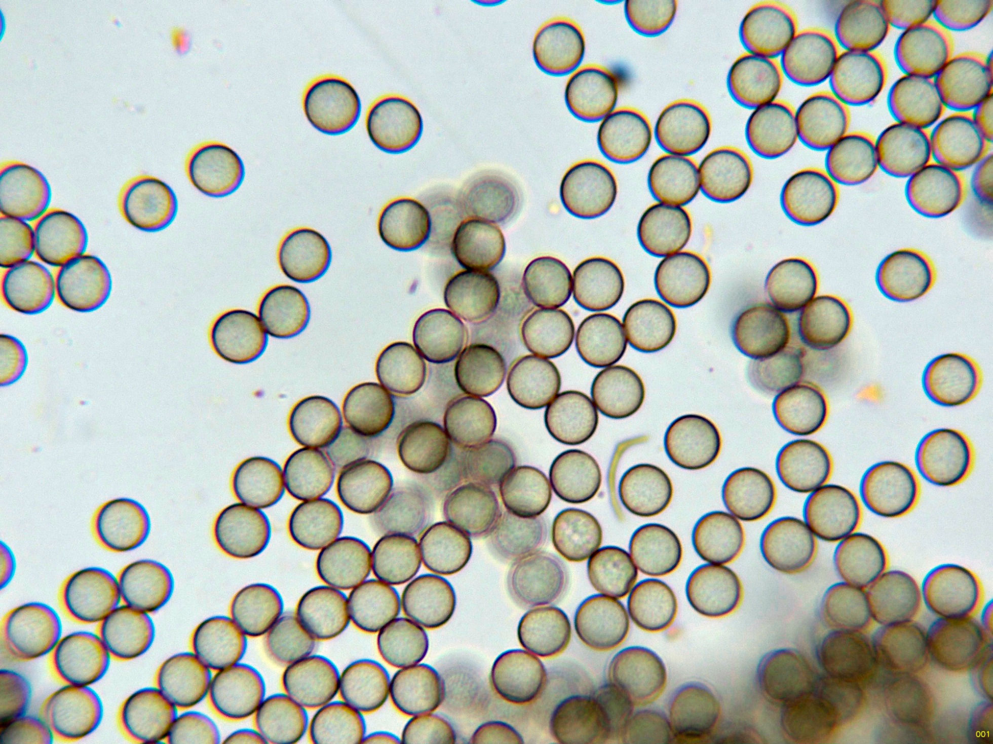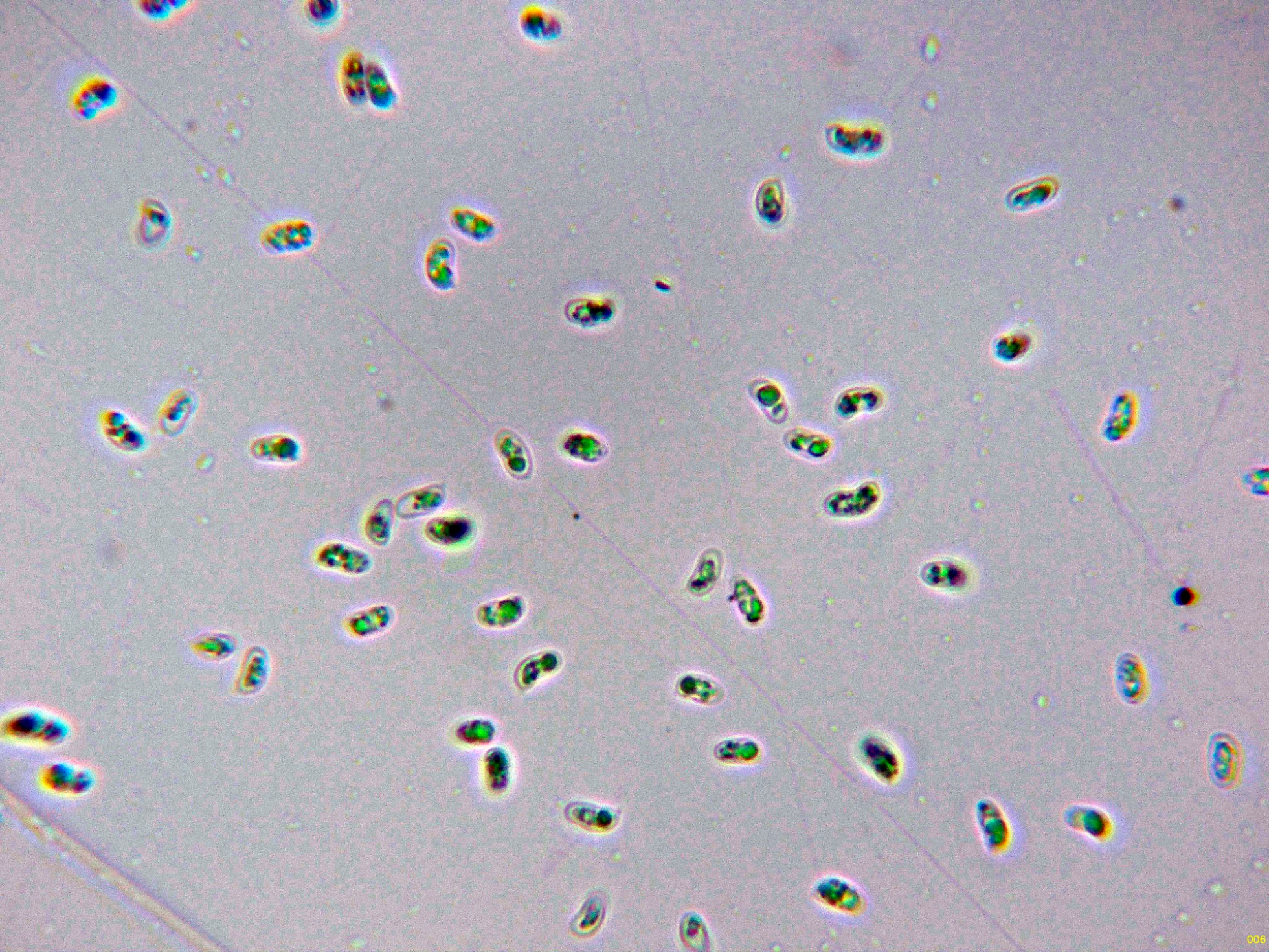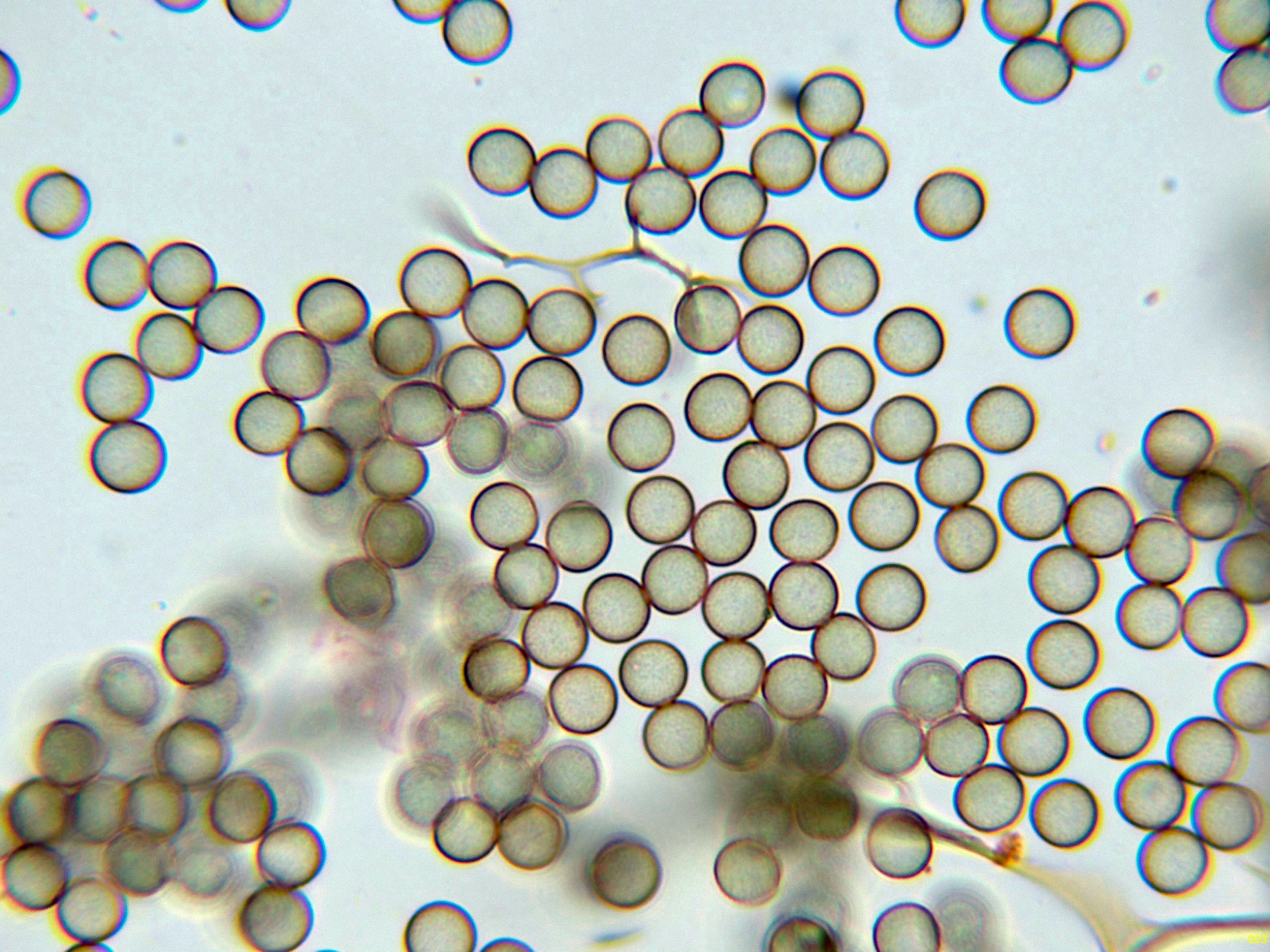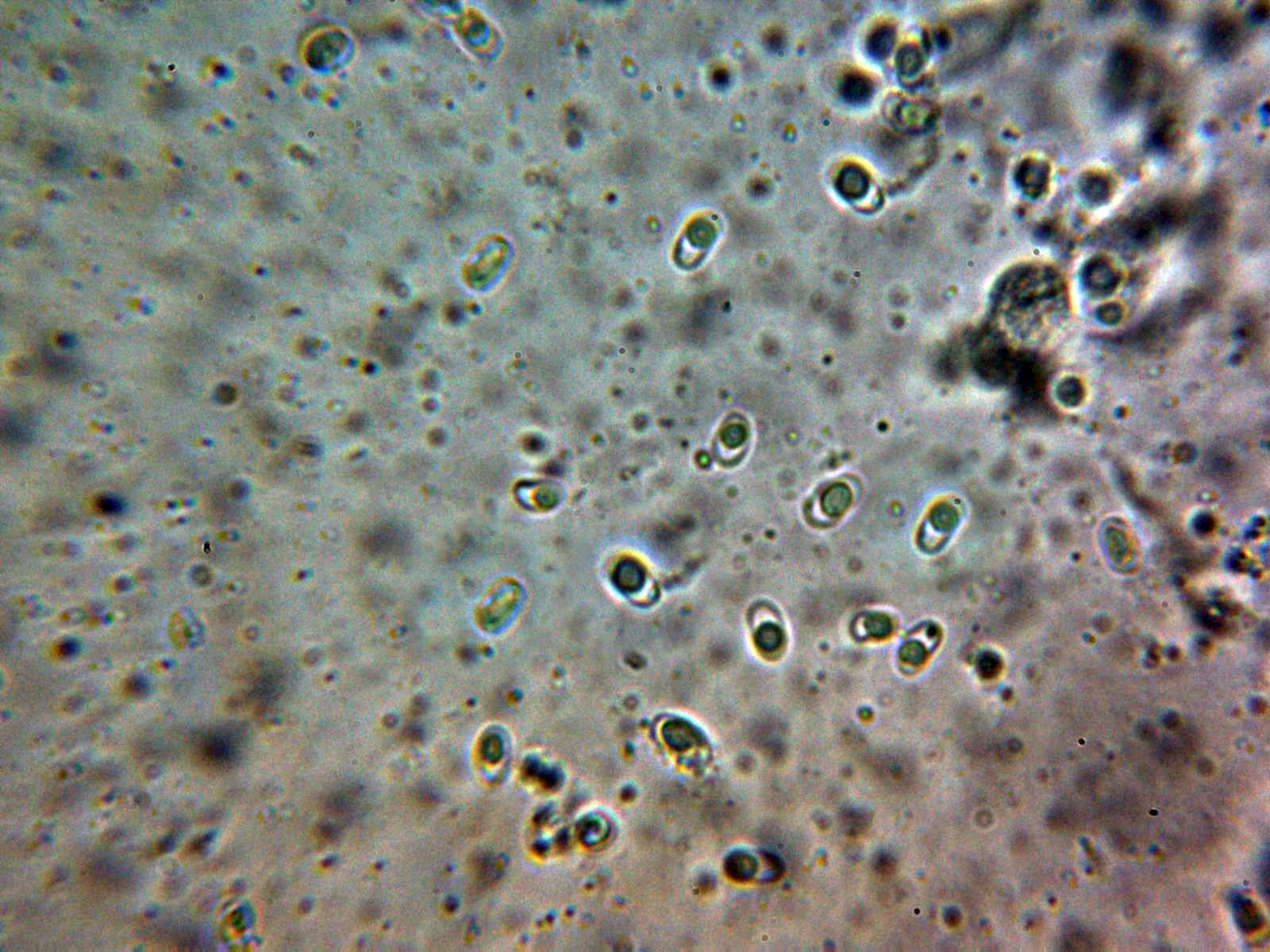Y unas pocas esporas observadas en agua, tan pocas que no me sirven para mediciones fiables: