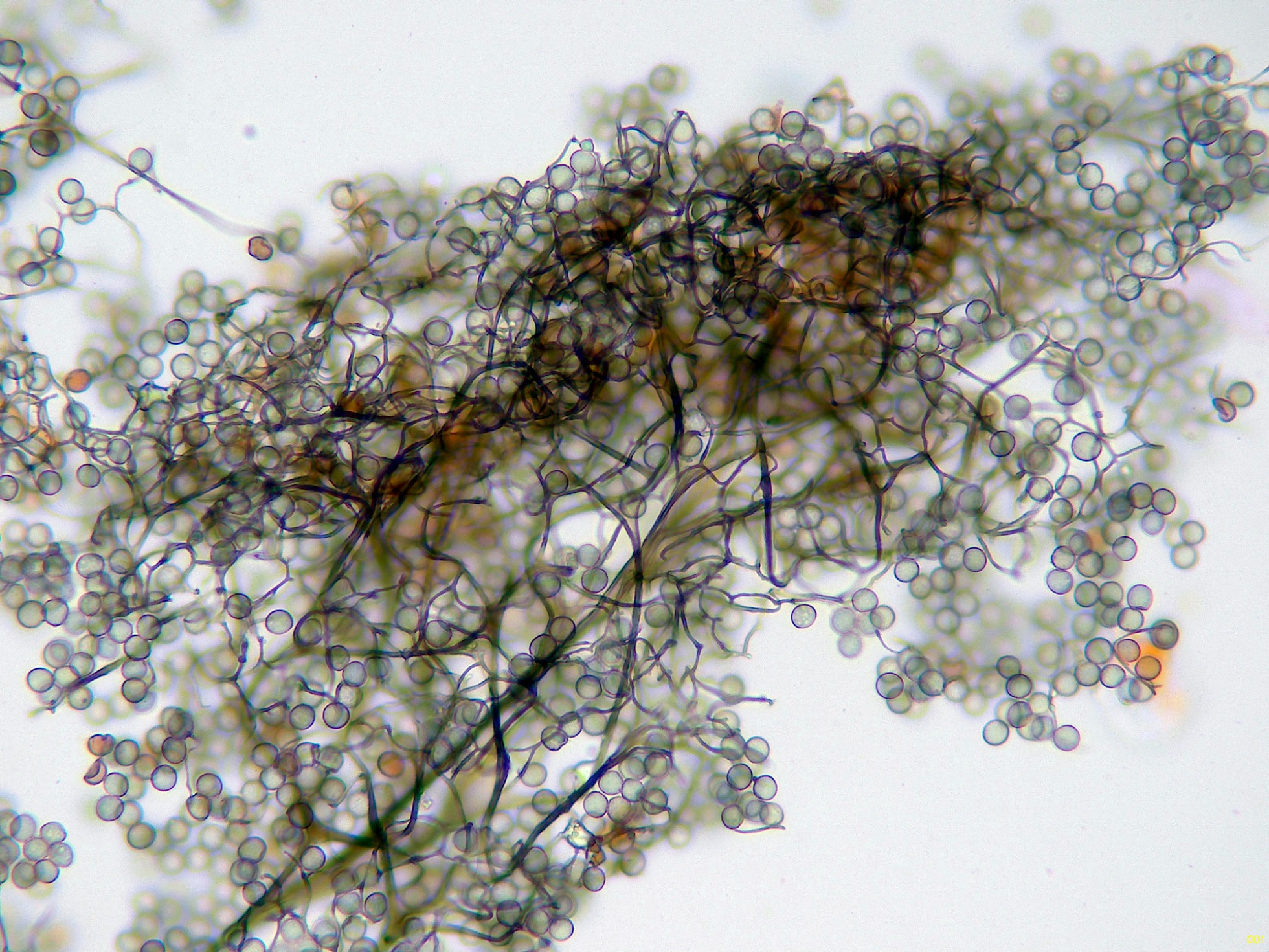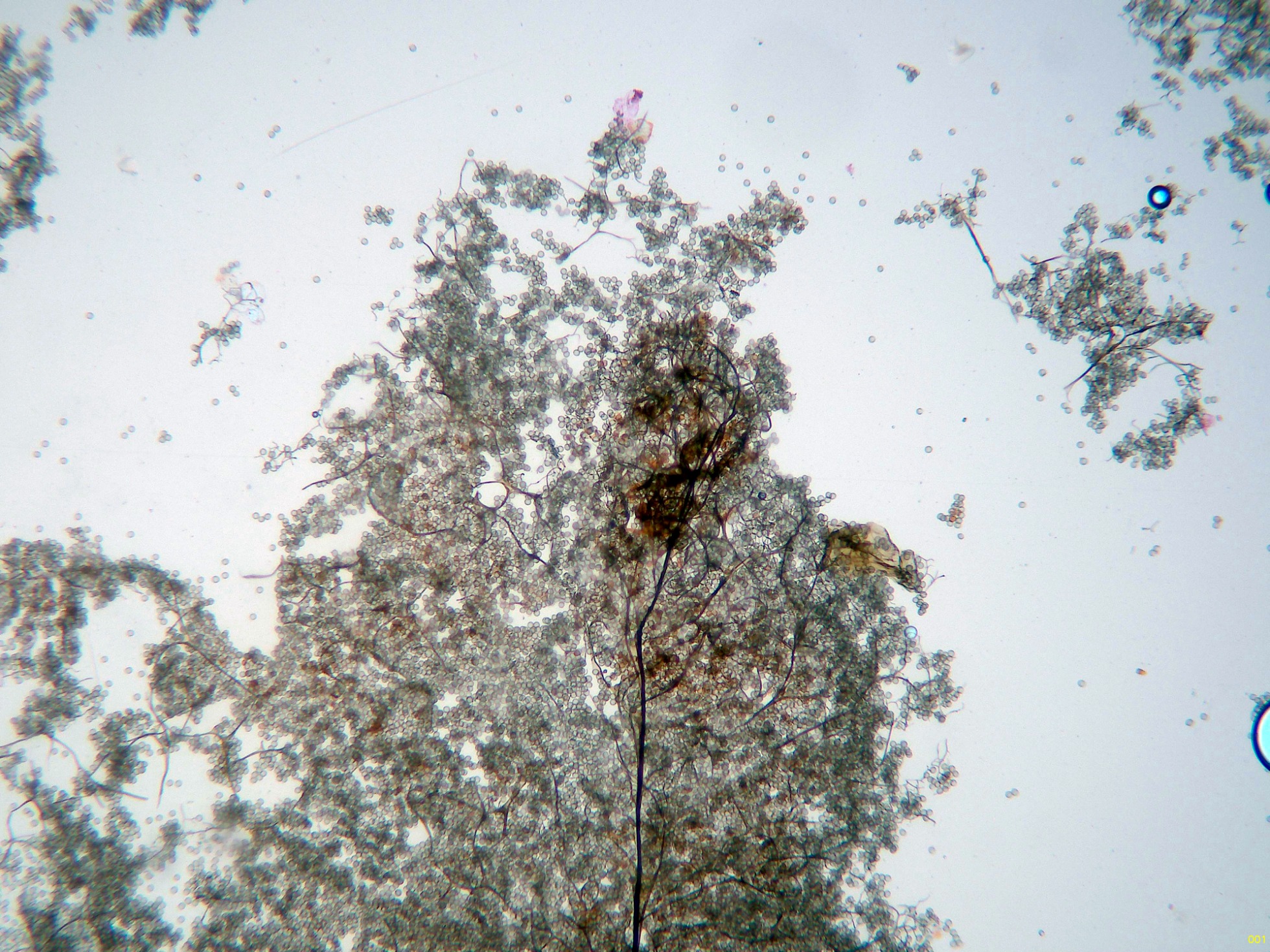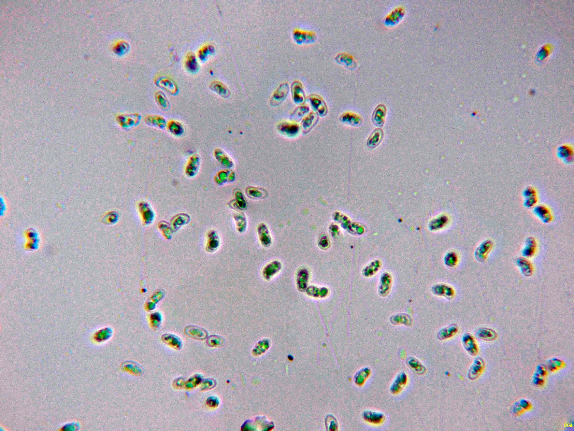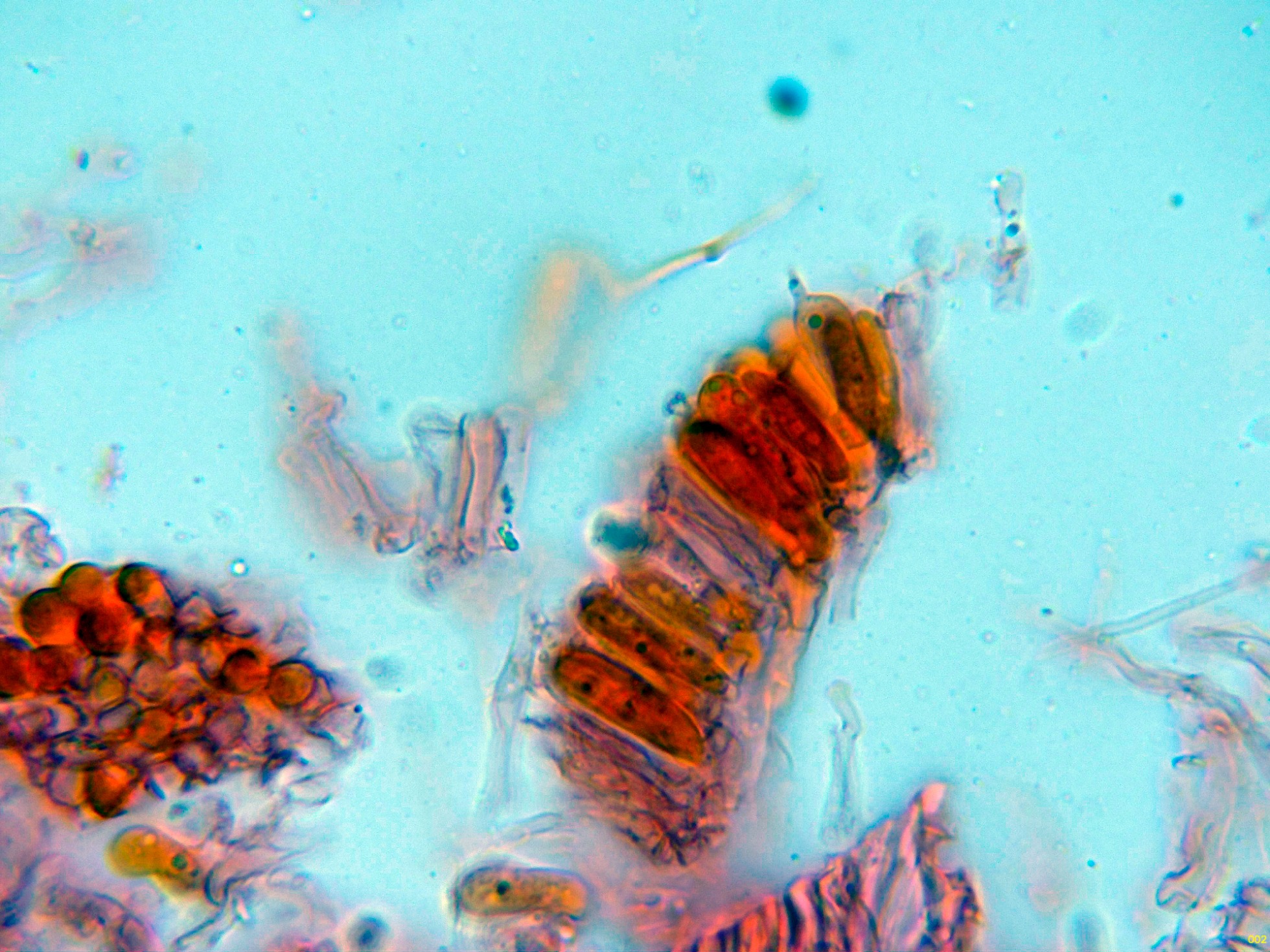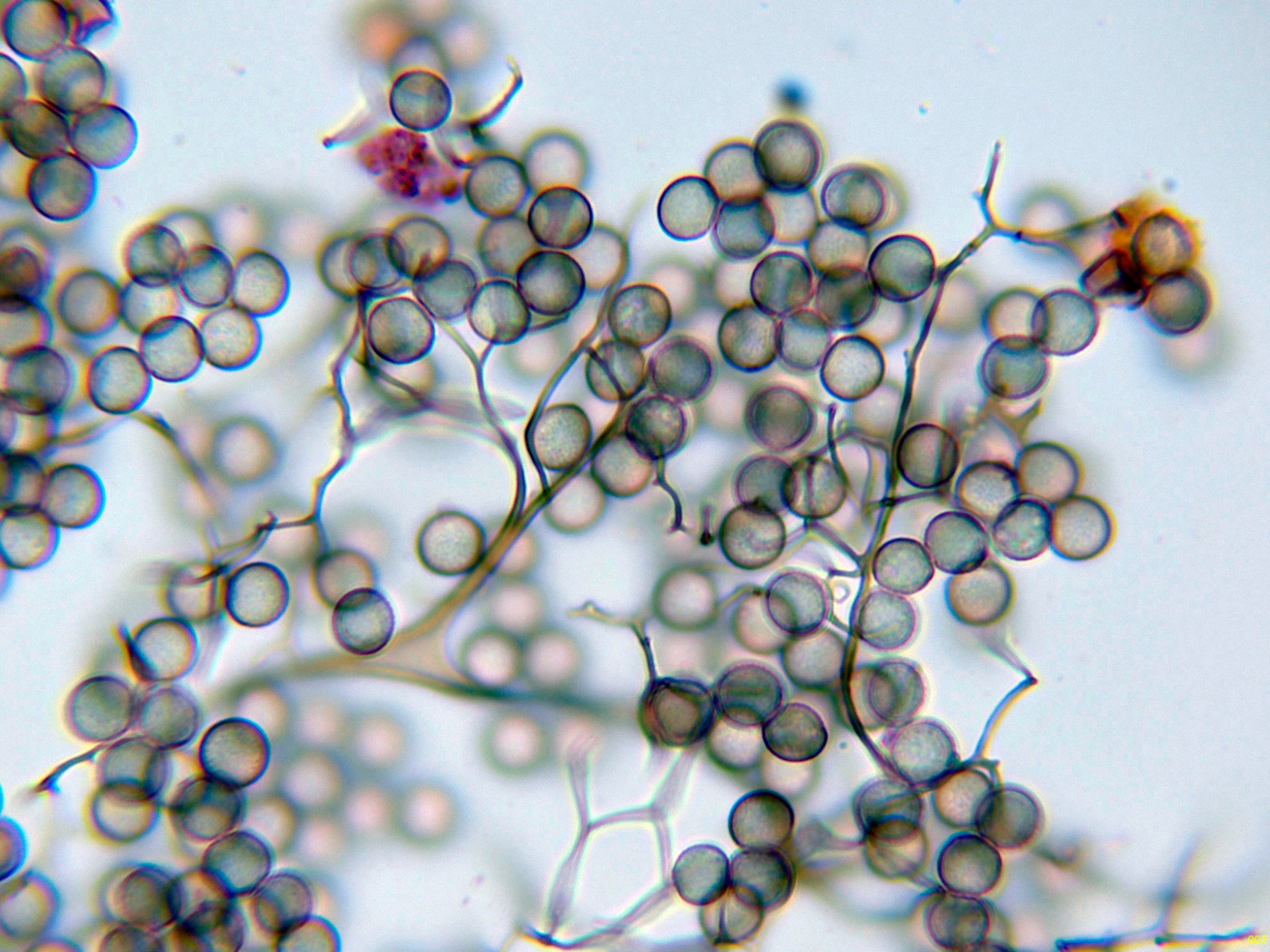 Y unas pocas esporas observadas en agua, tan pocas que no me sirven para mediciones fiables: