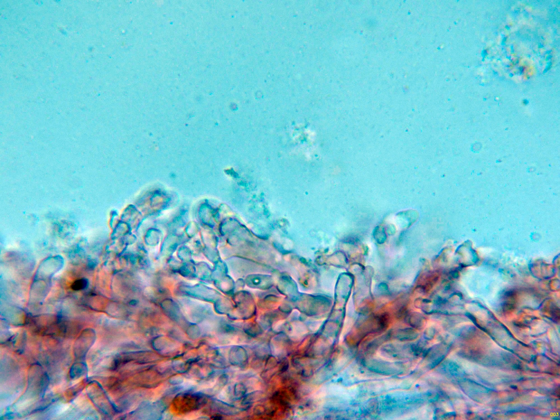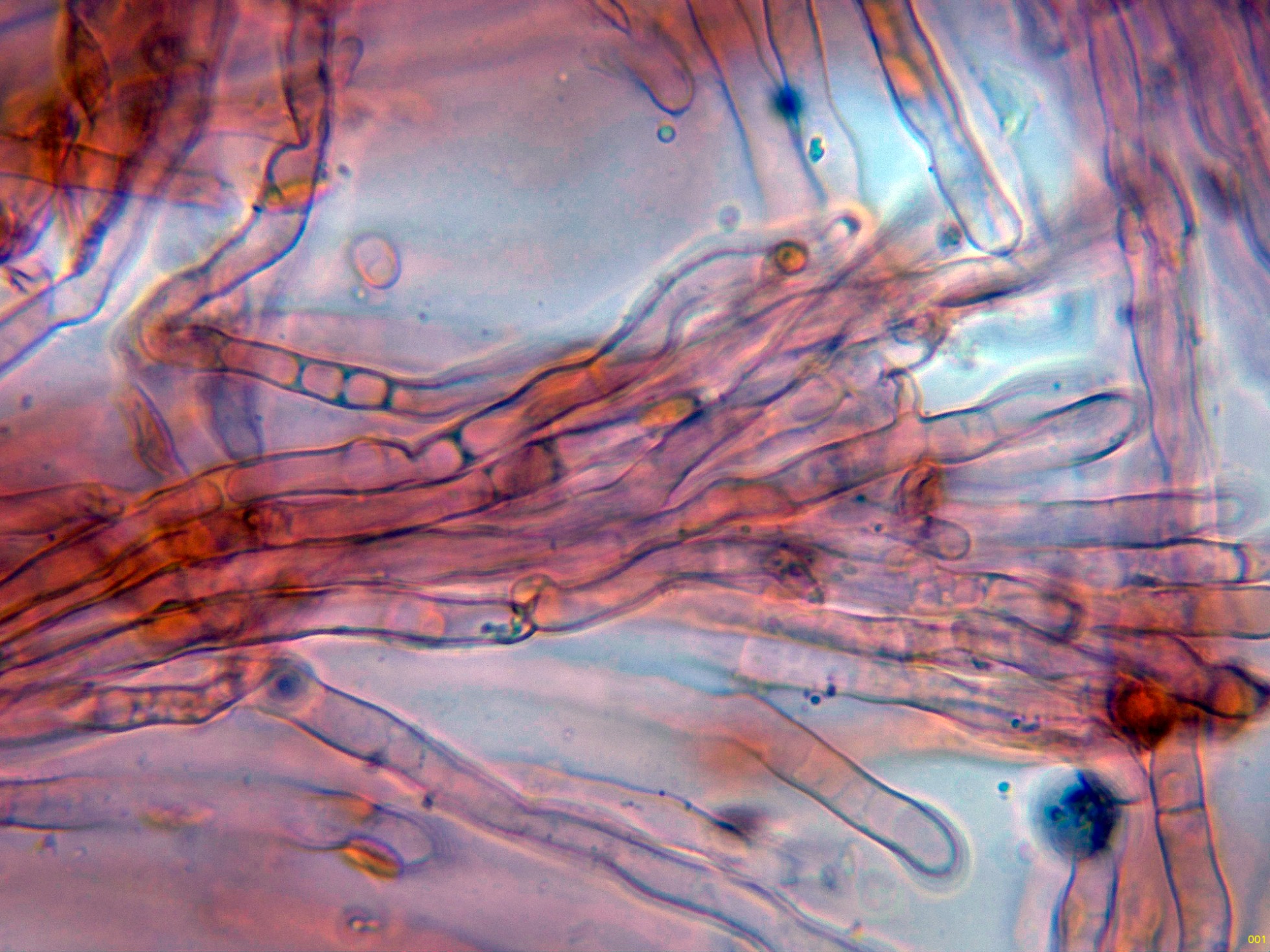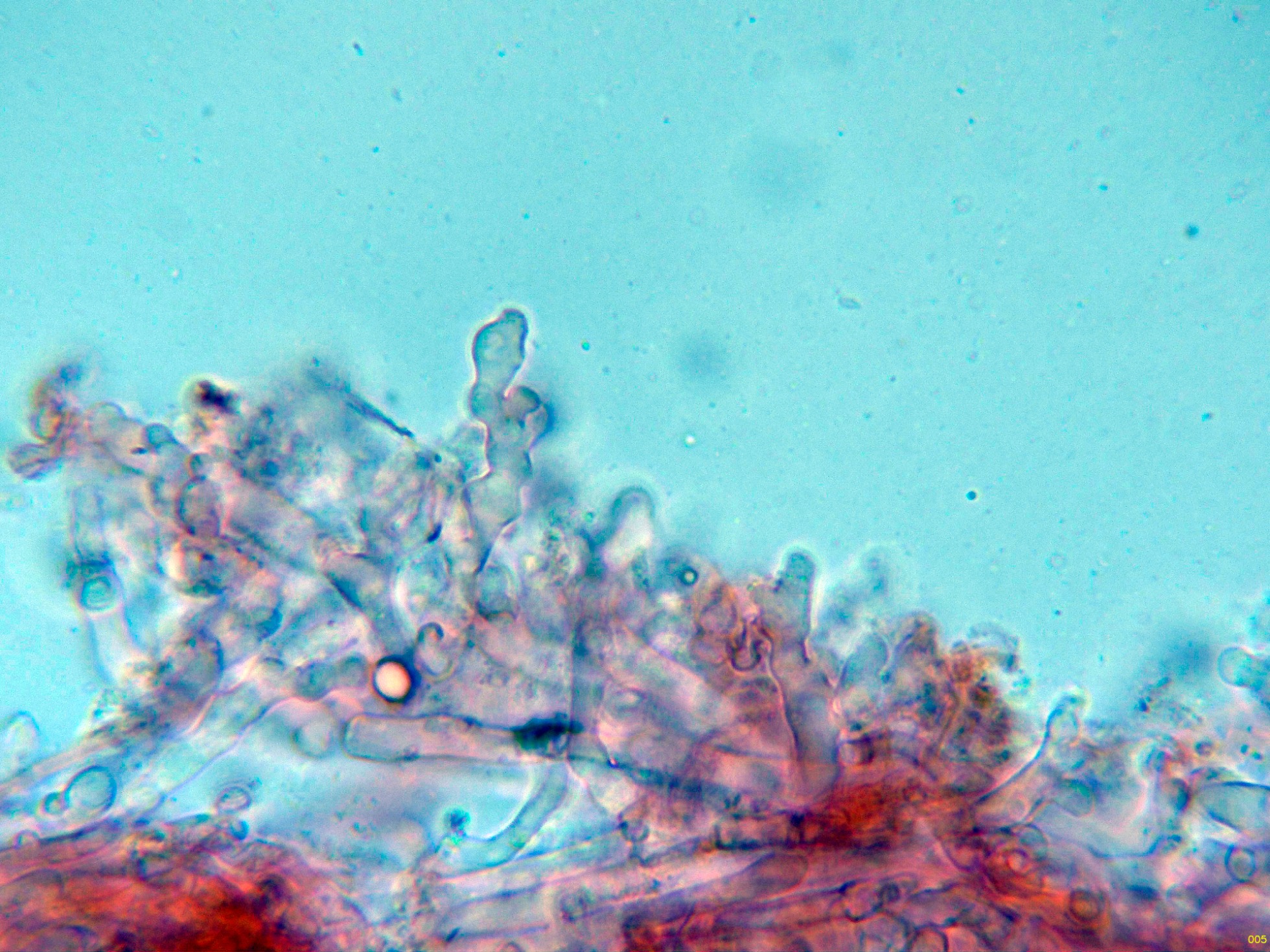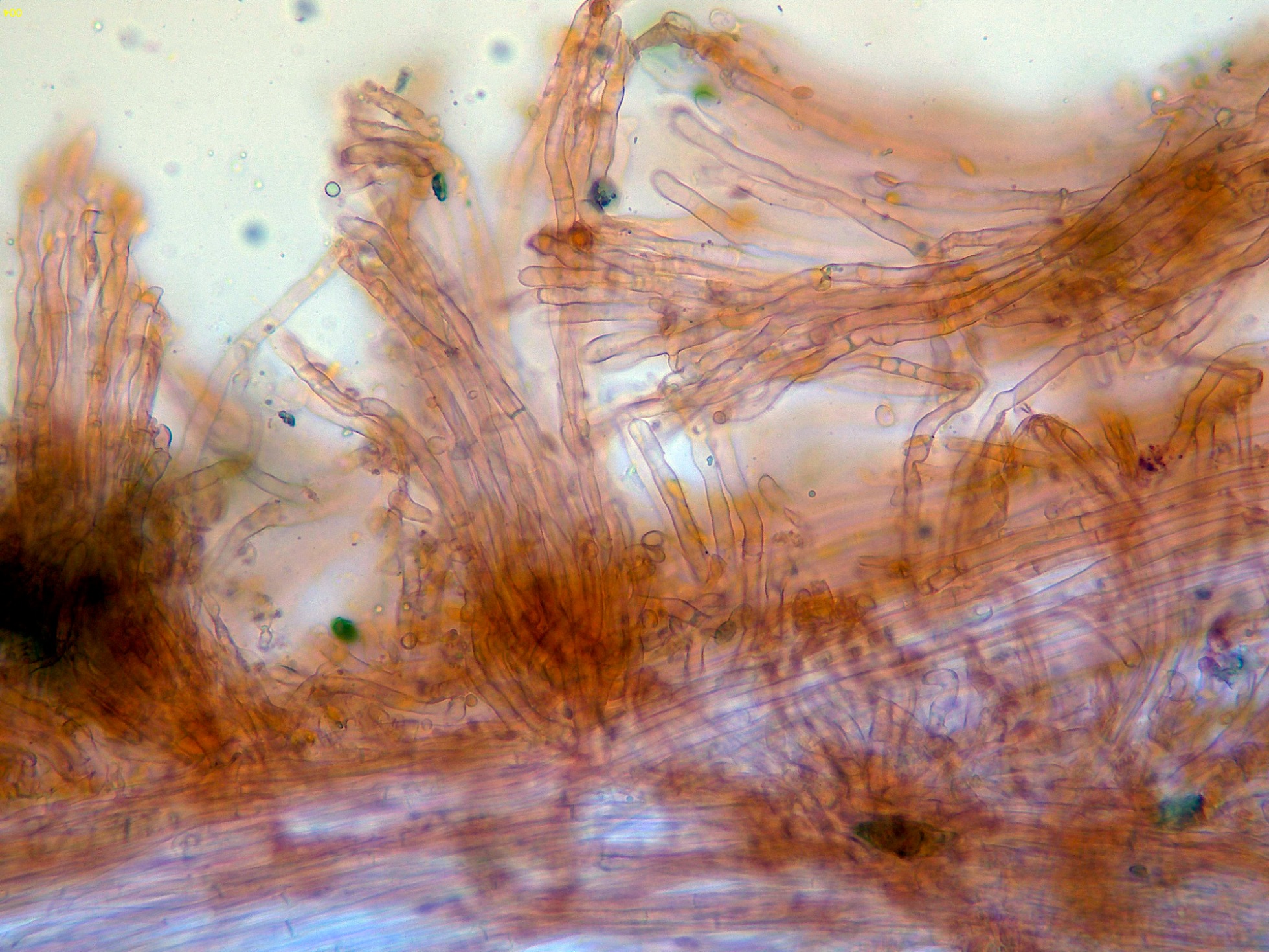 En la superficie del pie numerosas hifas terminales a modo de caulocistidios, dispuestas en ramilletes.