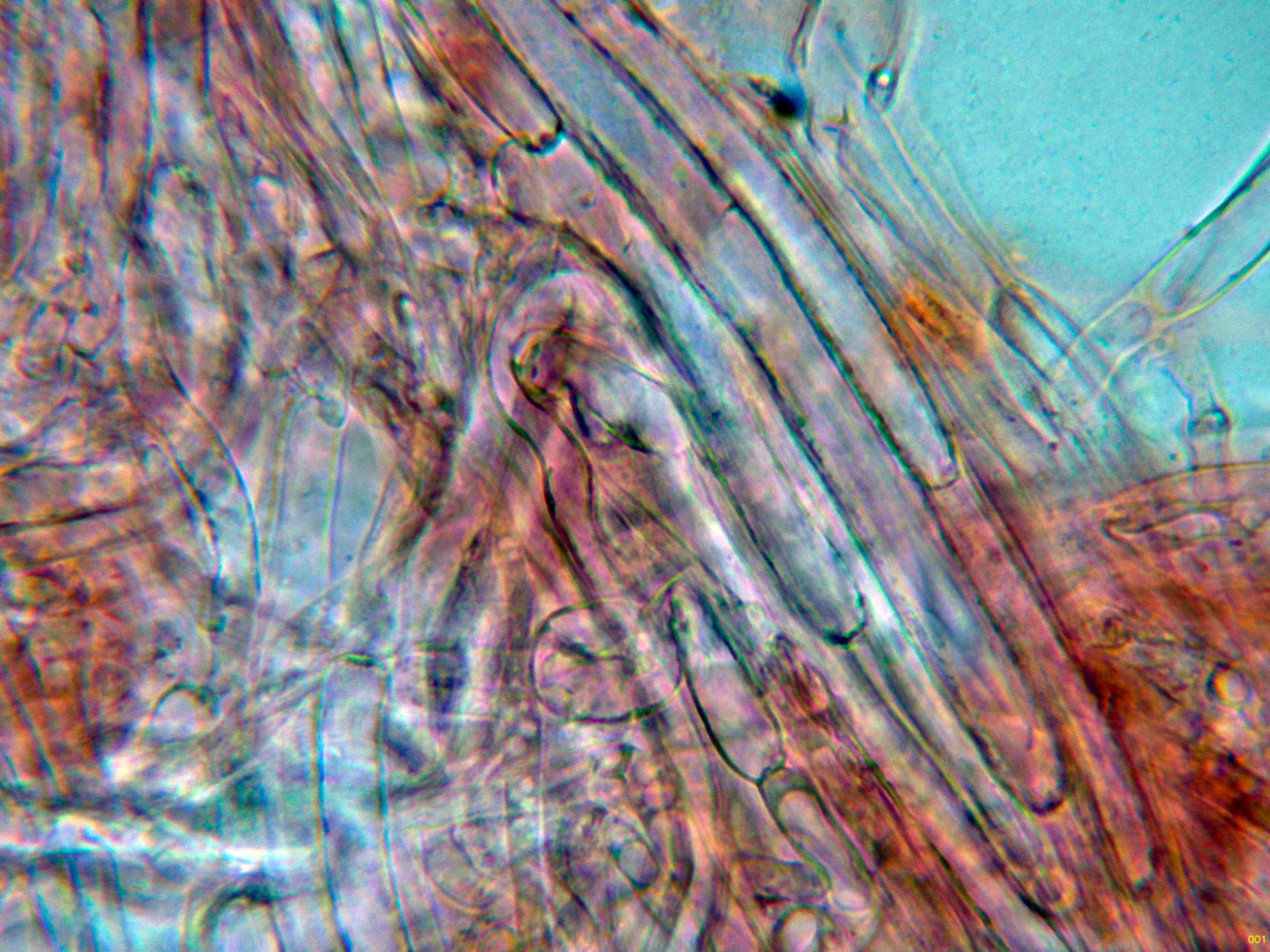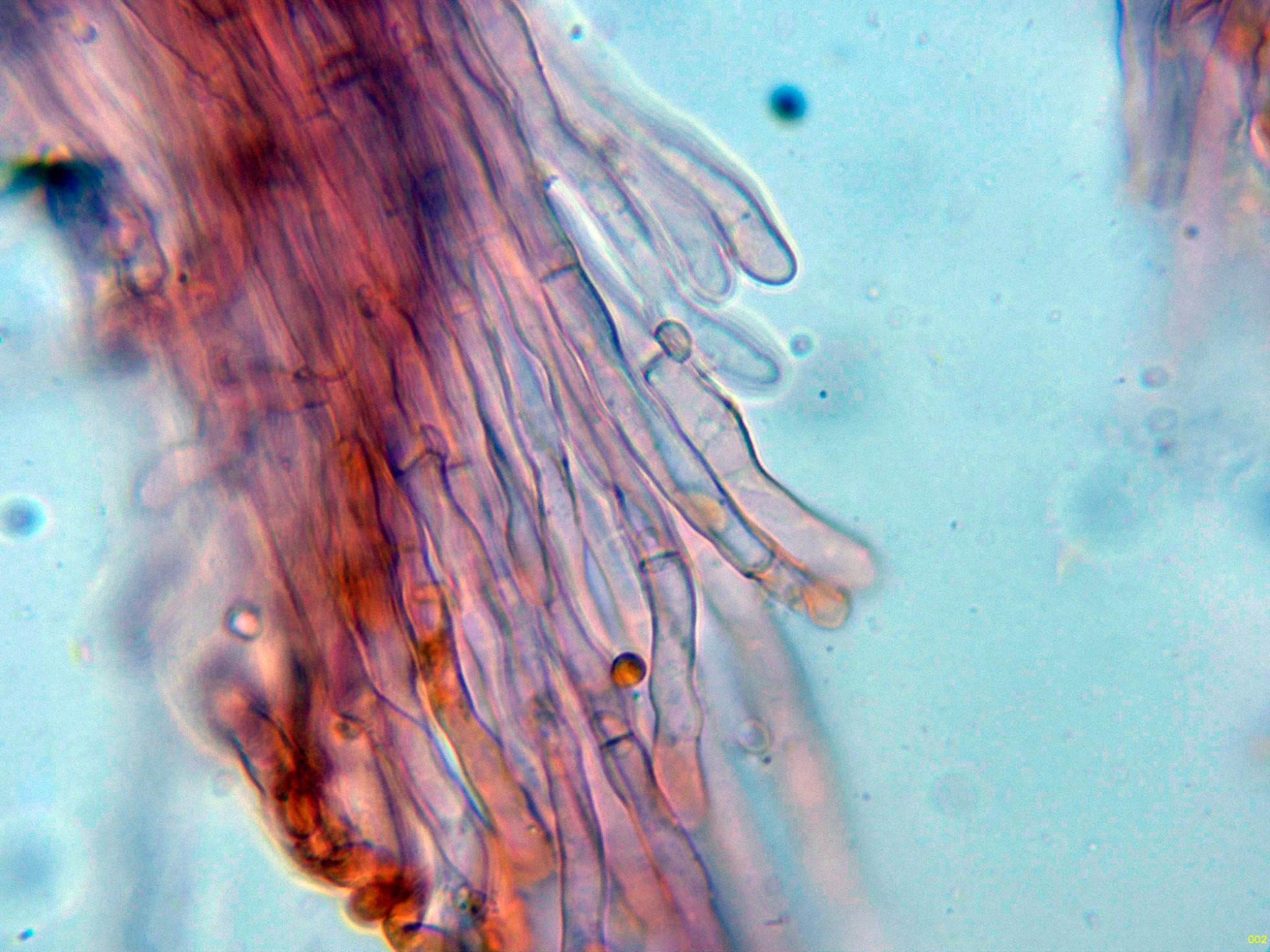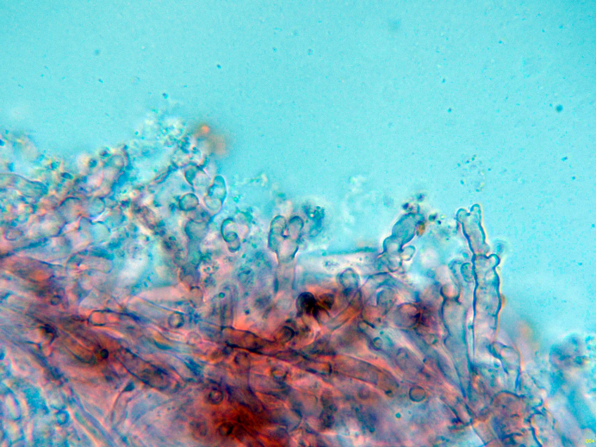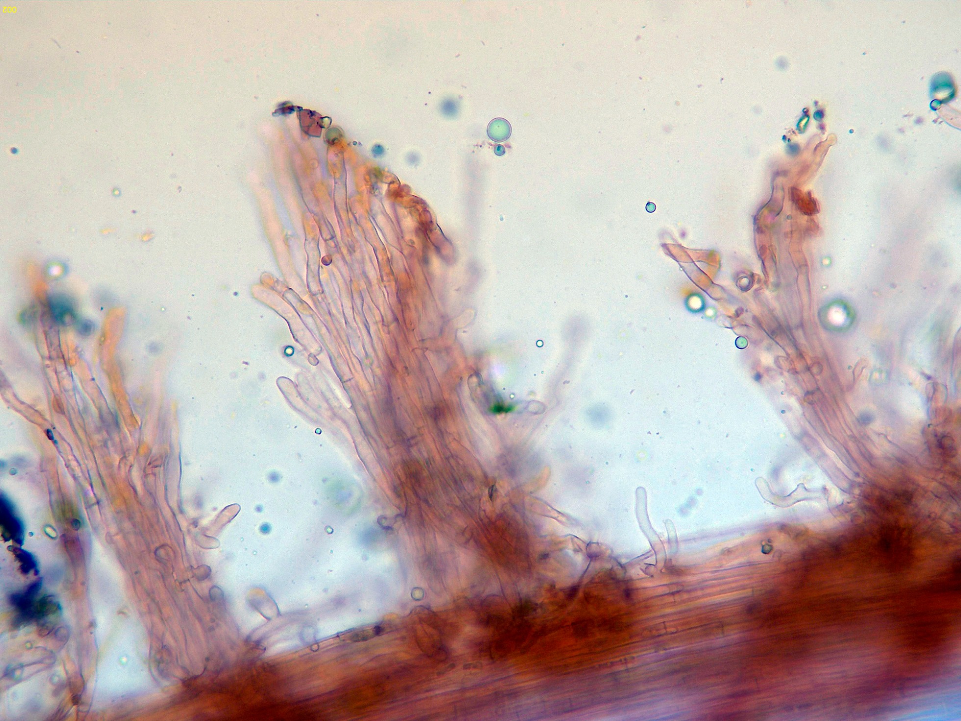 En la superficie del pie numerosas hifas terminales a modo de caulocistidios, dispuestas en ramilletes.