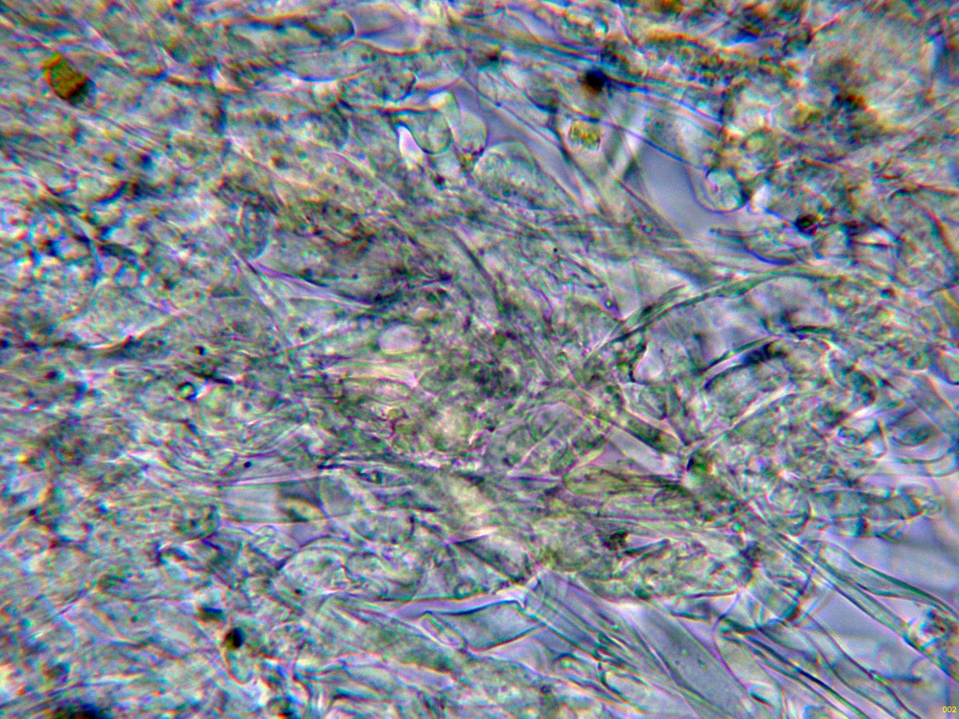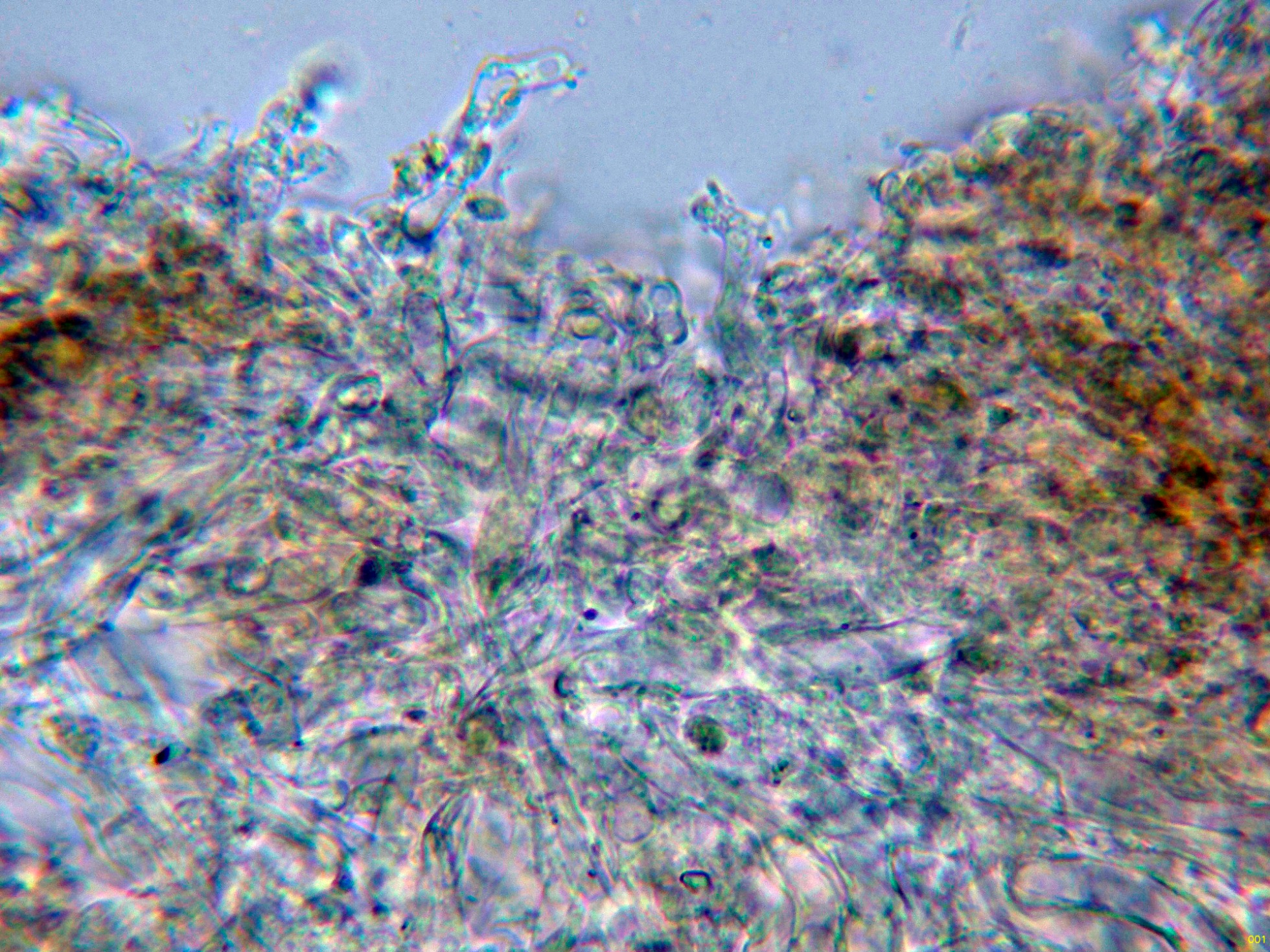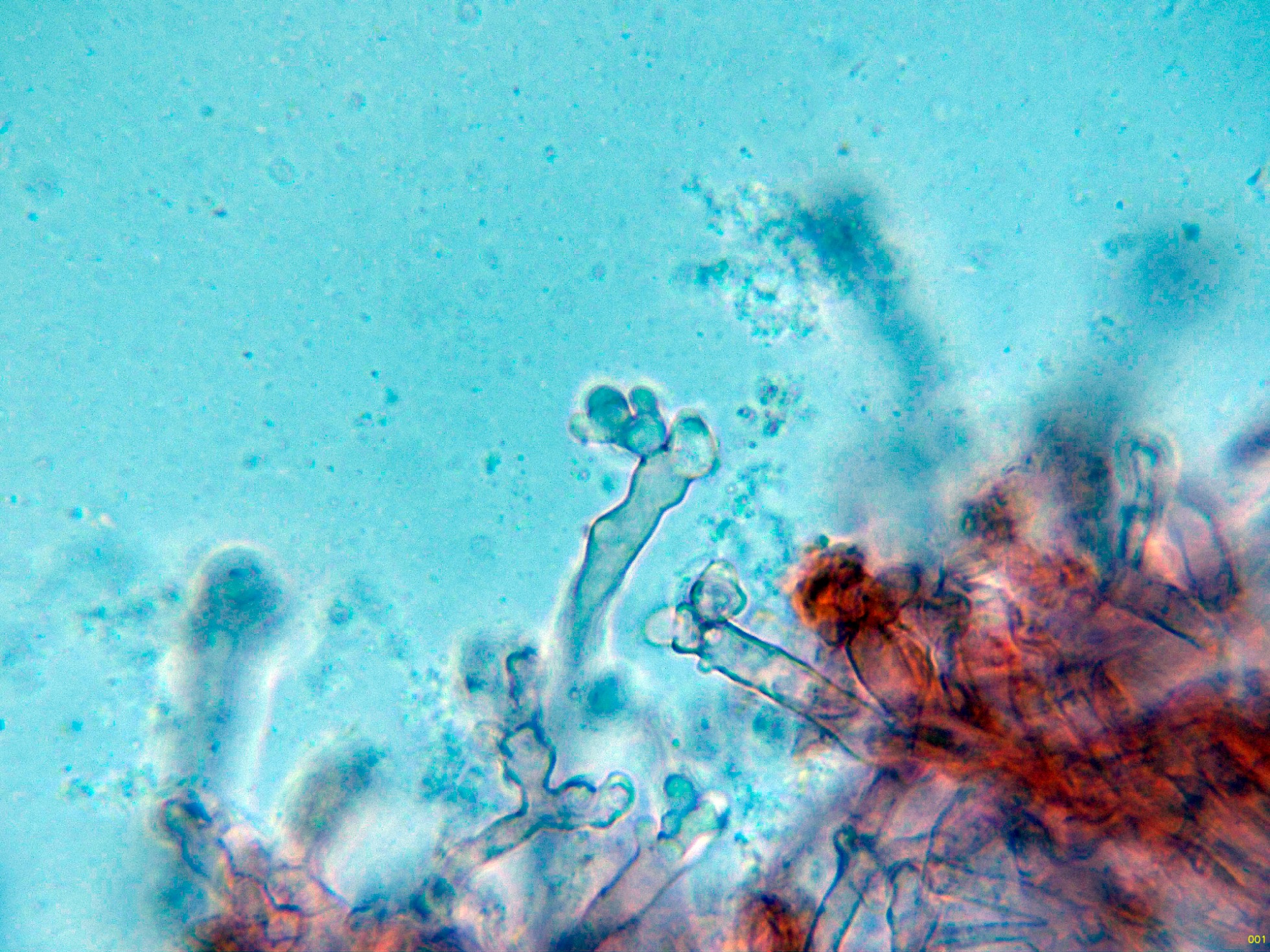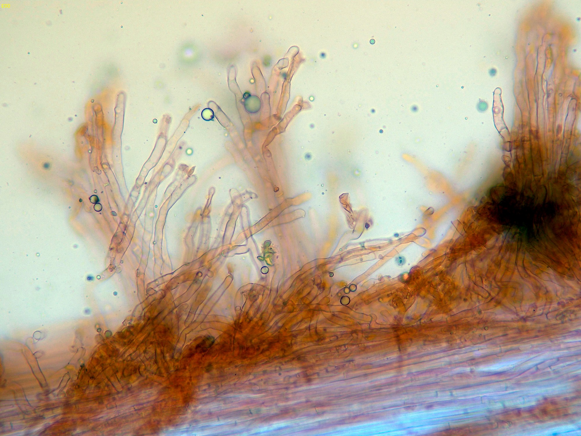 En la superficie del pie numerosas hifas terminales a modo de caulocistidios, dispuestas en ramilletes.