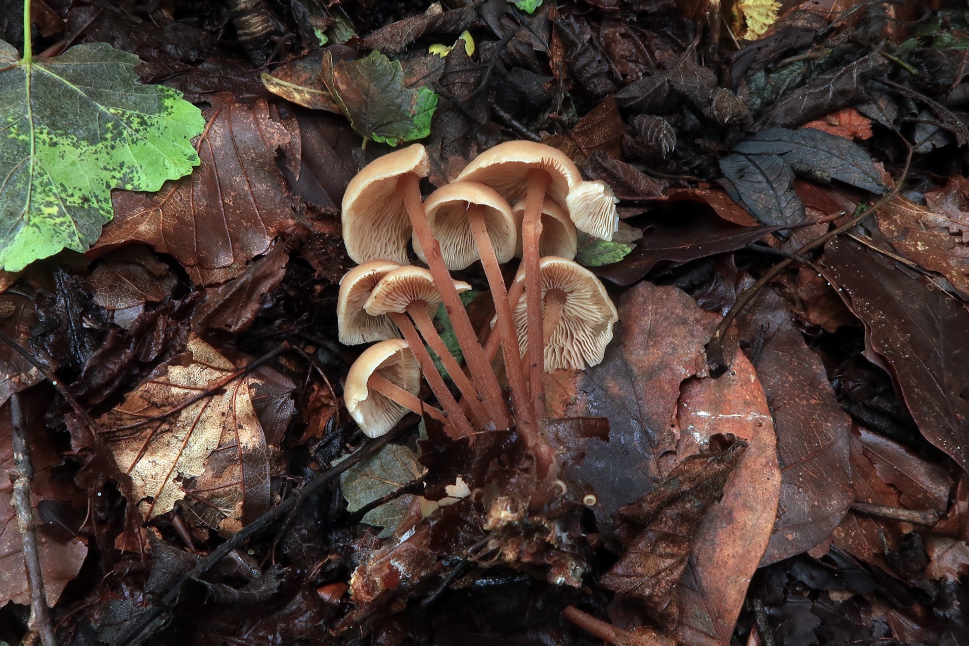 Un Gymnopus del pasado 9 de septiembre, recolectado en el Valle de Pineta (Bielsa), el Gymnopus confluens, actualmente Collybiopsis confluens.