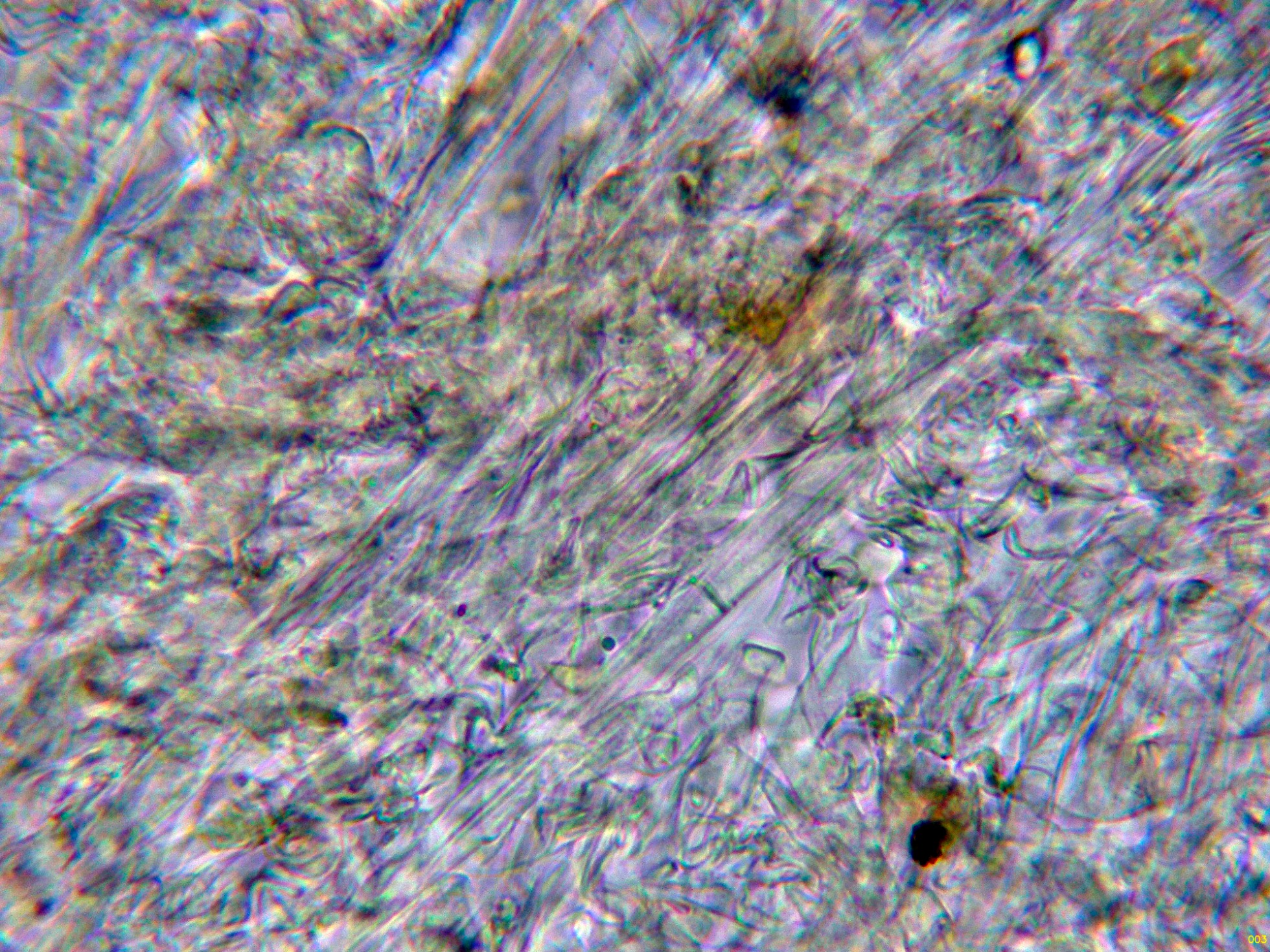 La suprapellis en agua a 1000 aumentos, con hifas con pigmento ocráceo:
