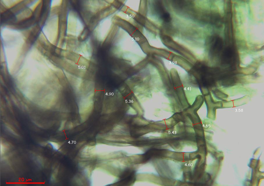 Una imágen de estas hifas subiculares con sus correspondientes medidas en anchura: