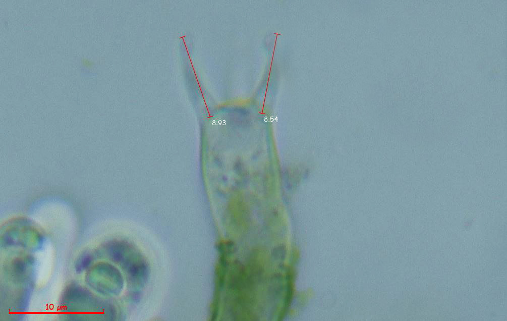 Un par de imágenes de los basidios con las medidas de los esterigmas: