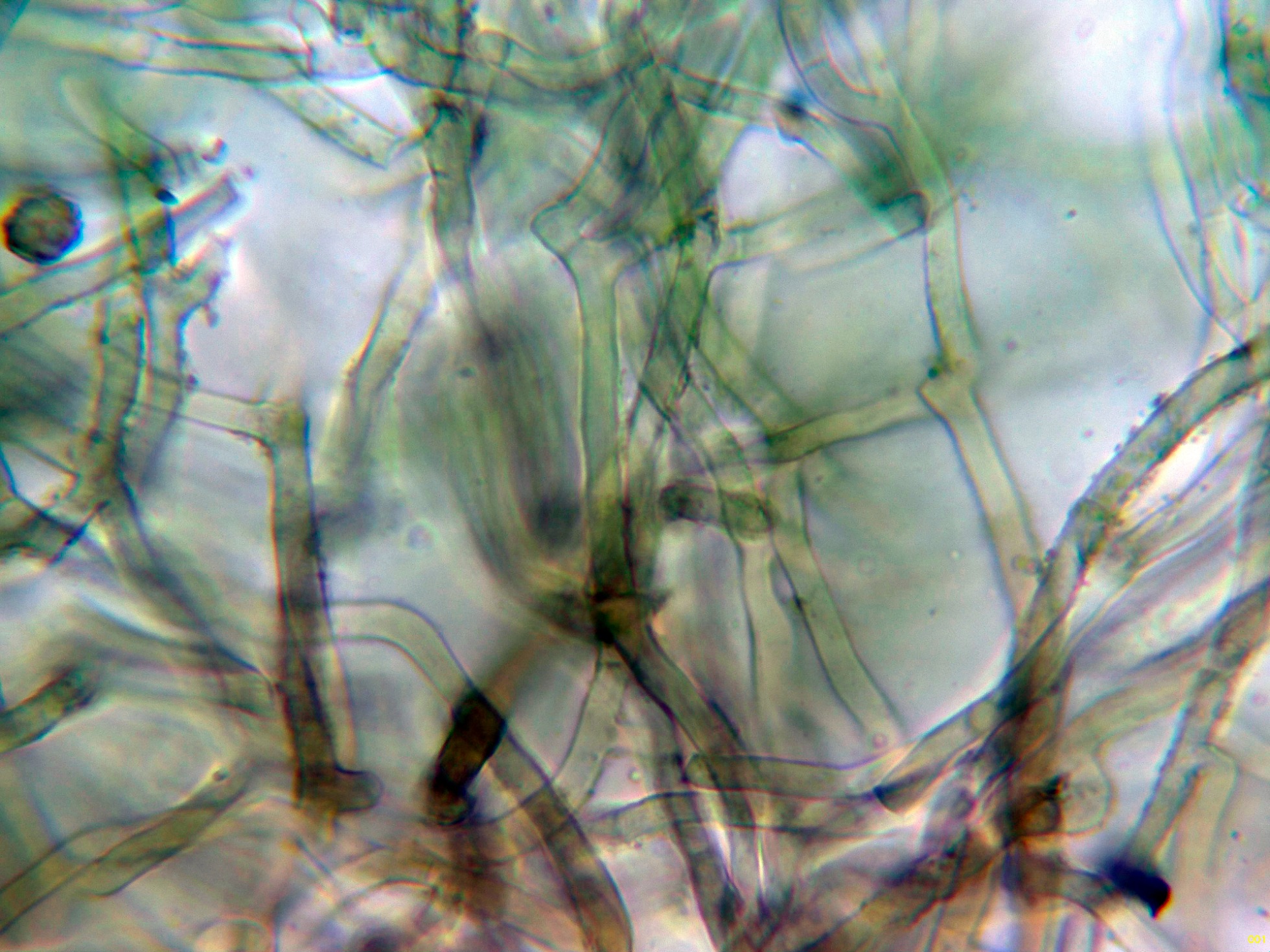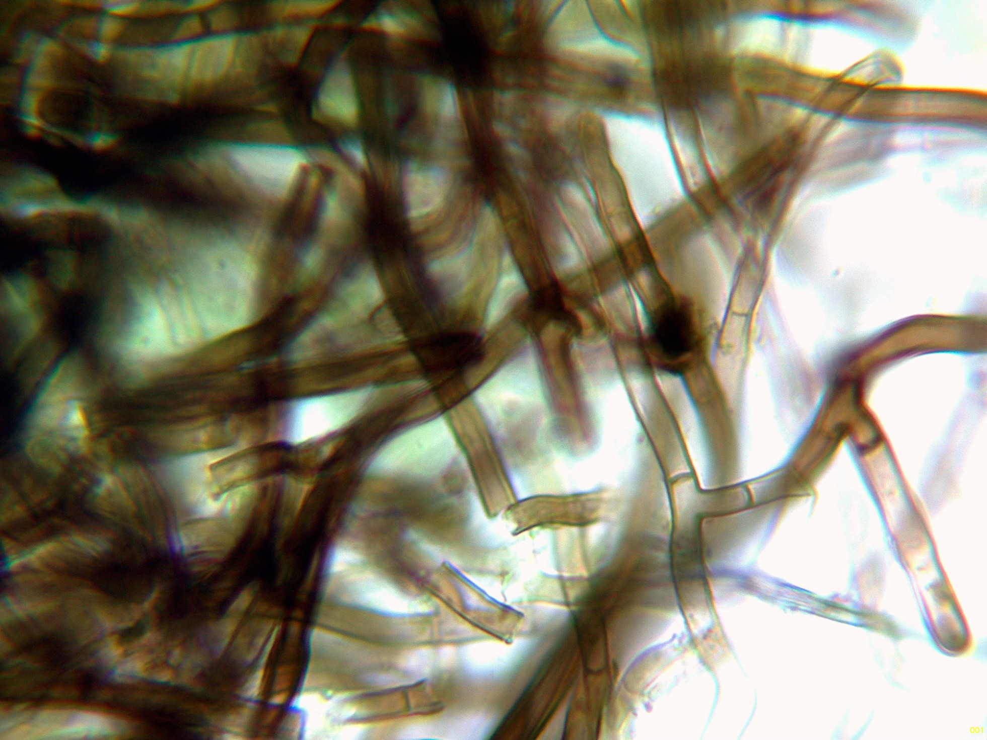 Las hifas subiculares en agua, al igual que las hifas subhimeniales sin fíbulas:
