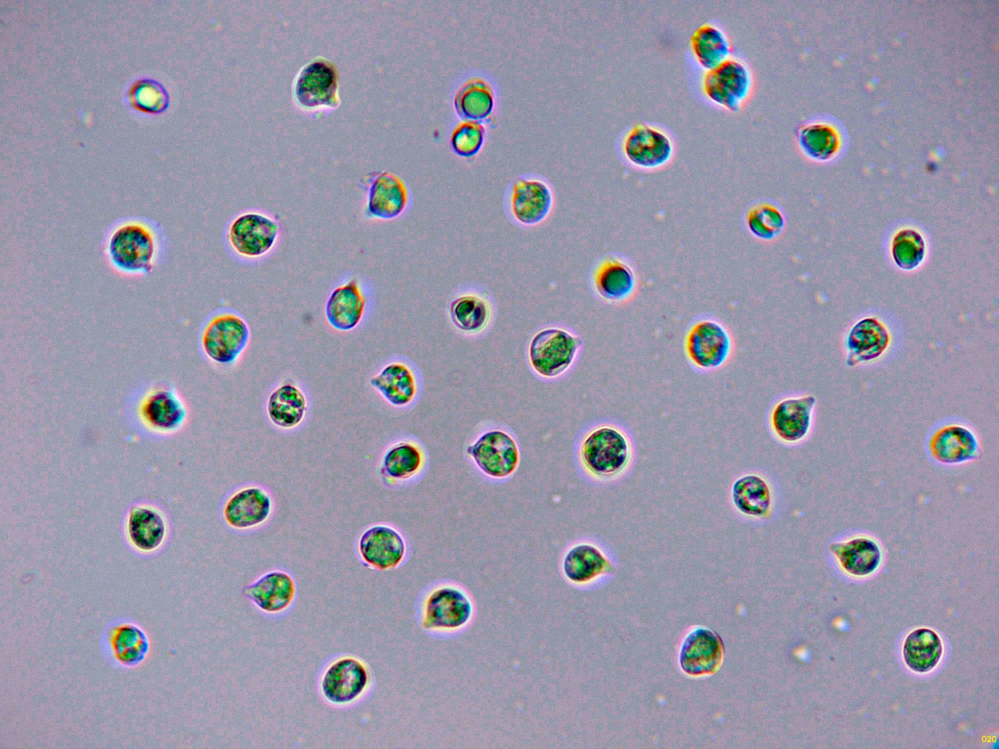 En la recogida de muestras de Peralejos de las Truchas no pude obtener esporas por medio de la esporulación natural por lo que me tuve que conformar con medir las esporas libres, estas esporas con unas medidas de: