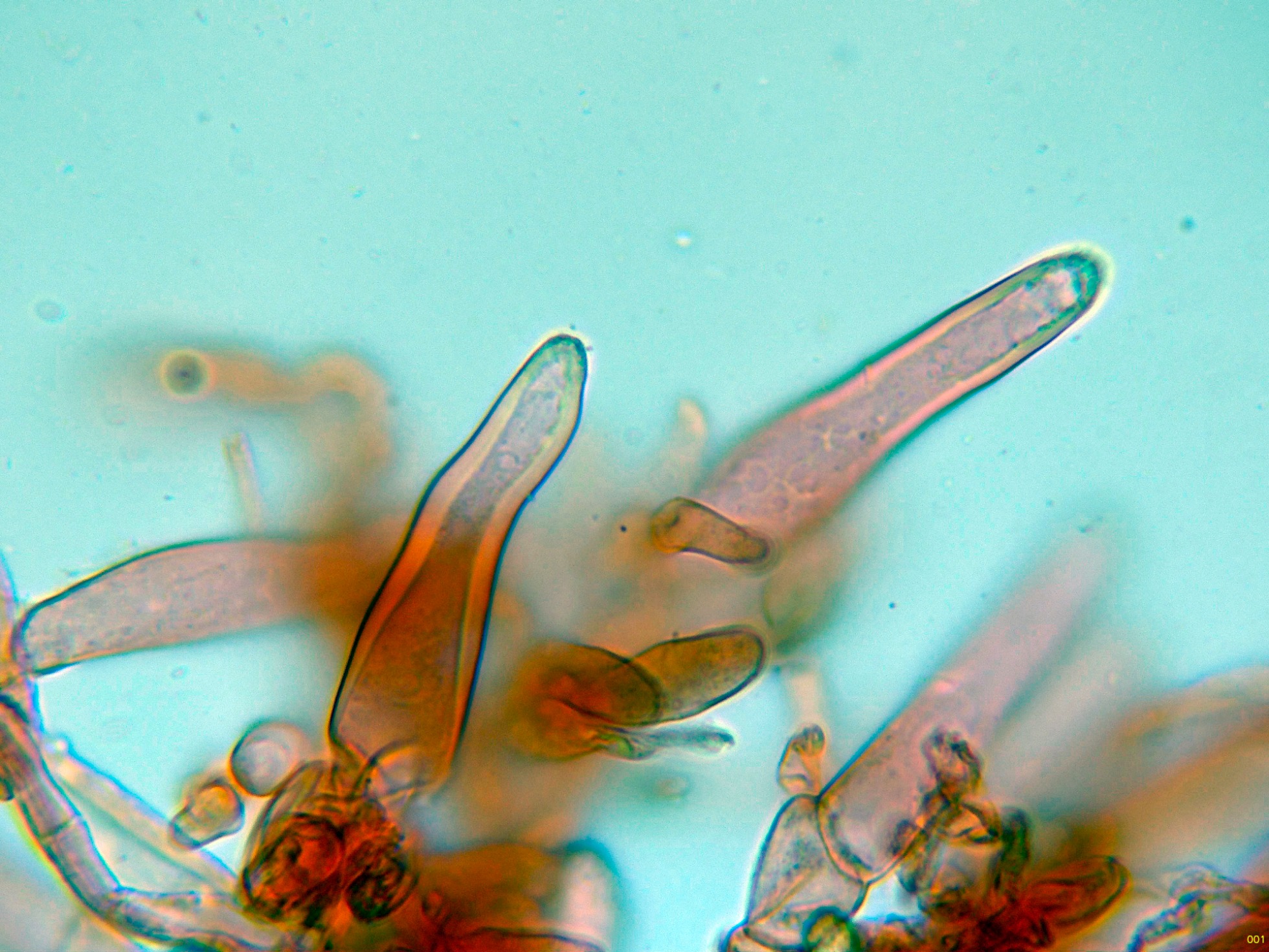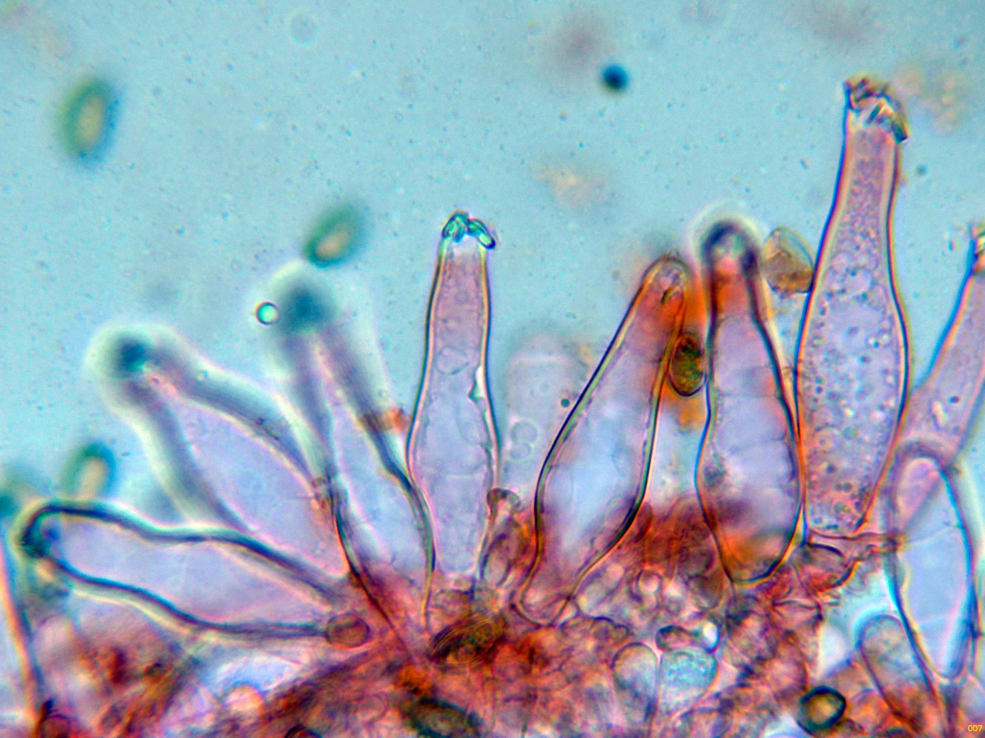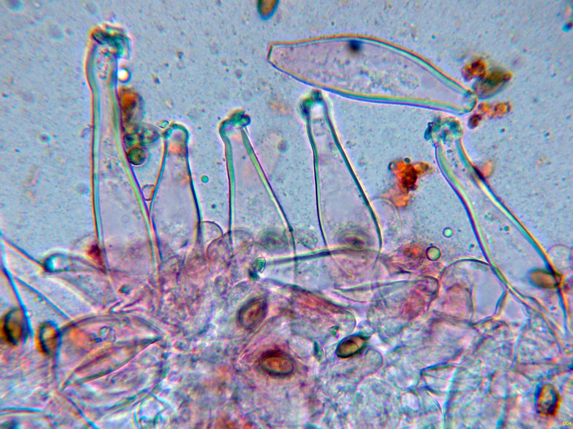 Los caulocistidios a 600 aumentos: