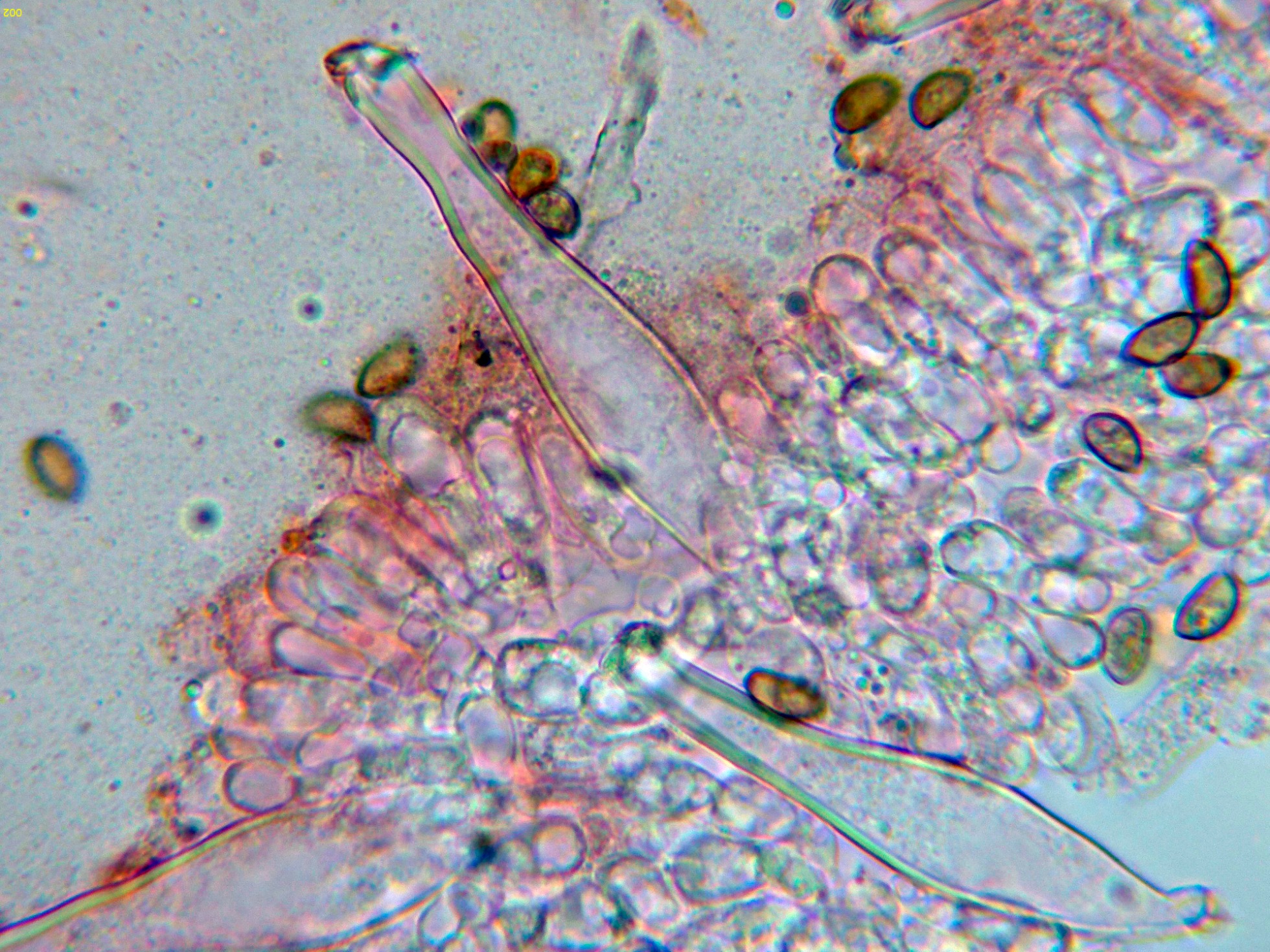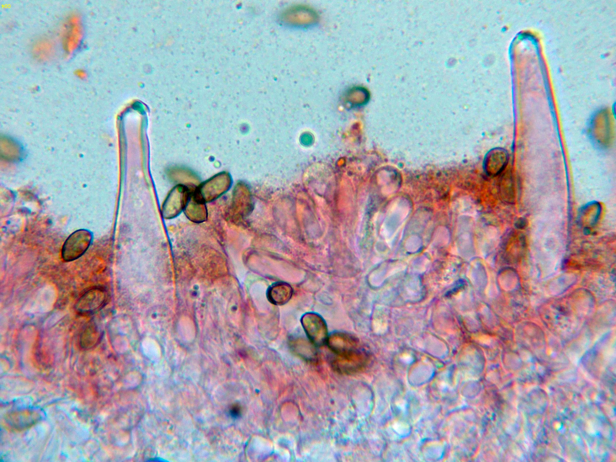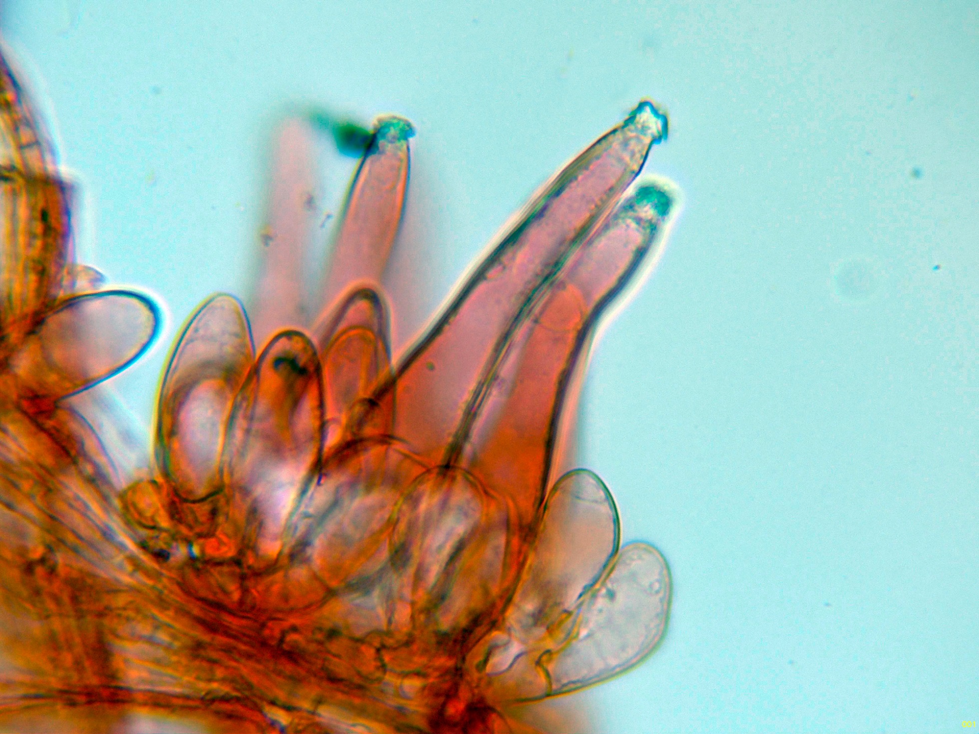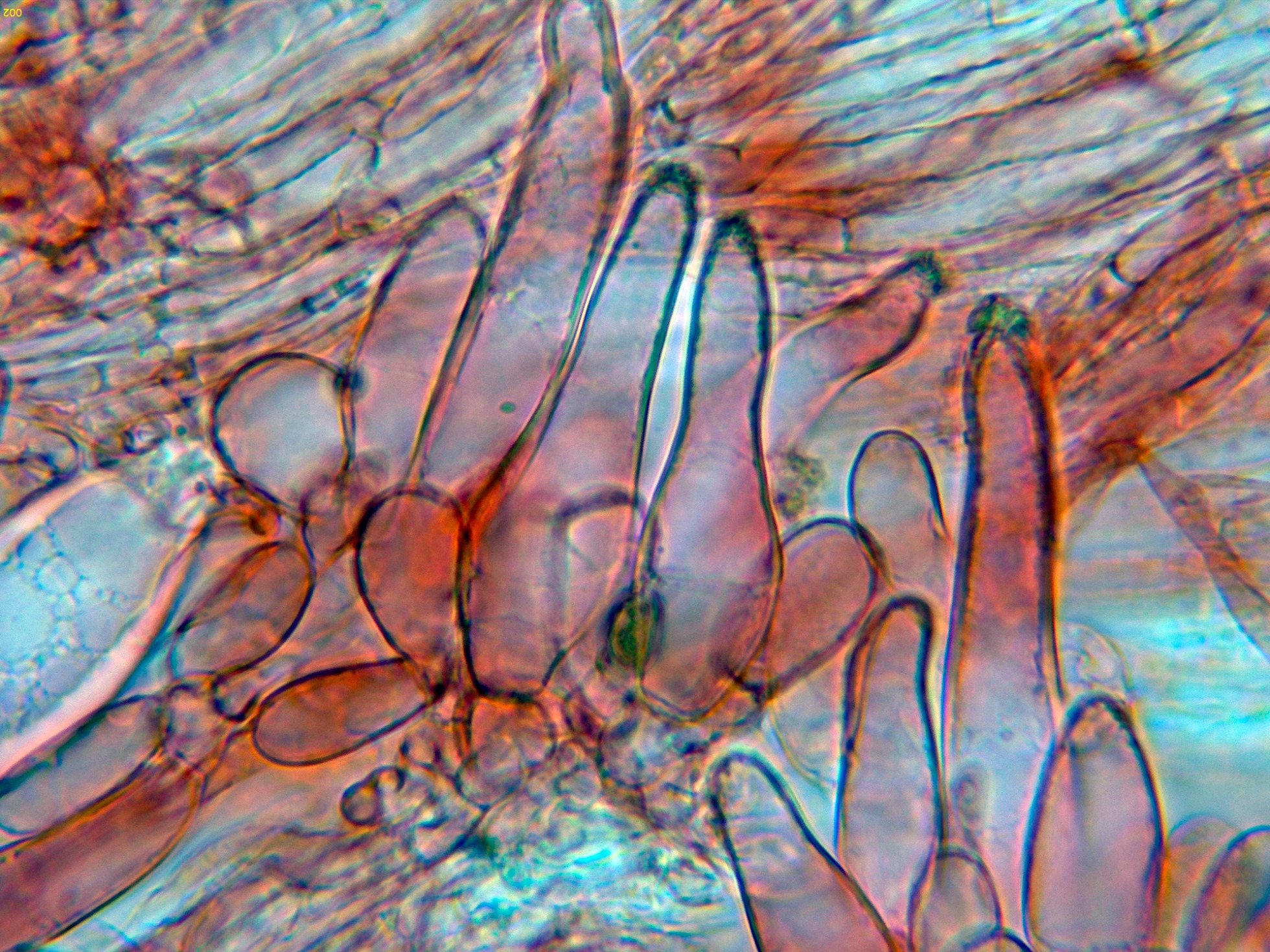 Los caulocistidios a 600 aumentos:
