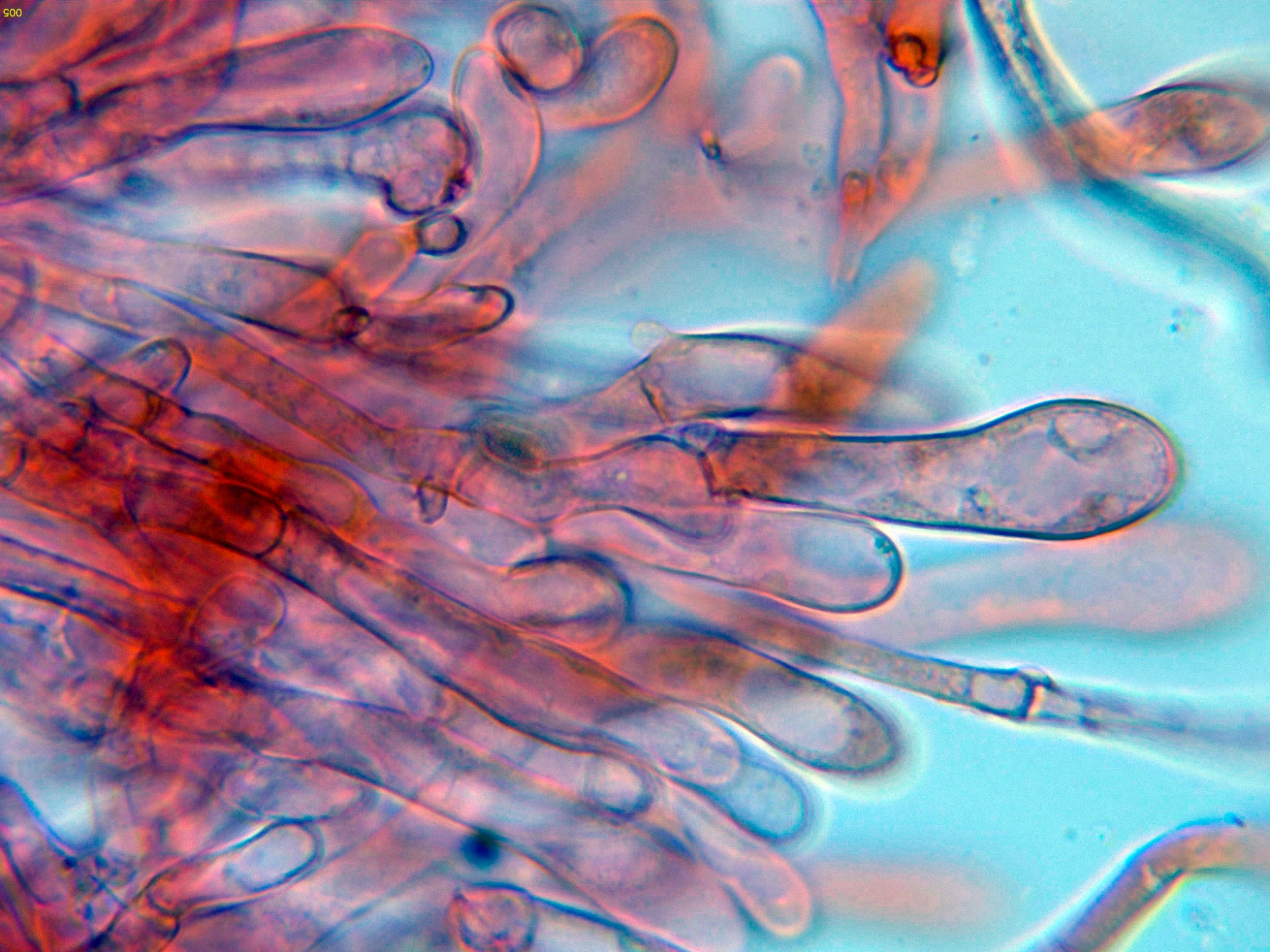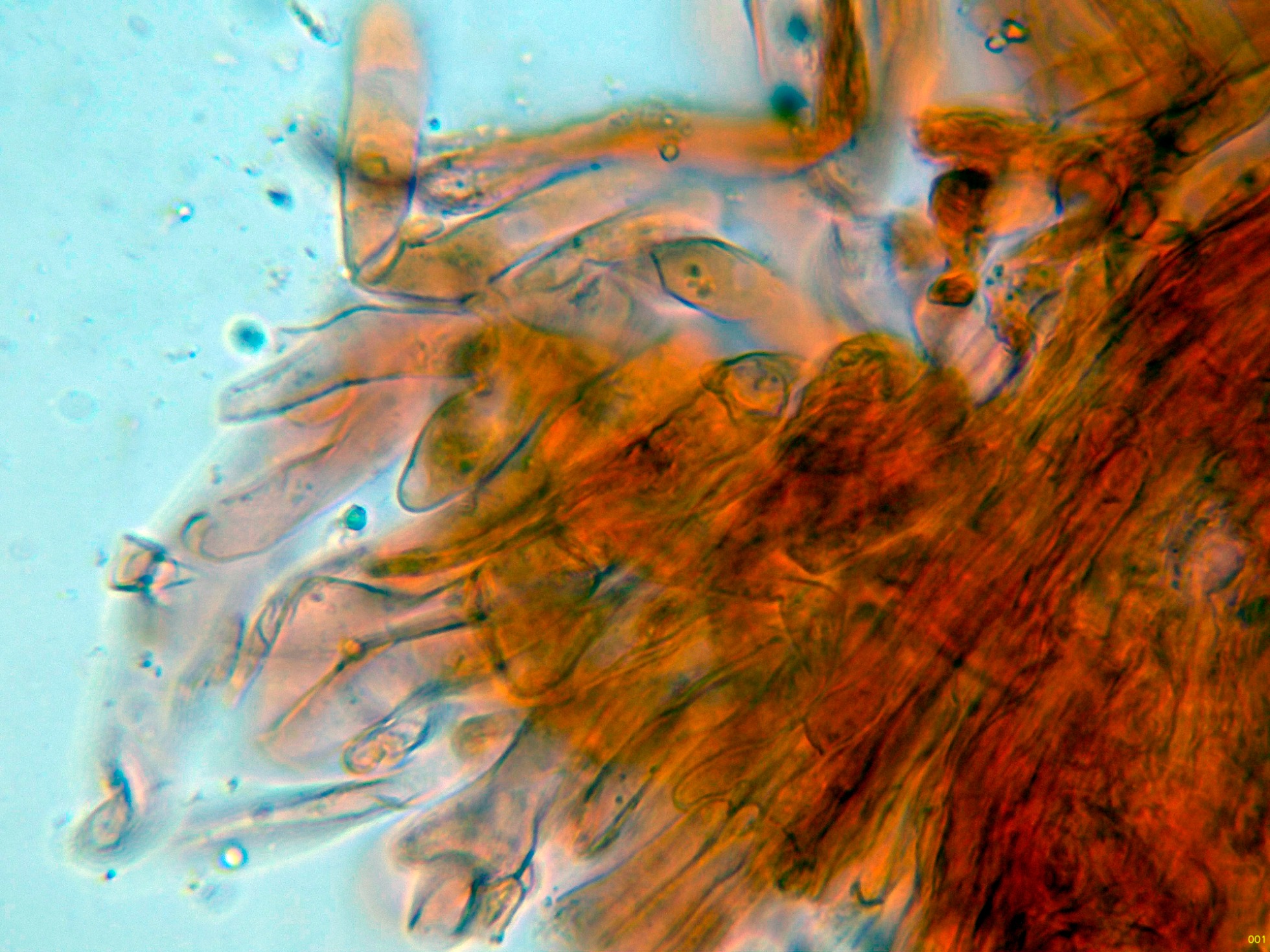 En la parte media del pie los caulocistidios eran ya mas bien escasos:
