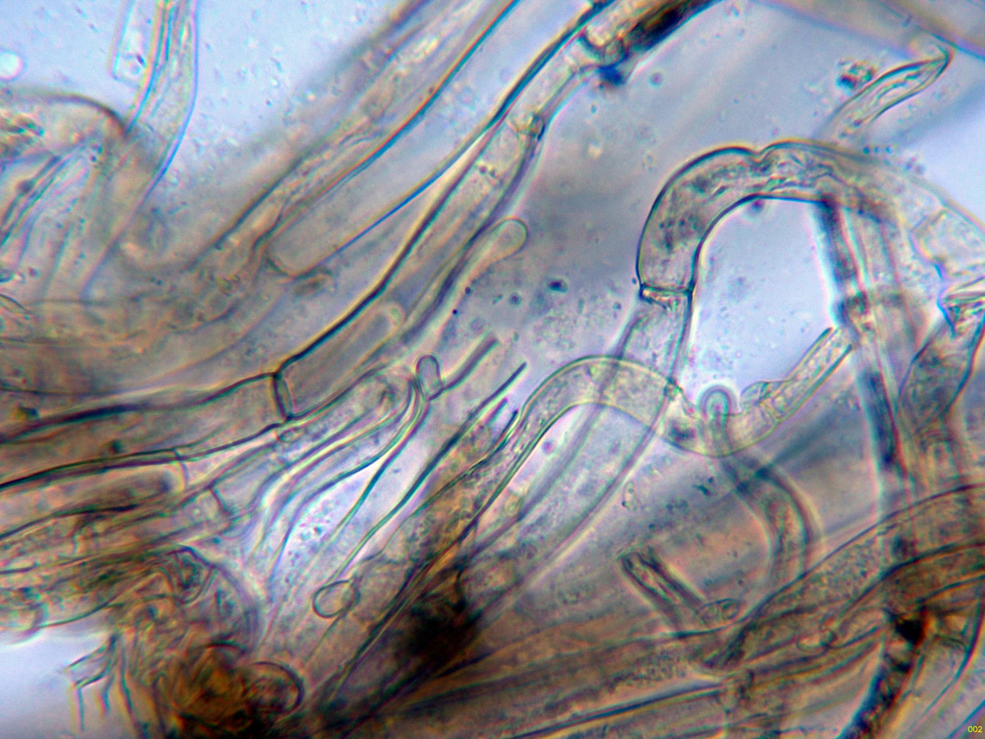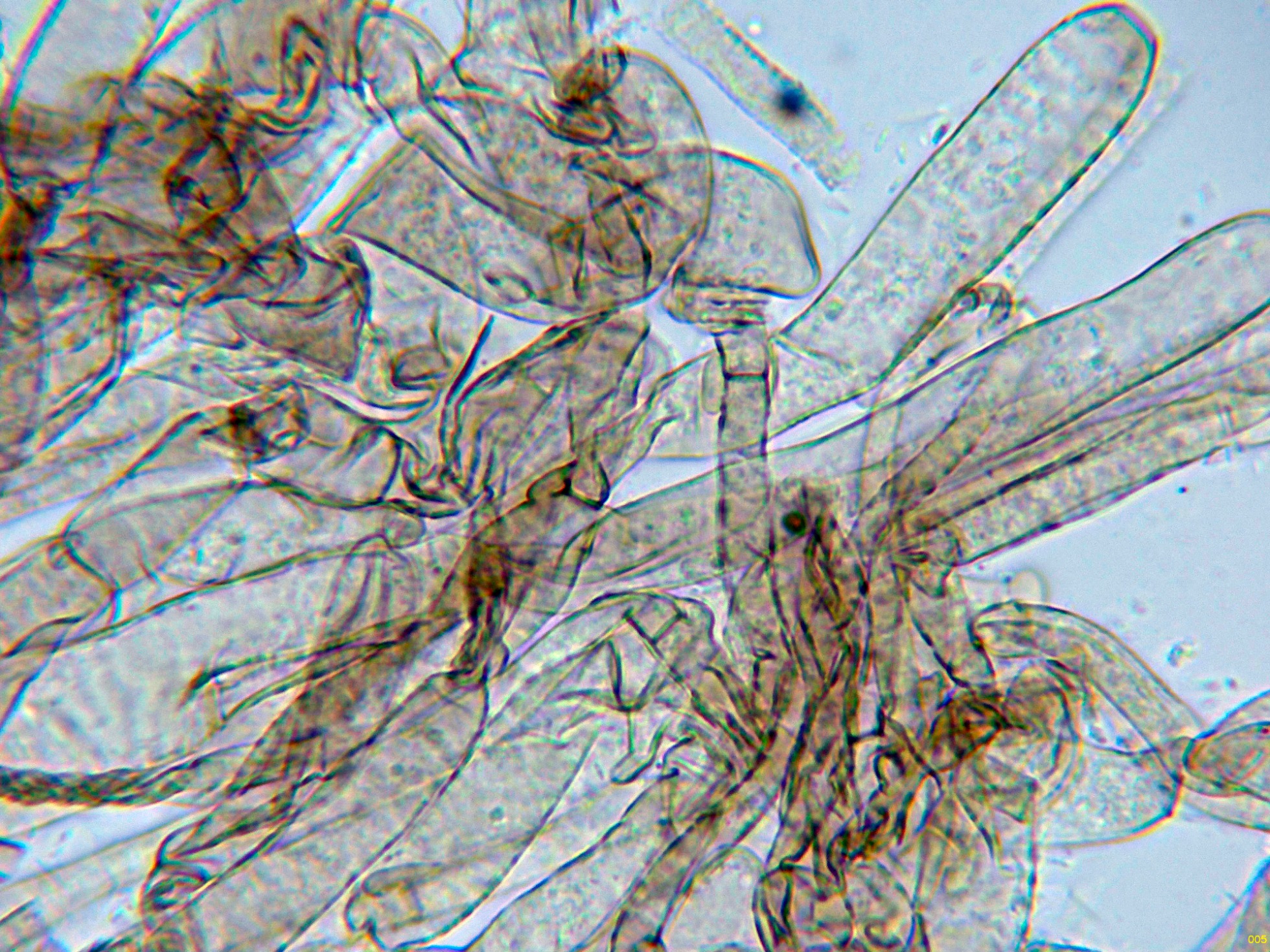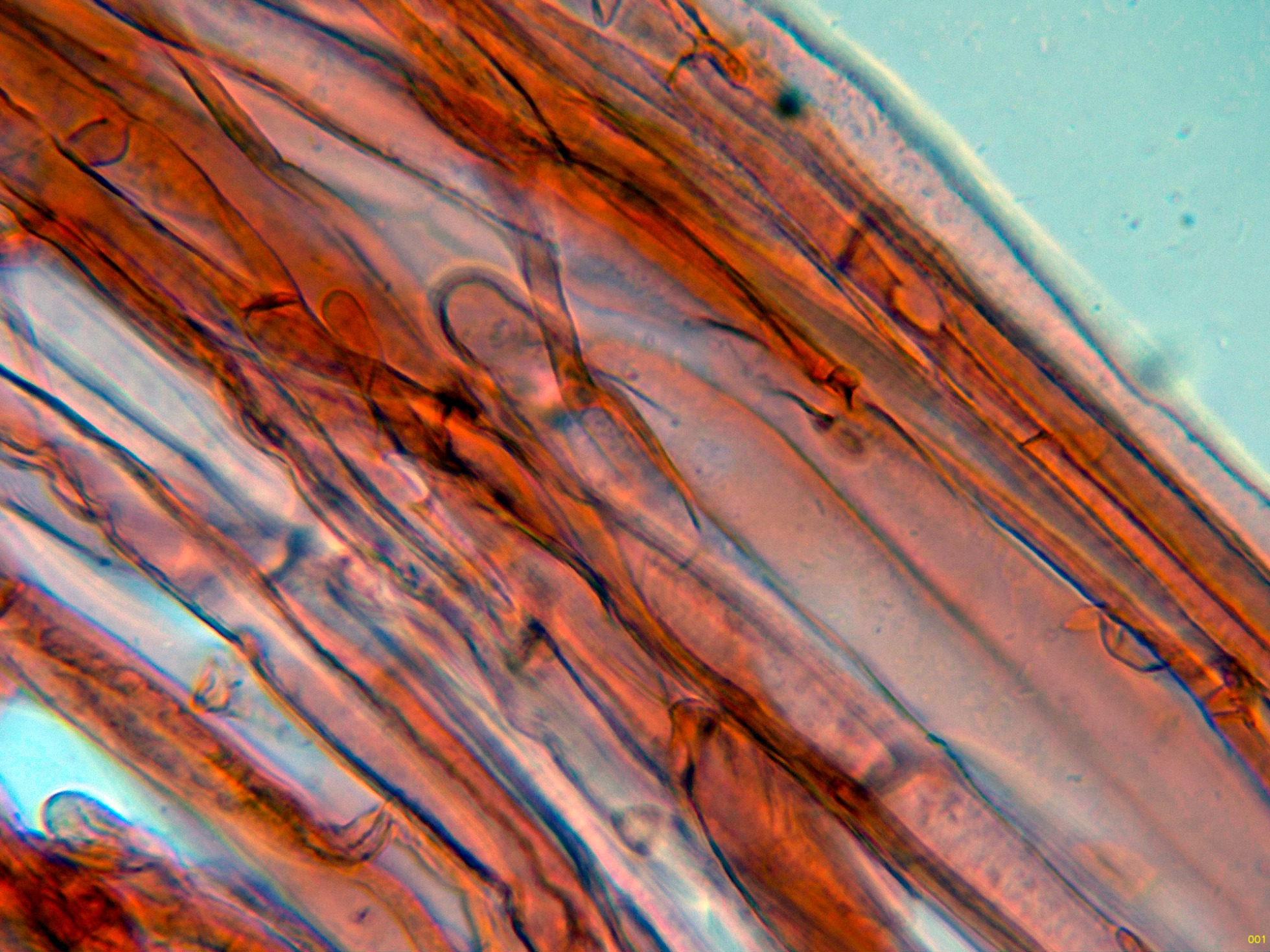 Hifas de la parte media del pie sin caulocistidios: