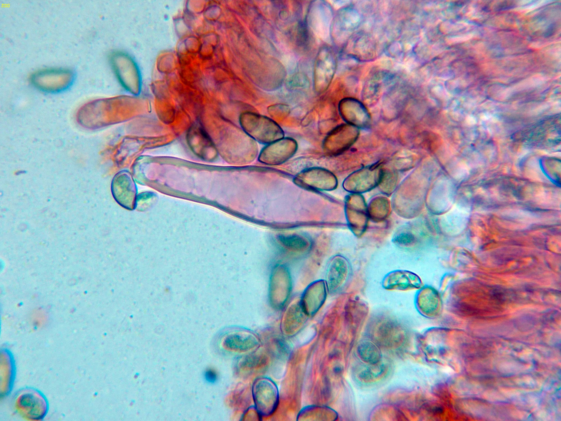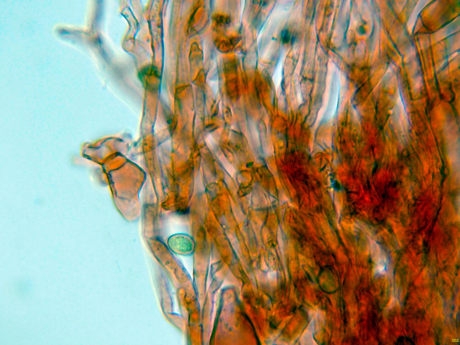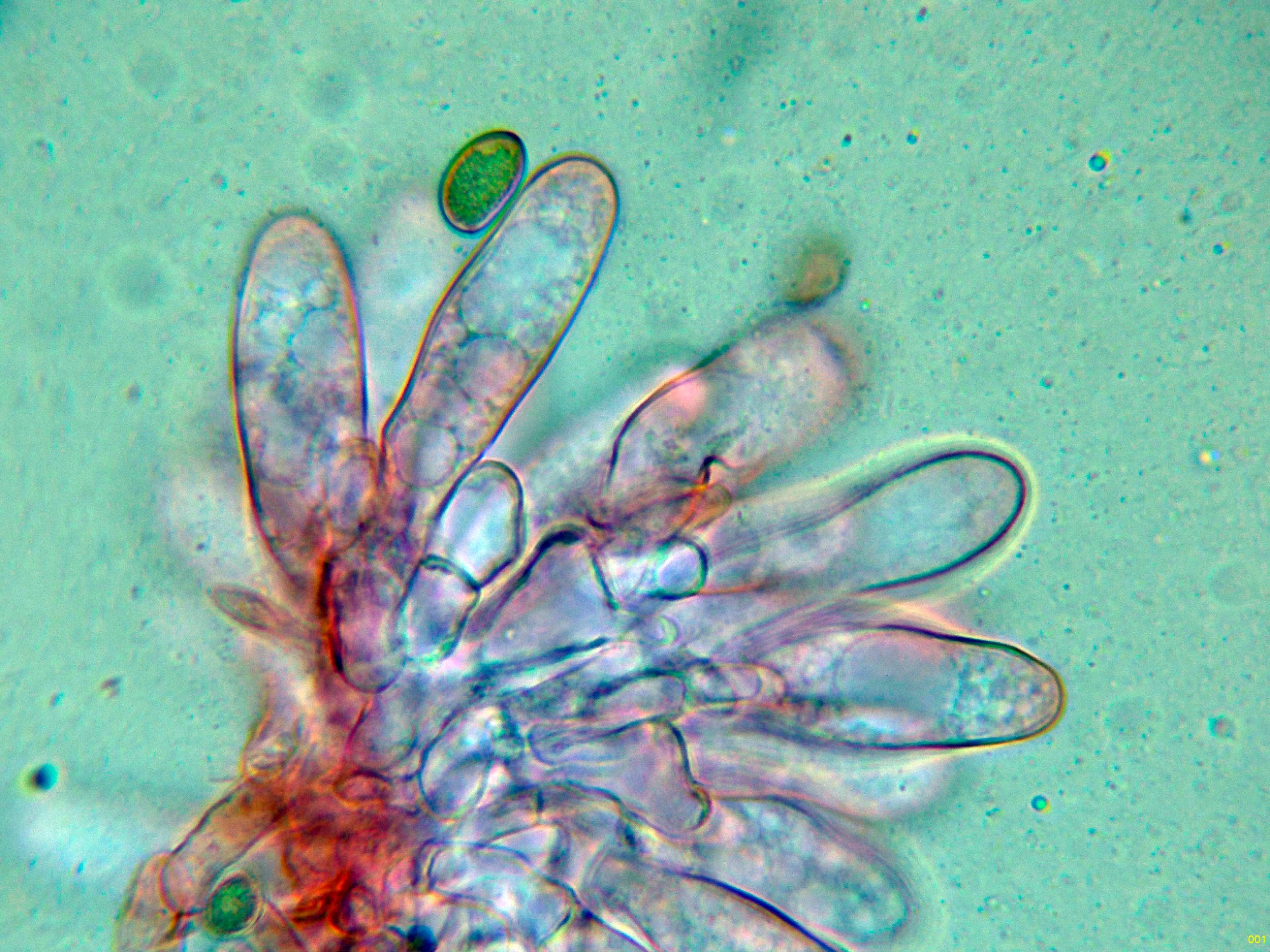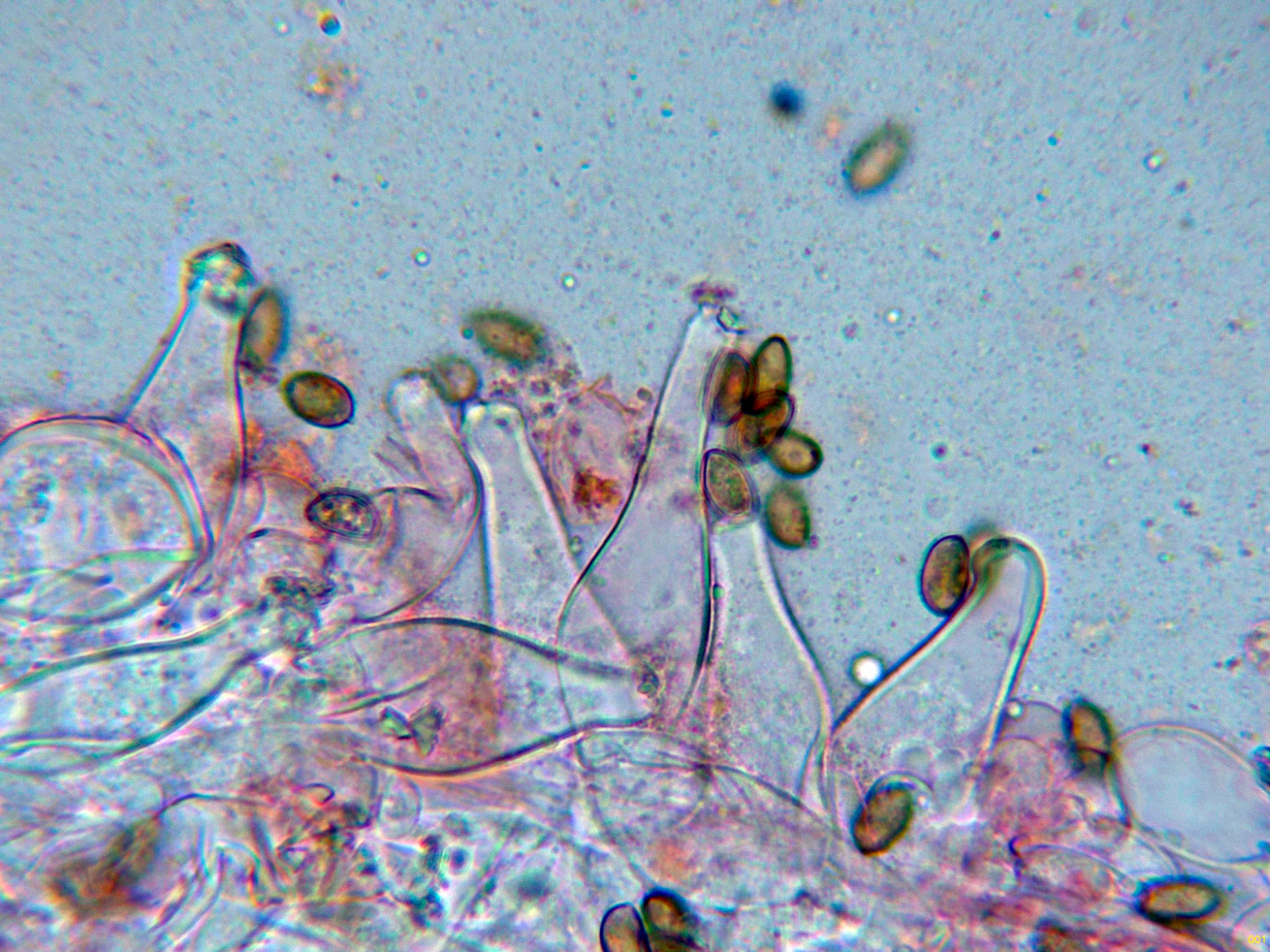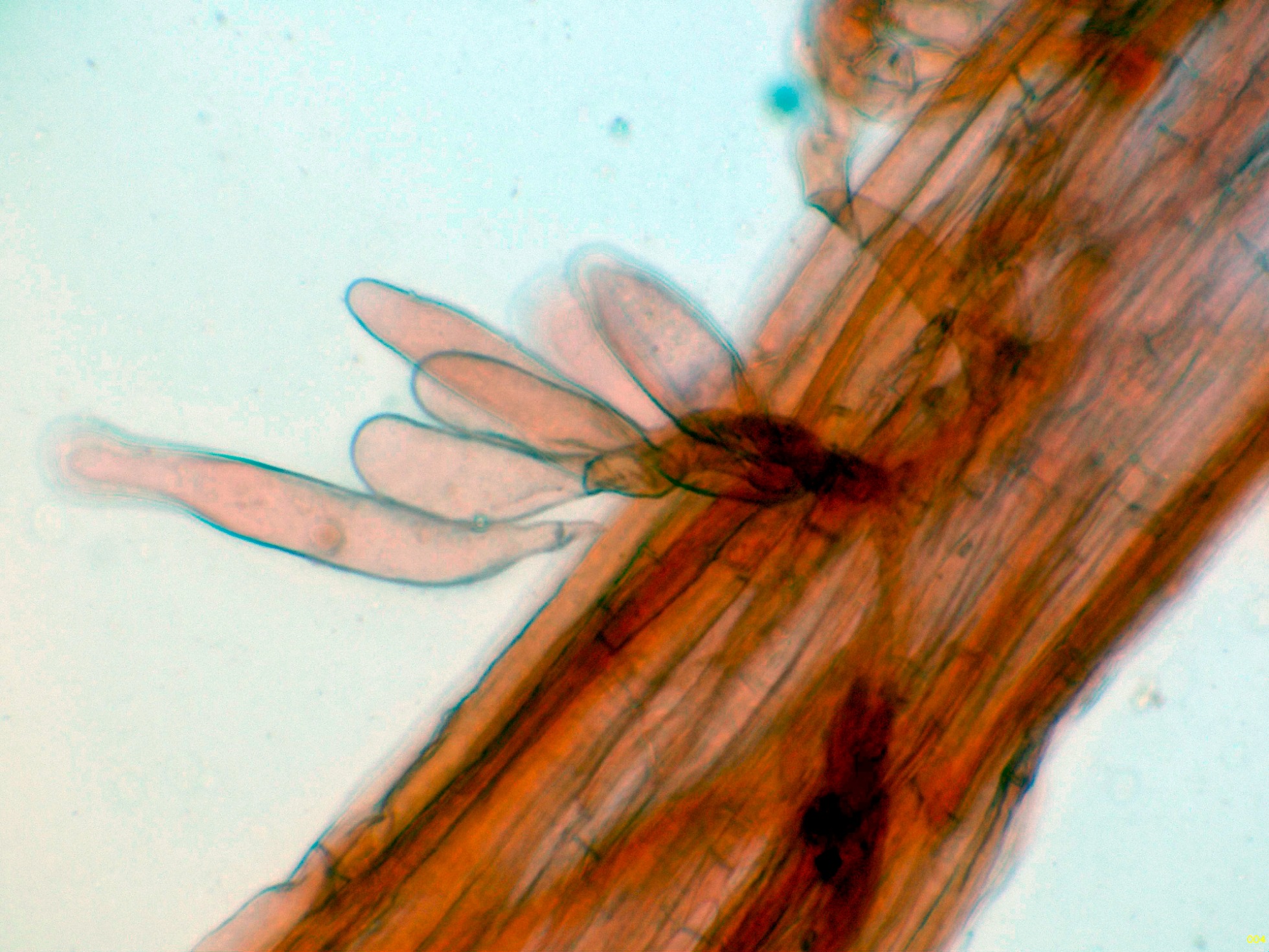 Caulocistidios solo en la parte alta del pie, y mas bien escasos: