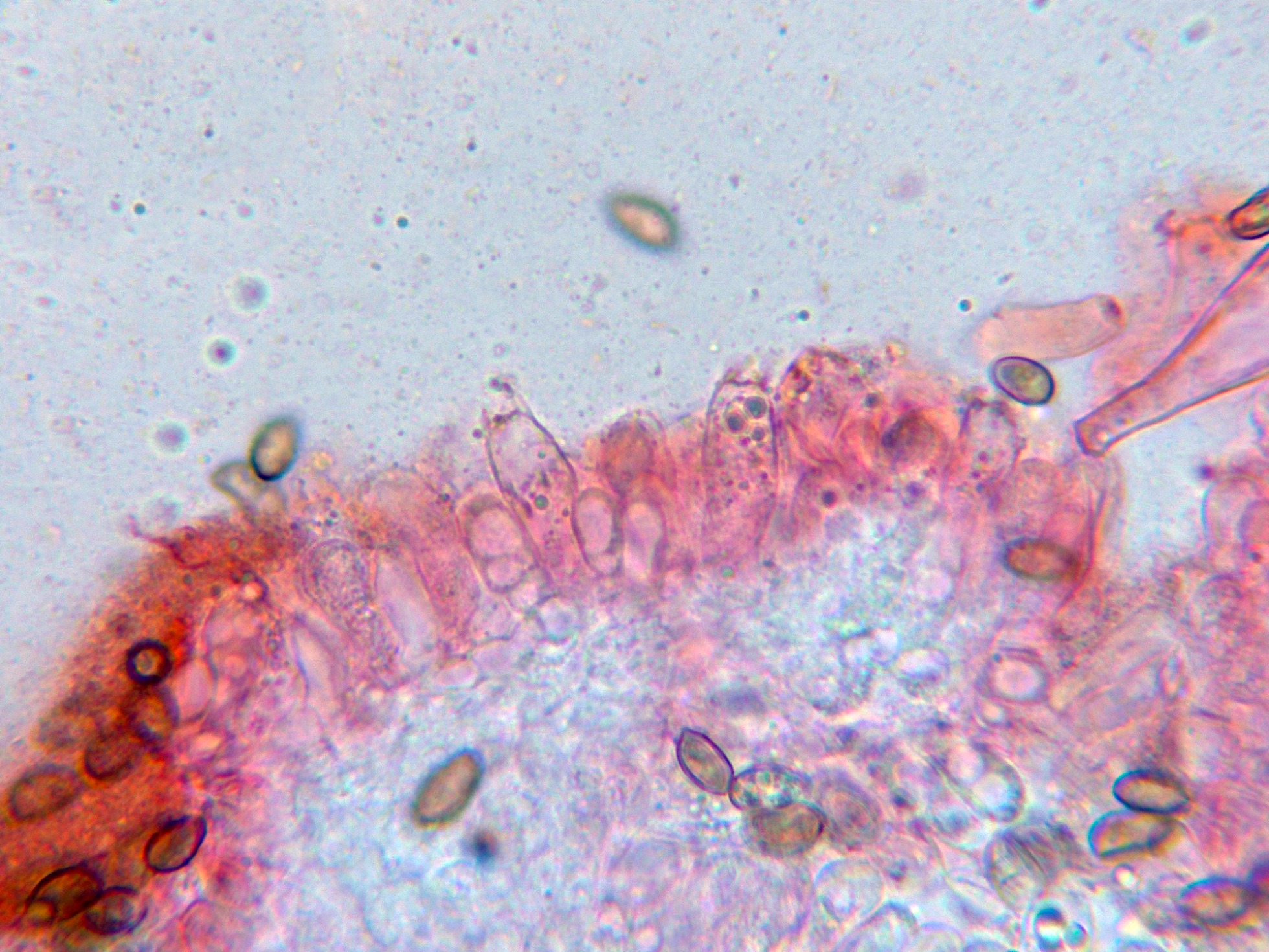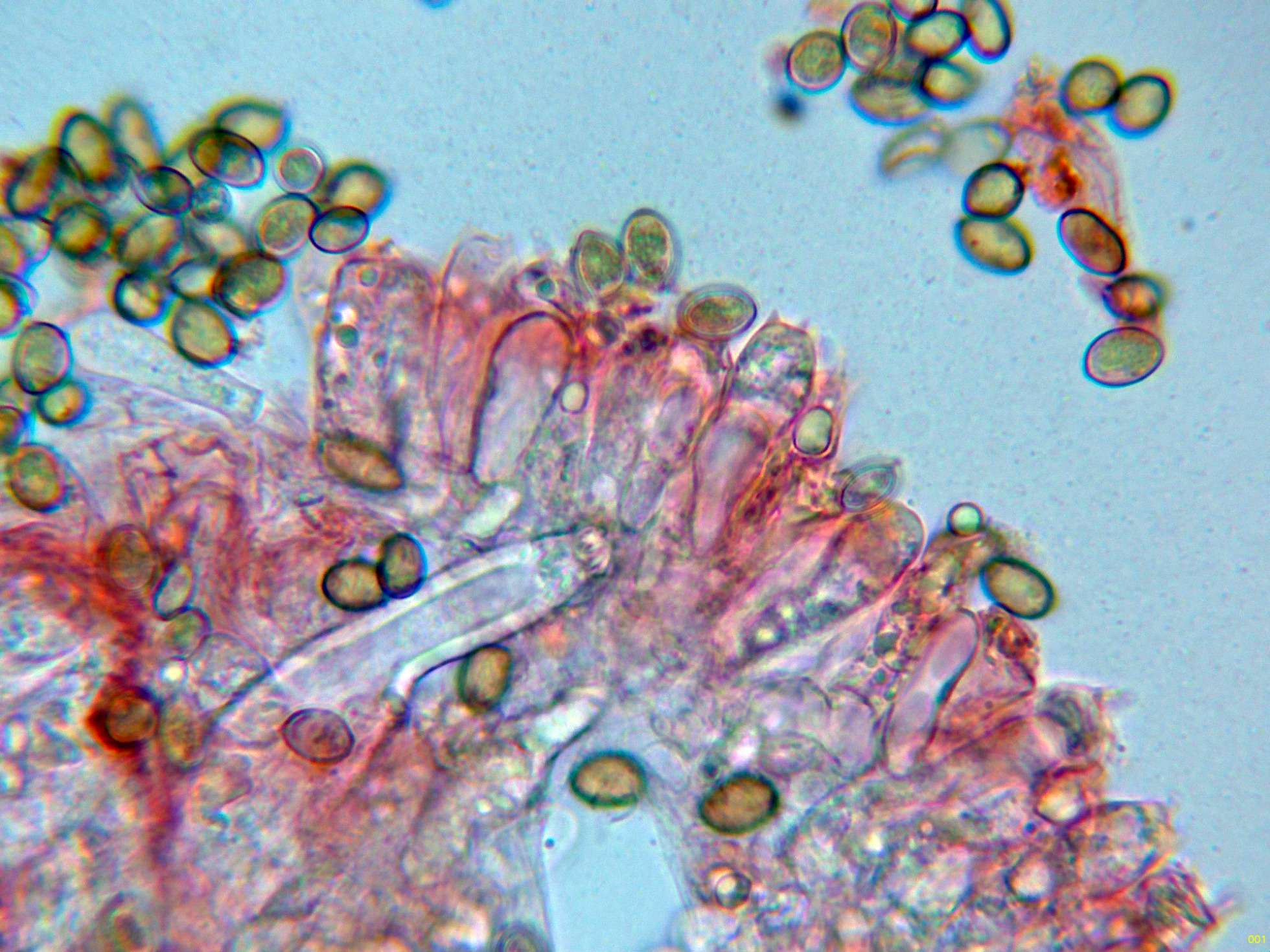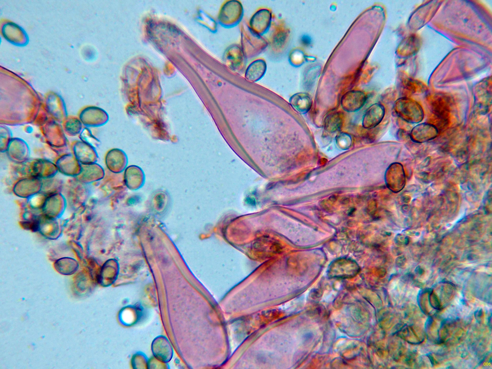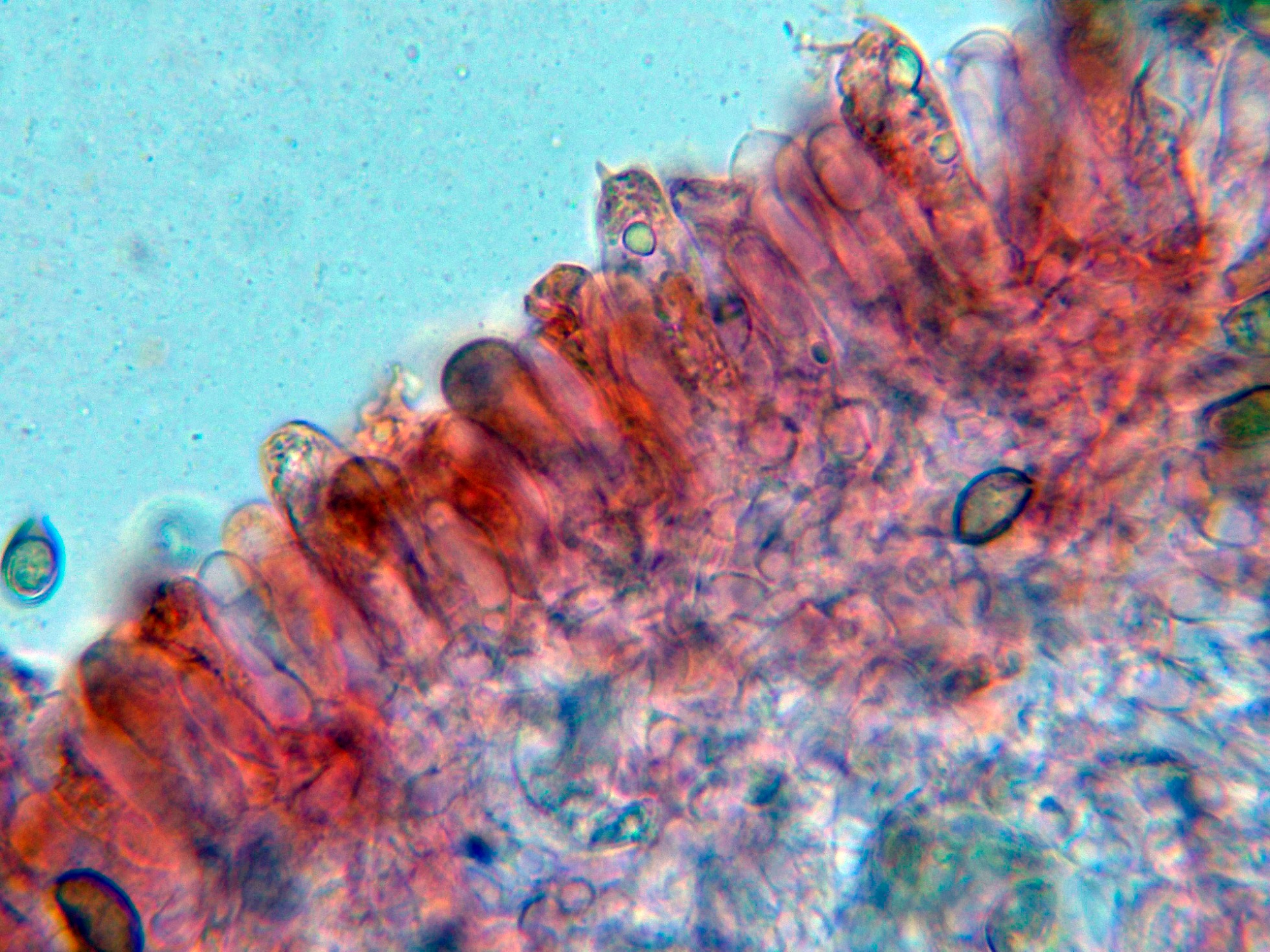 Queilocistidios muy abundantes que dejan prácticamente estéril la arista laminar: