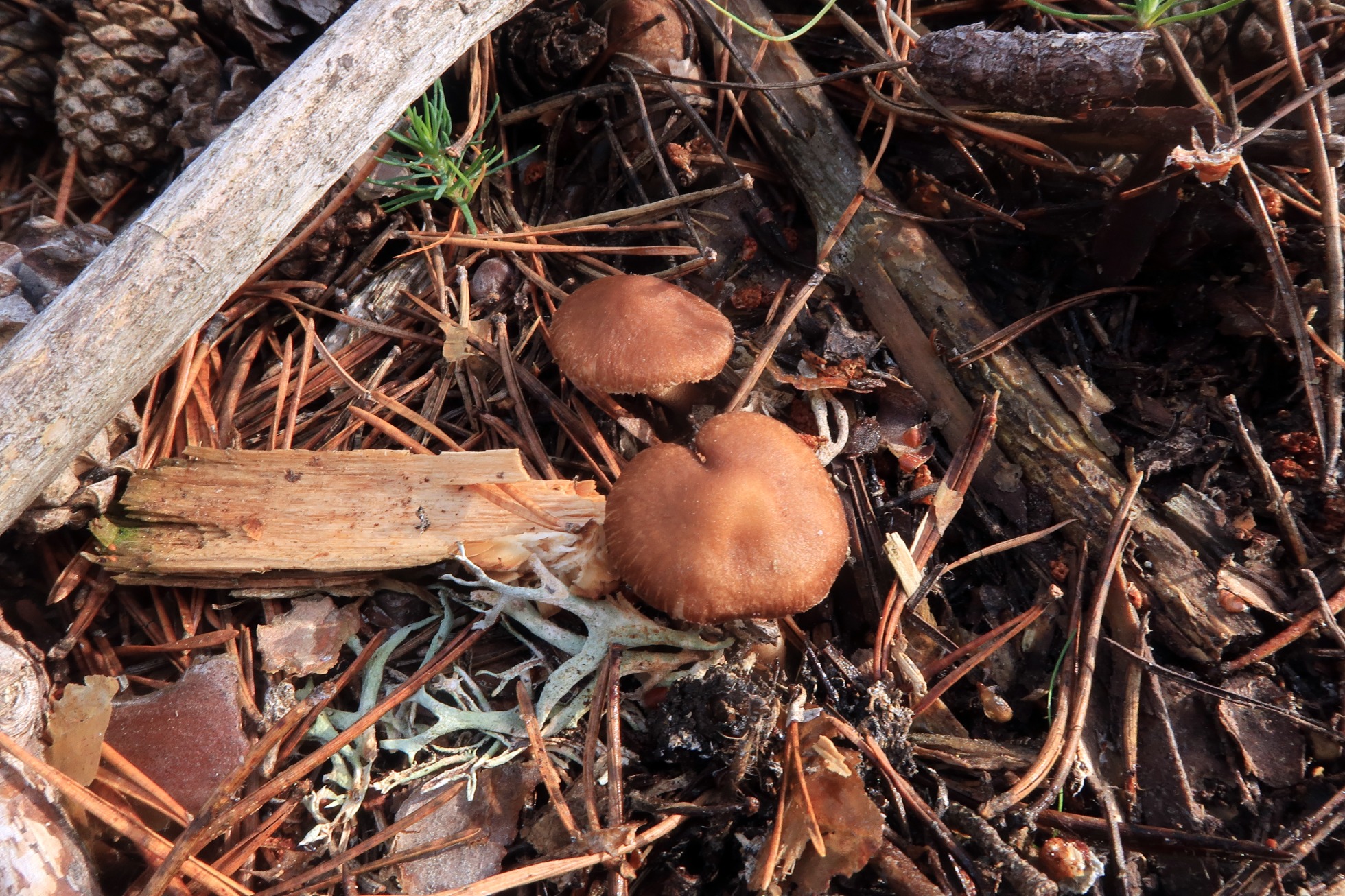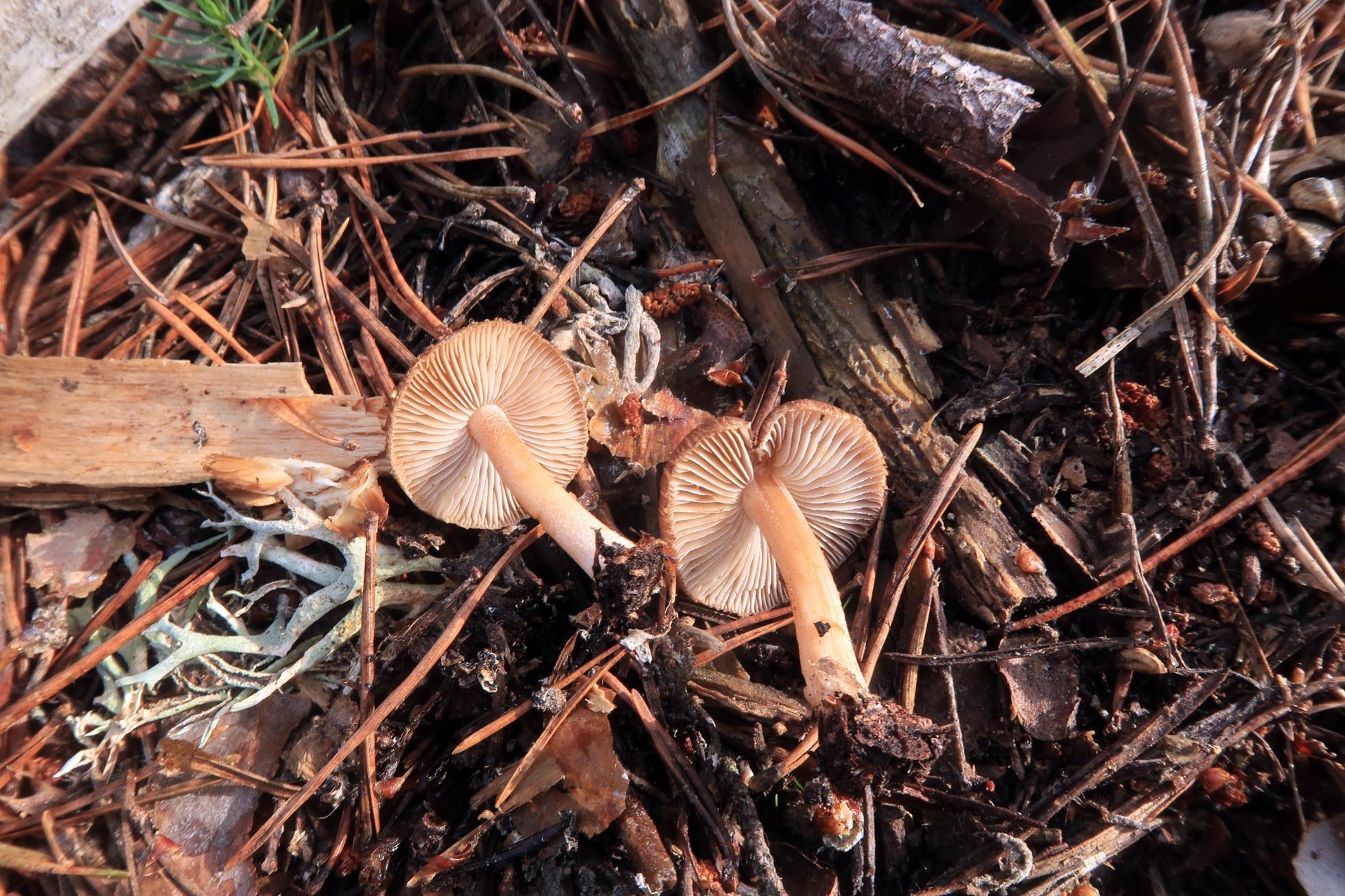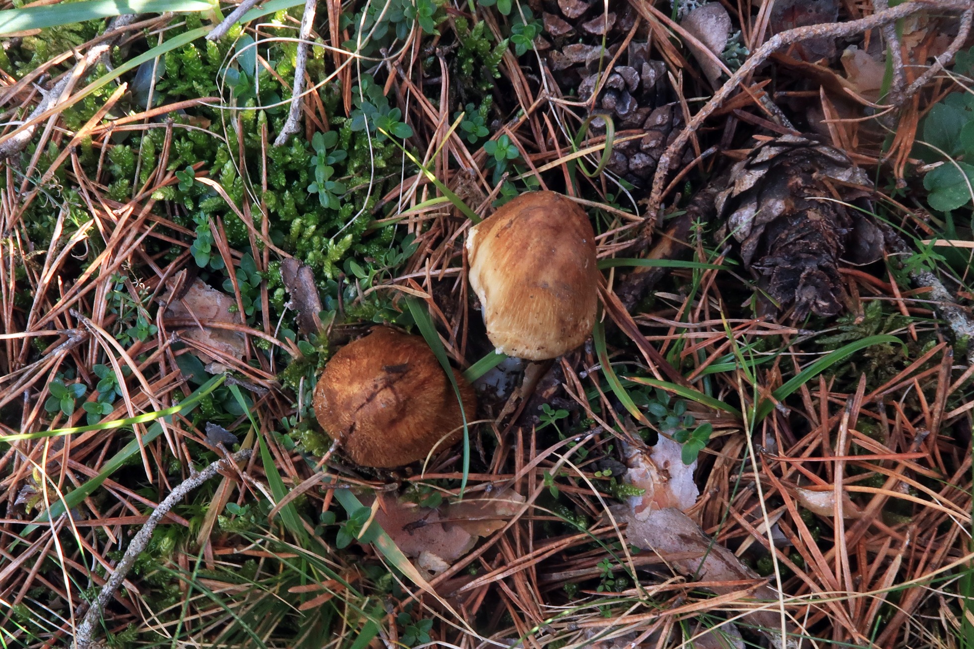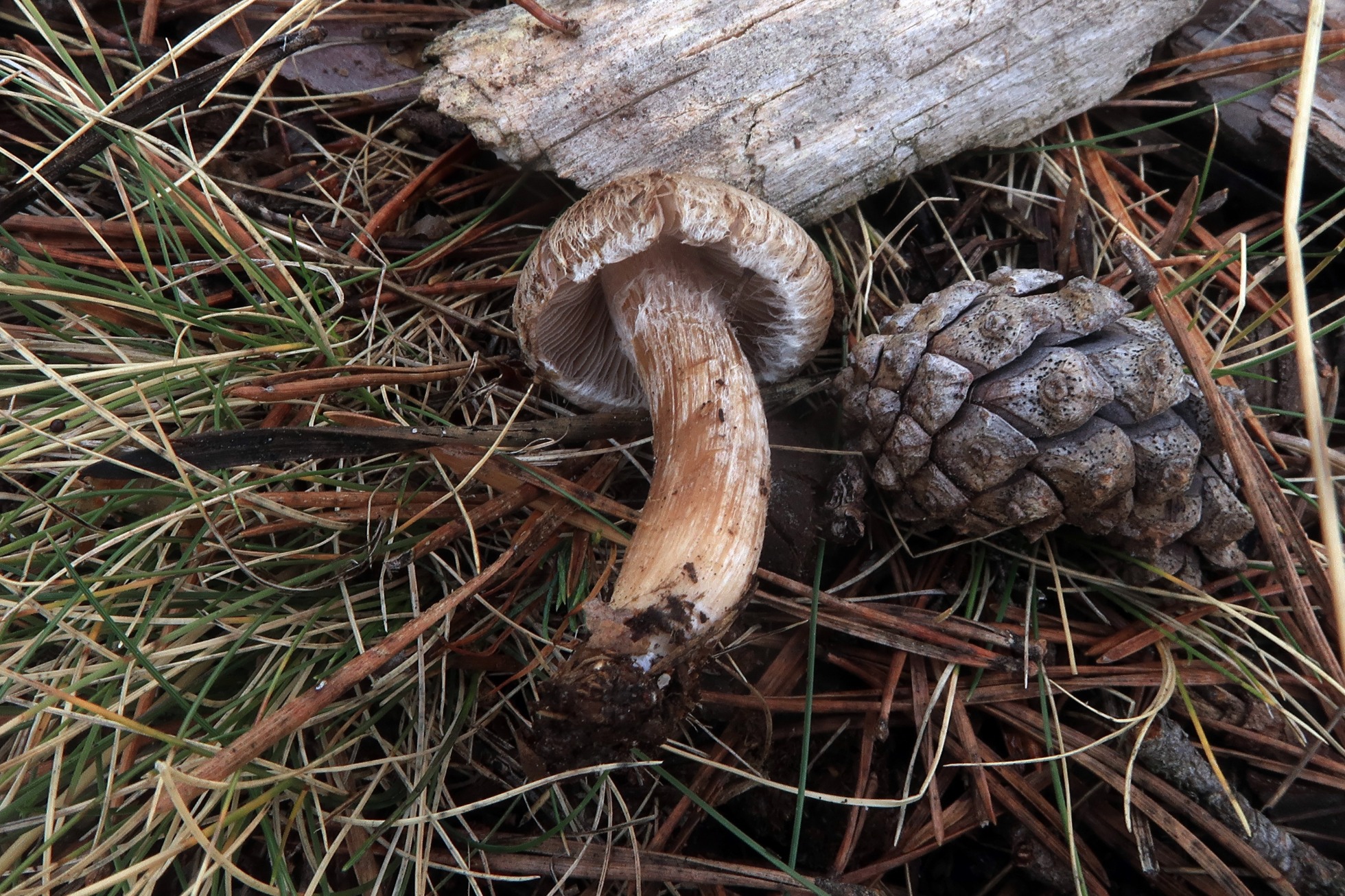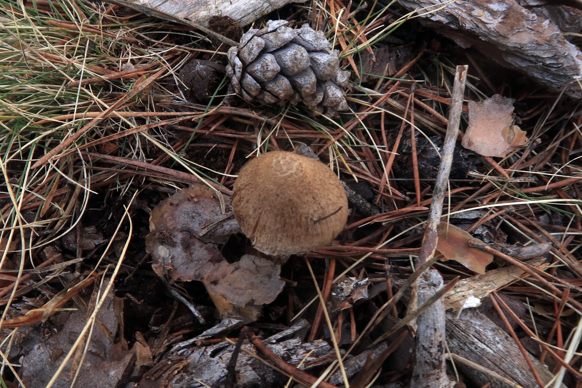 Otro Inocybe, este con el sombrero escamosillo, uno de los más abundantes bajo pinos, la Inocybe flocculosa.