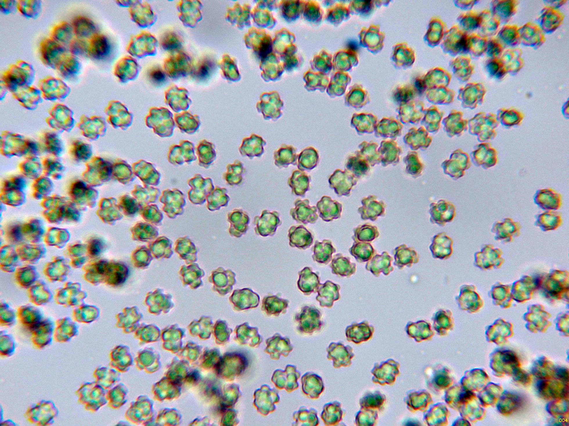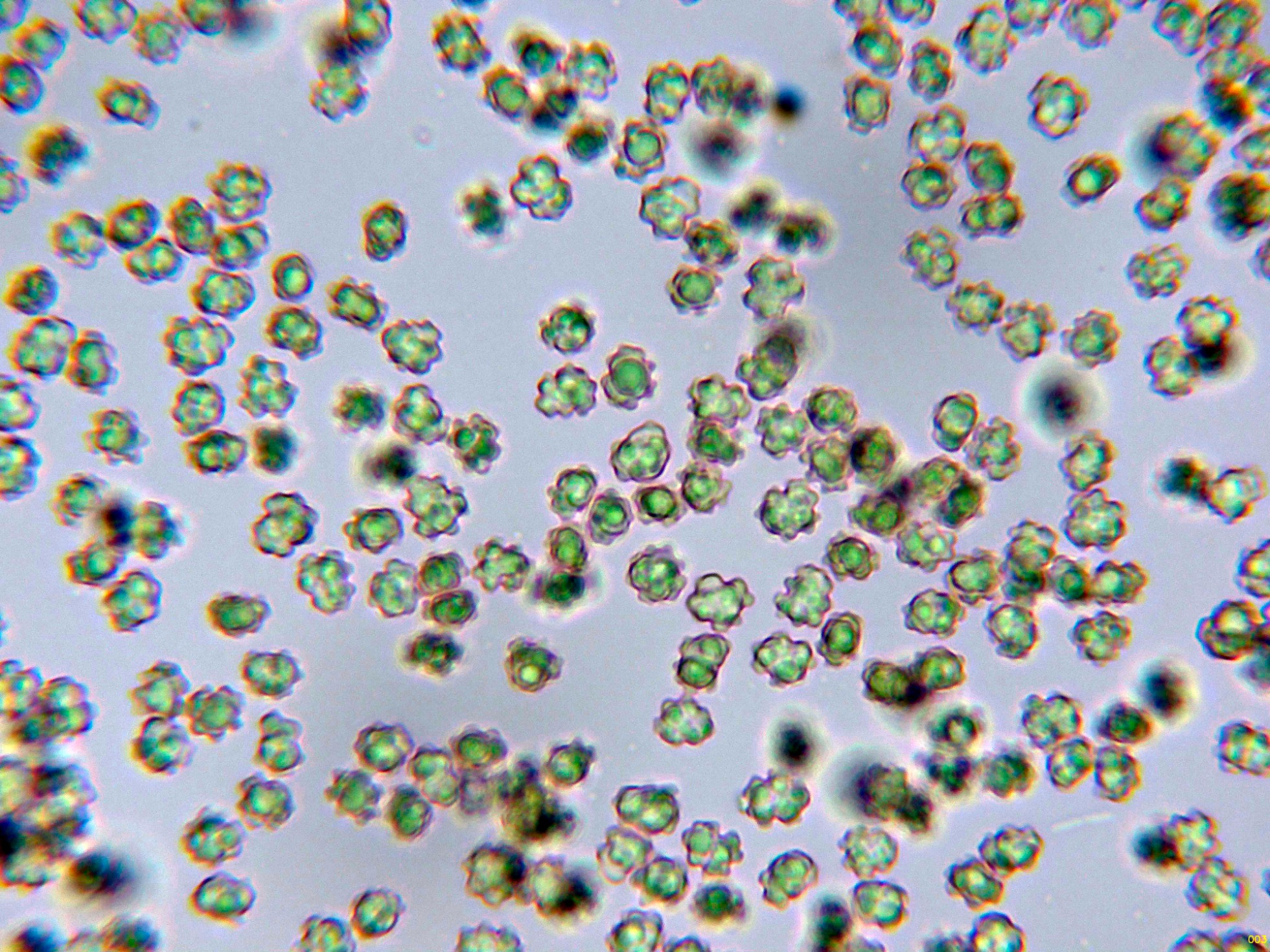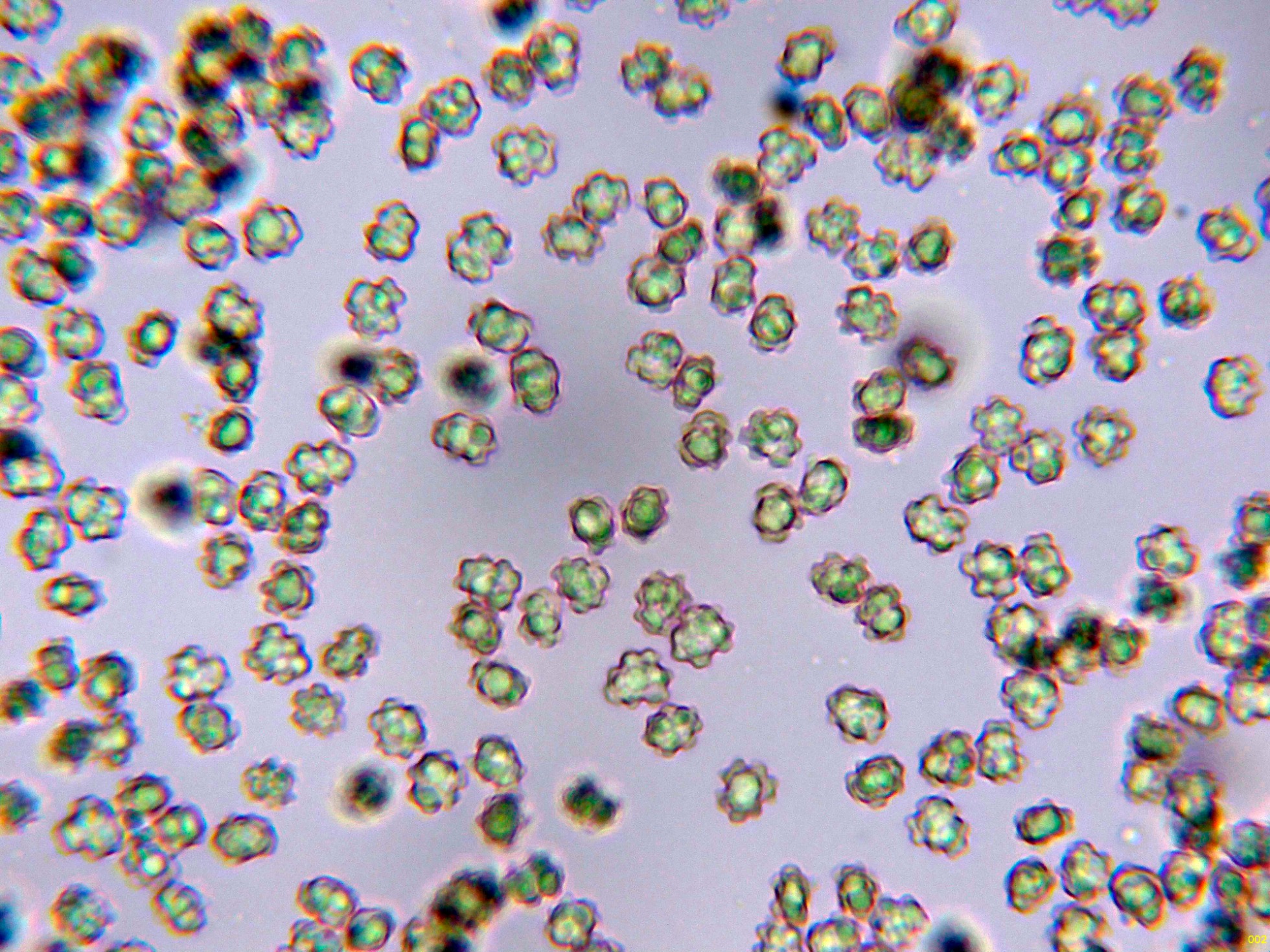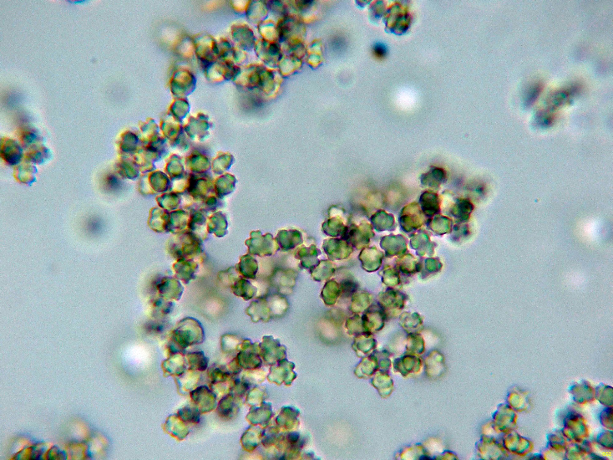 Hifas de la suprapellis en agua, con numerosas hifas terminales con formas redondeadas, fuertemente pigmentadas: