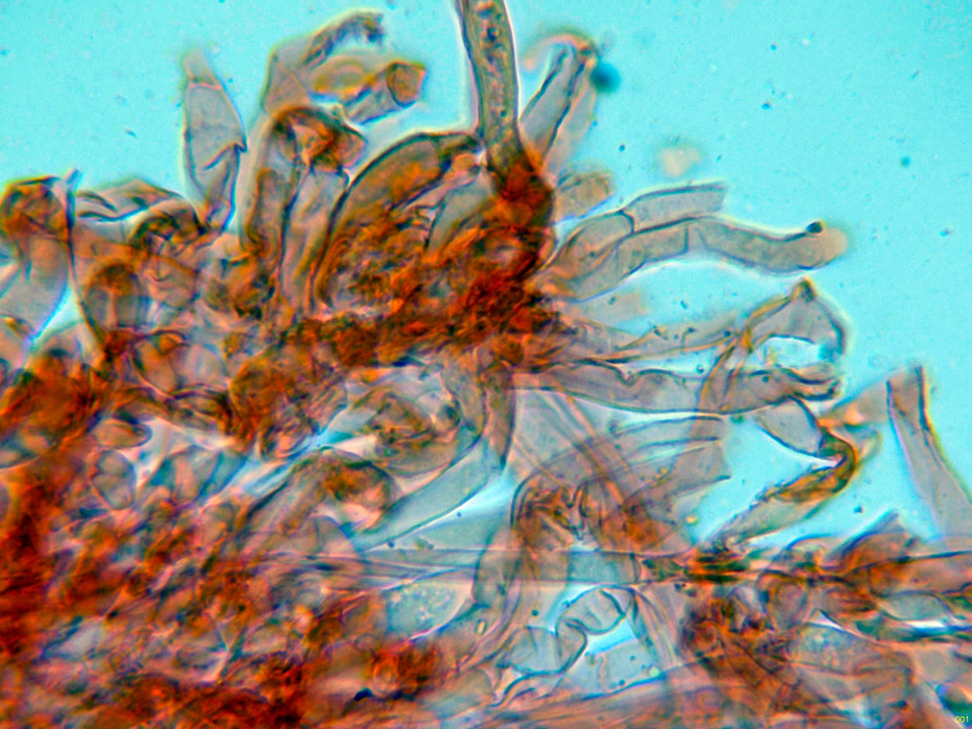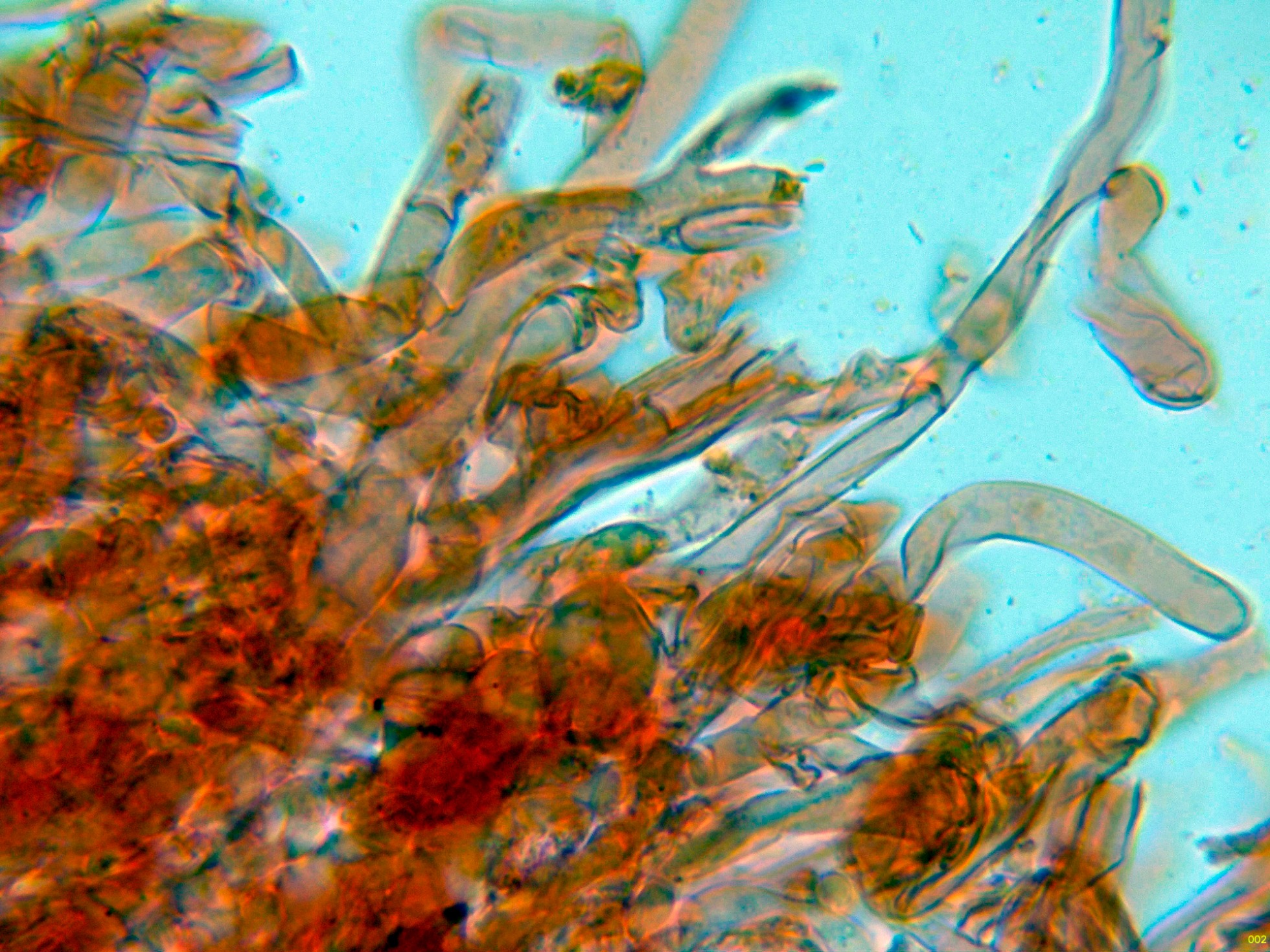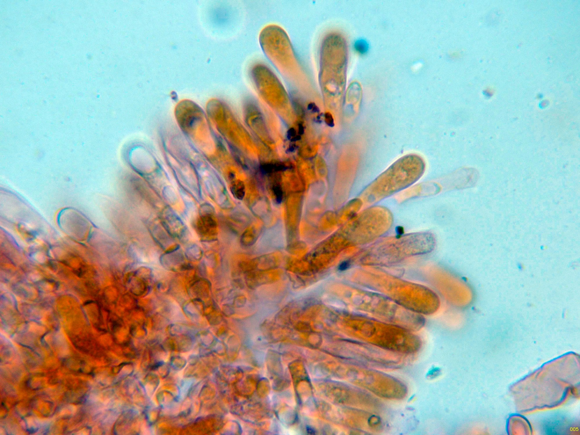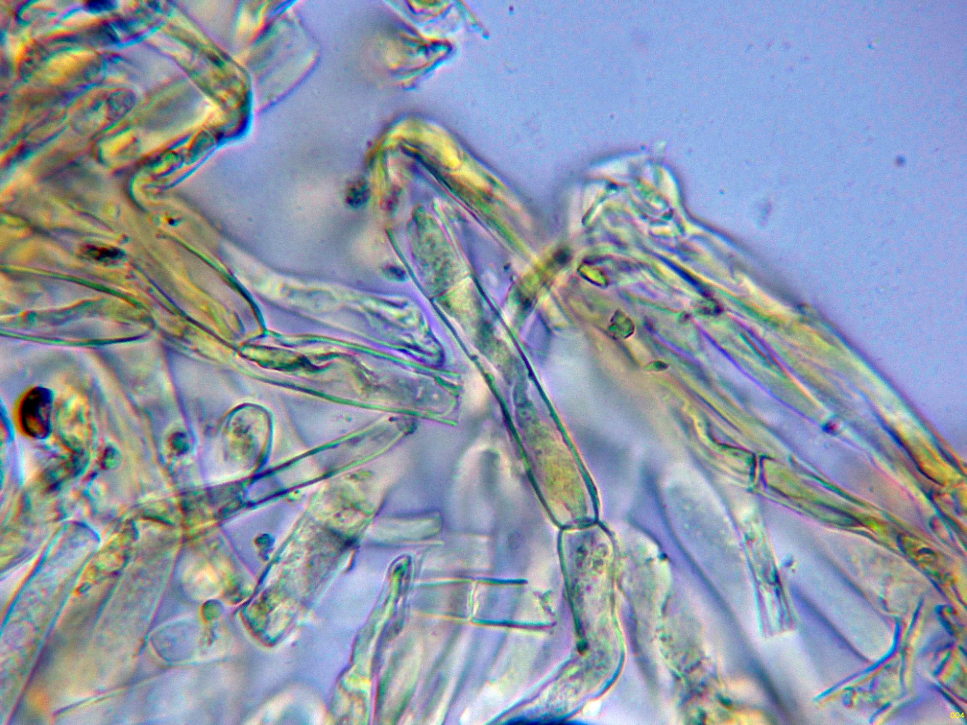 Hifas de la suprapellis en agua, filamentosas, sin fíbulas en los tabiques y con pigmento intracelular ocráceo.