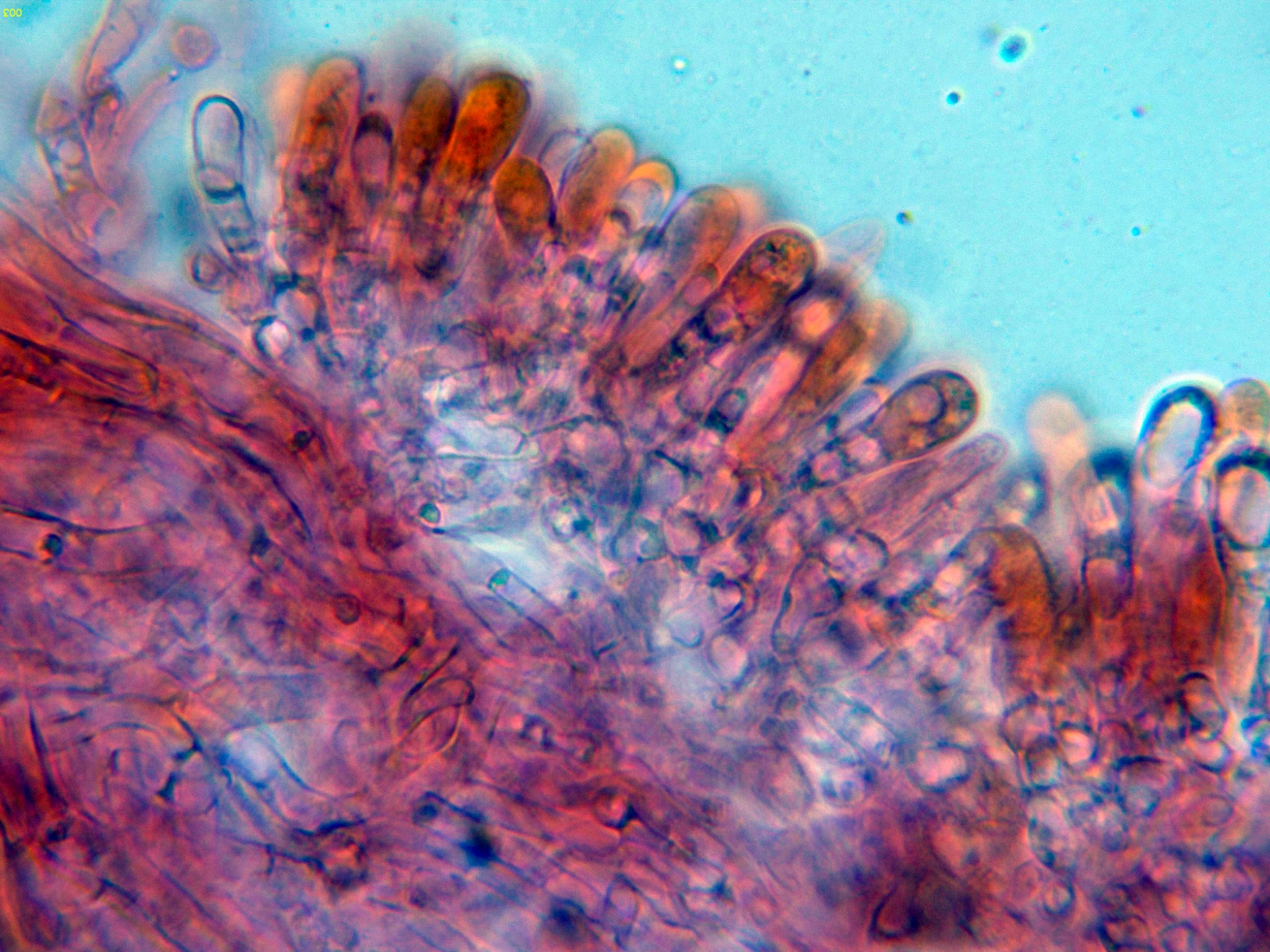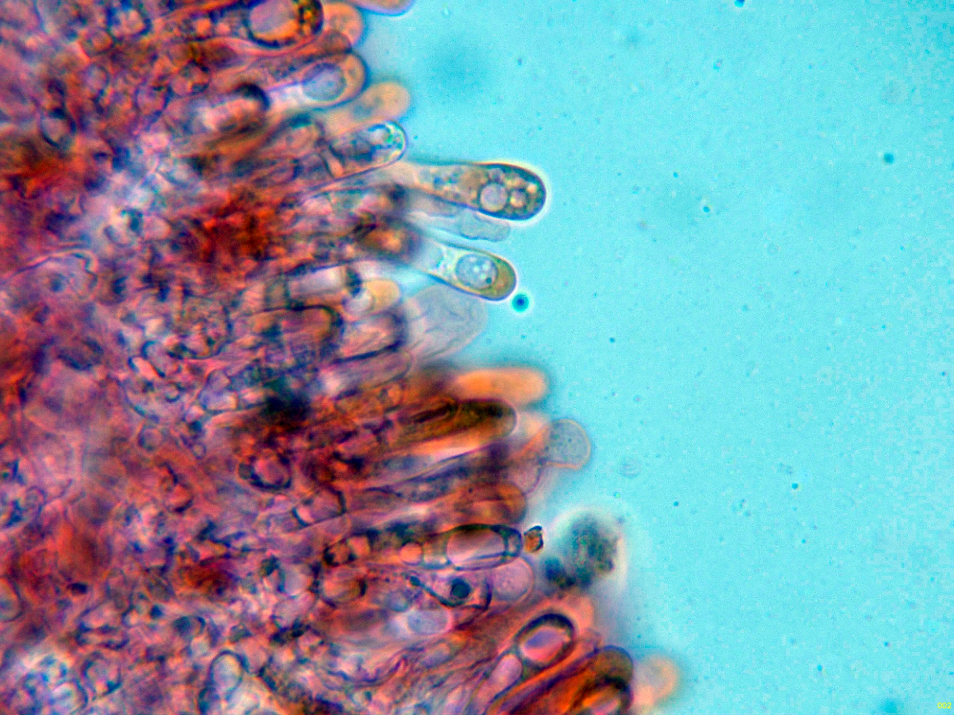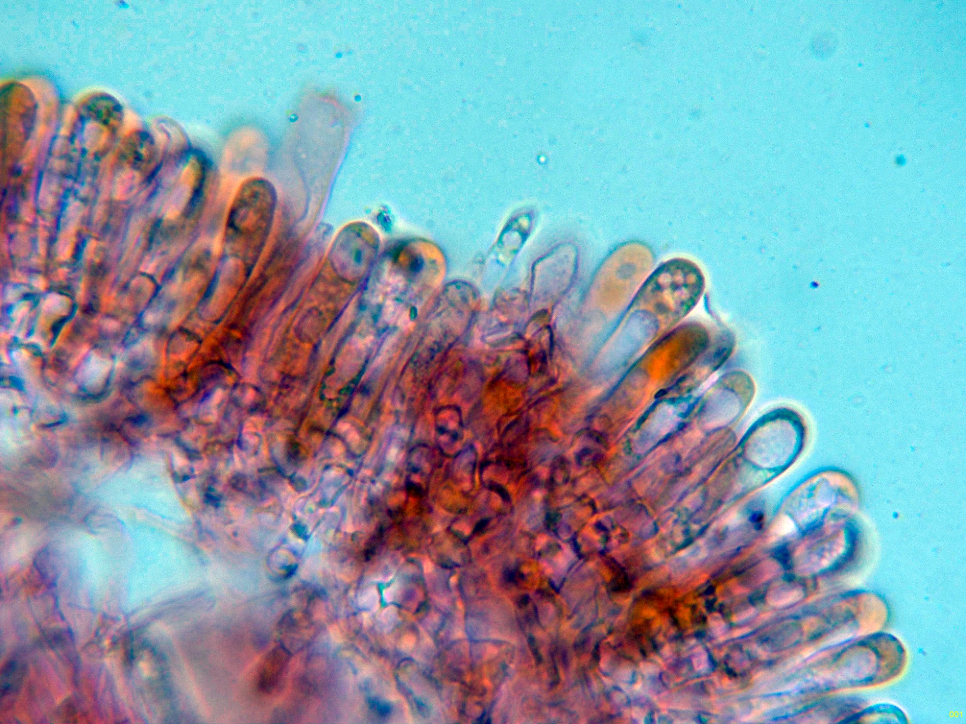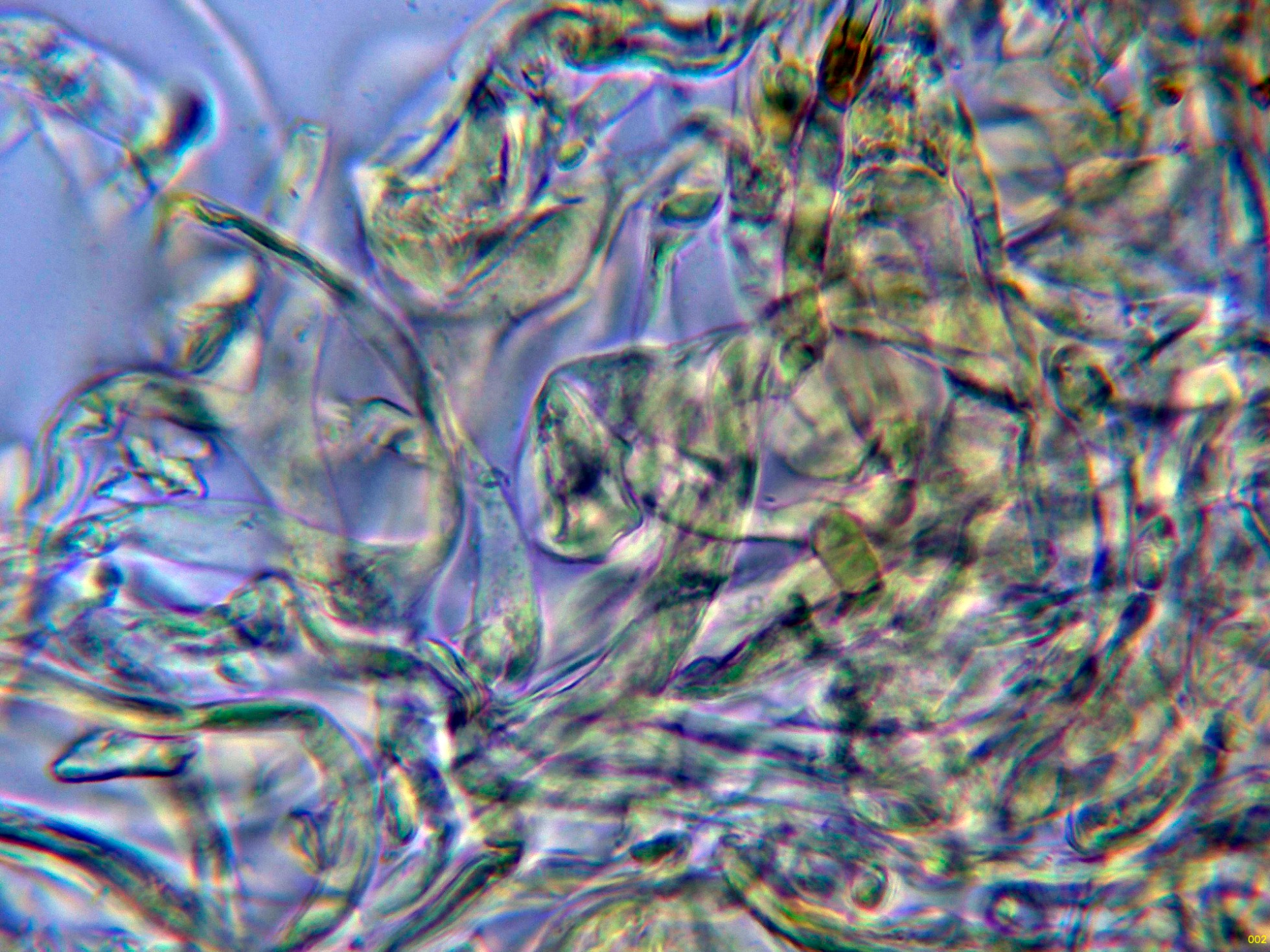 Hifas de la suprapellis en agua, filamentosas, sin fíbulas en los tabiques y con pigmento intracelular ocráceo.