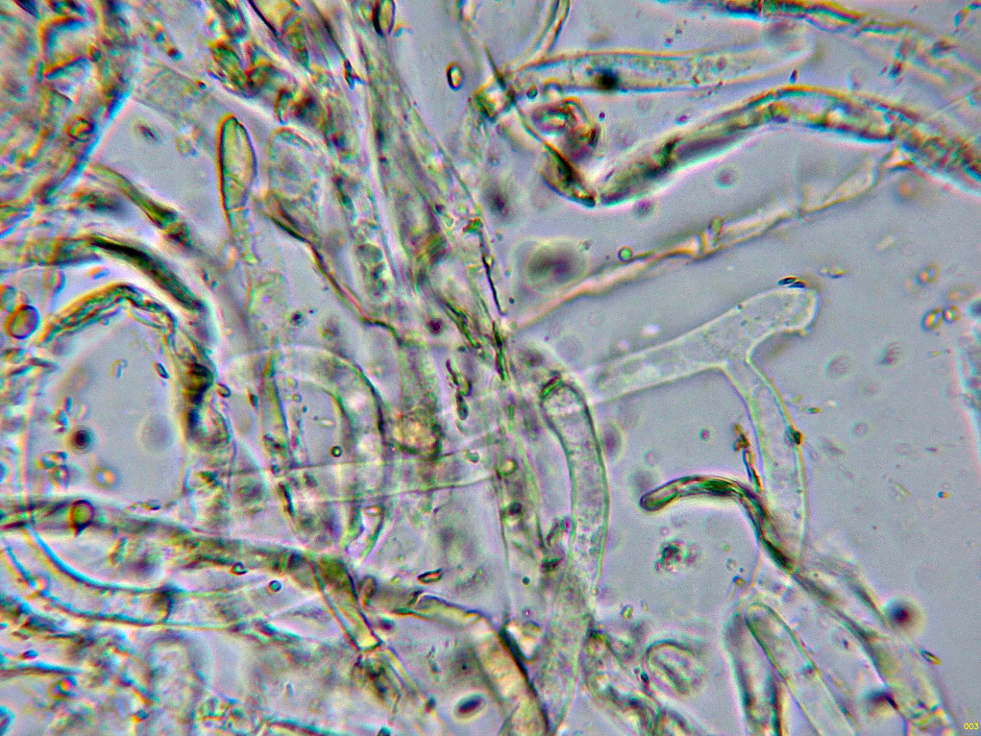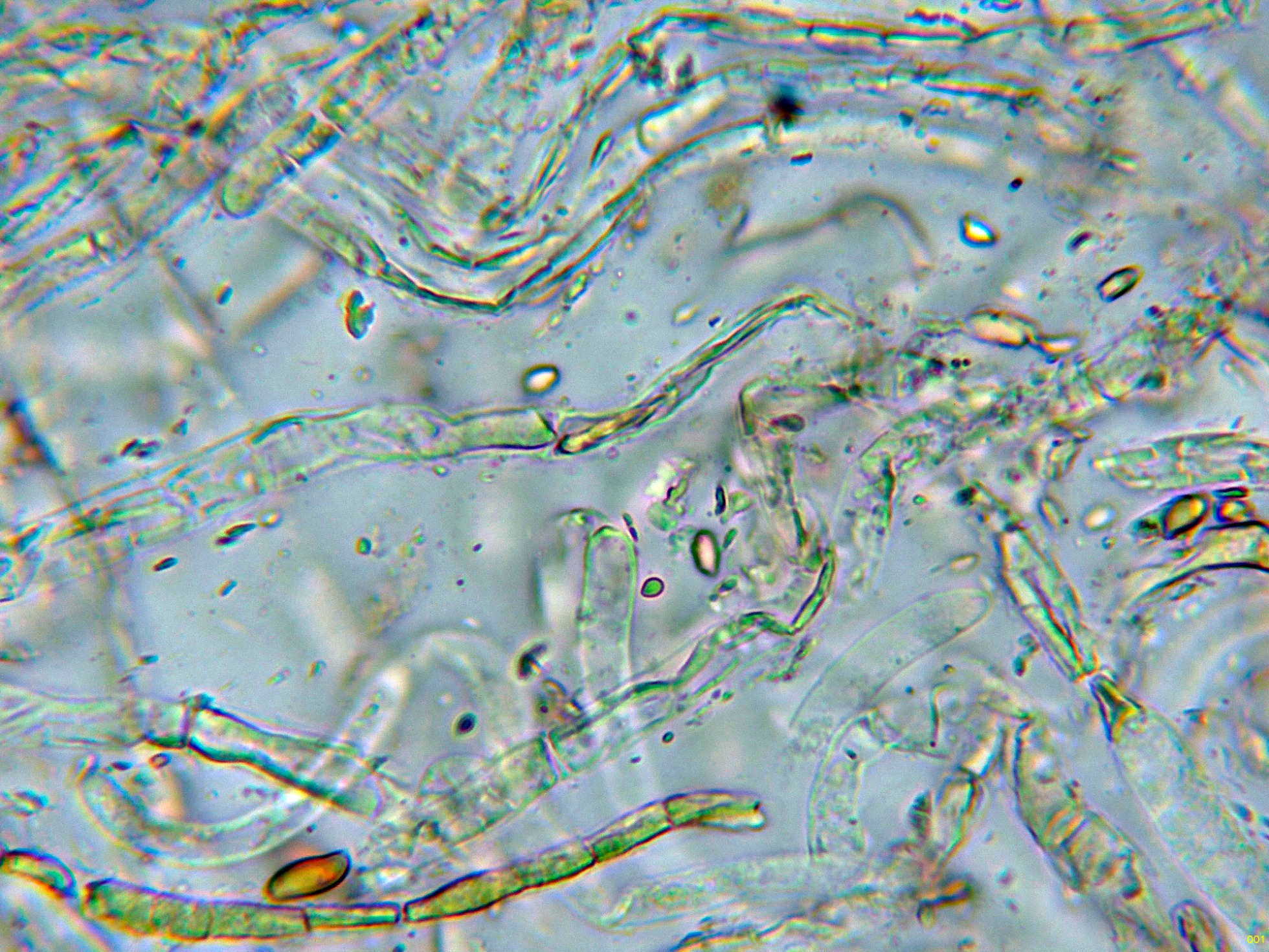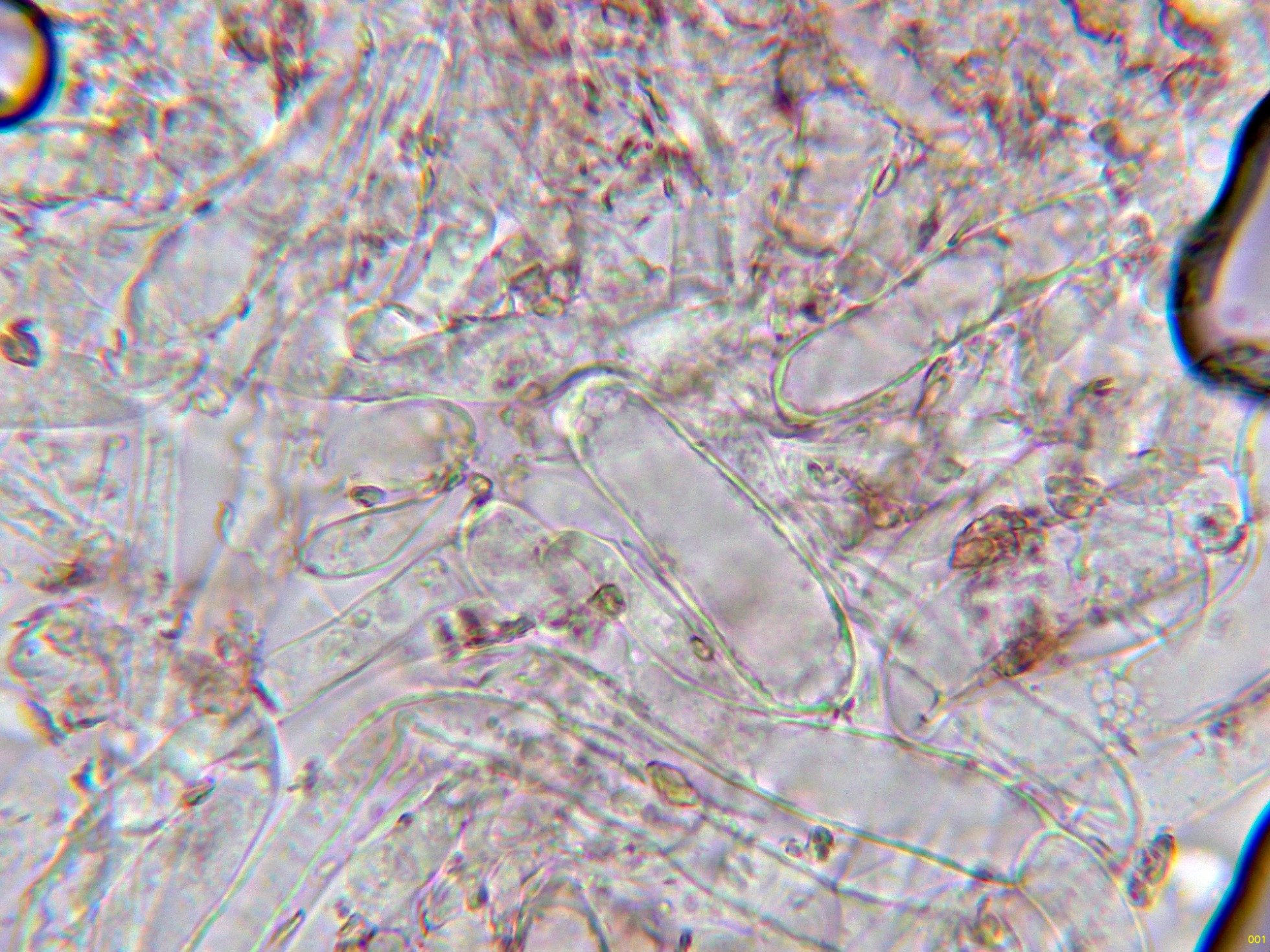 Las hifas de la suprapellis en agua, muy ligeramente pigmentadas, separadas por gelificación y sin fíbulas: