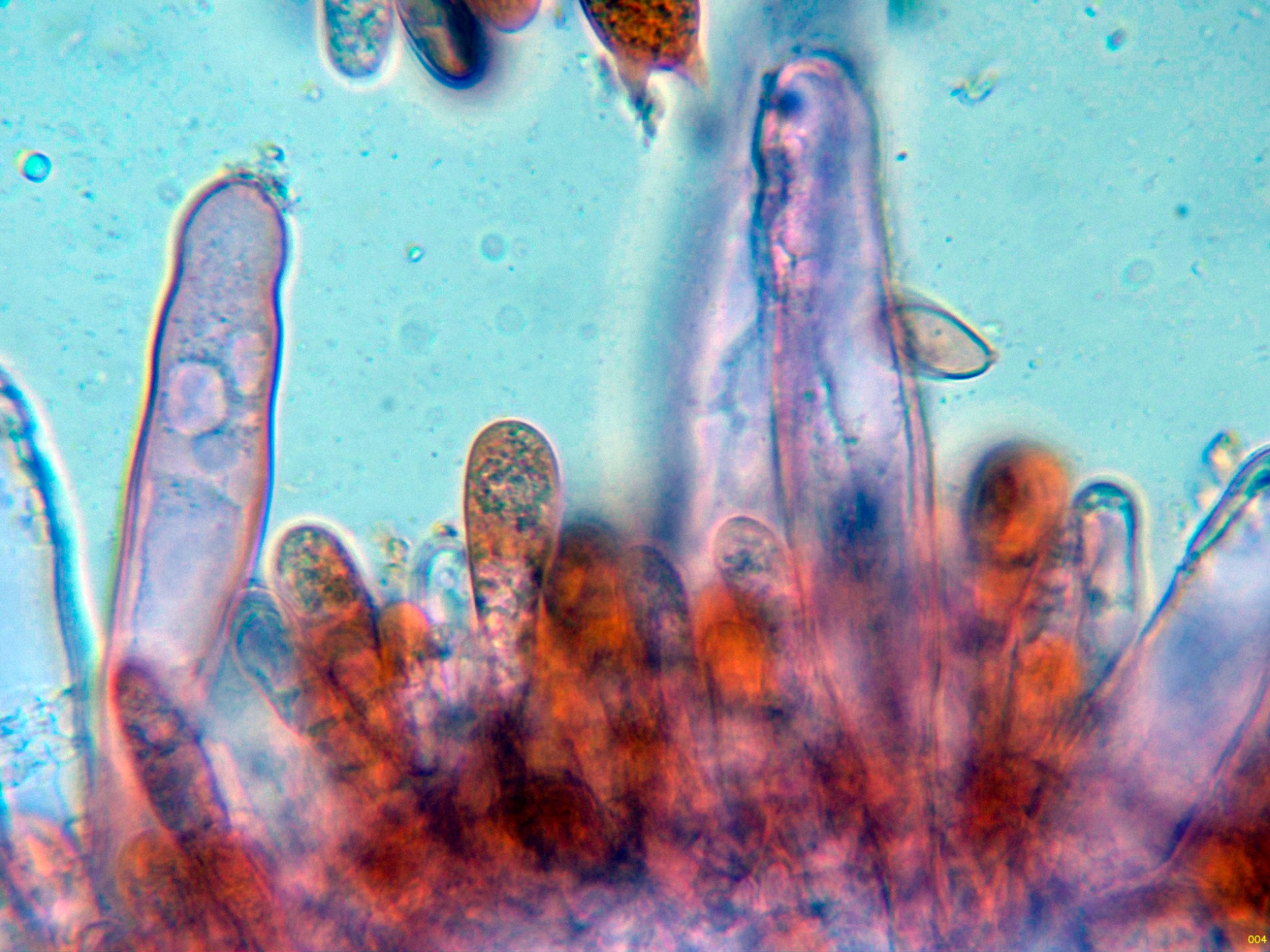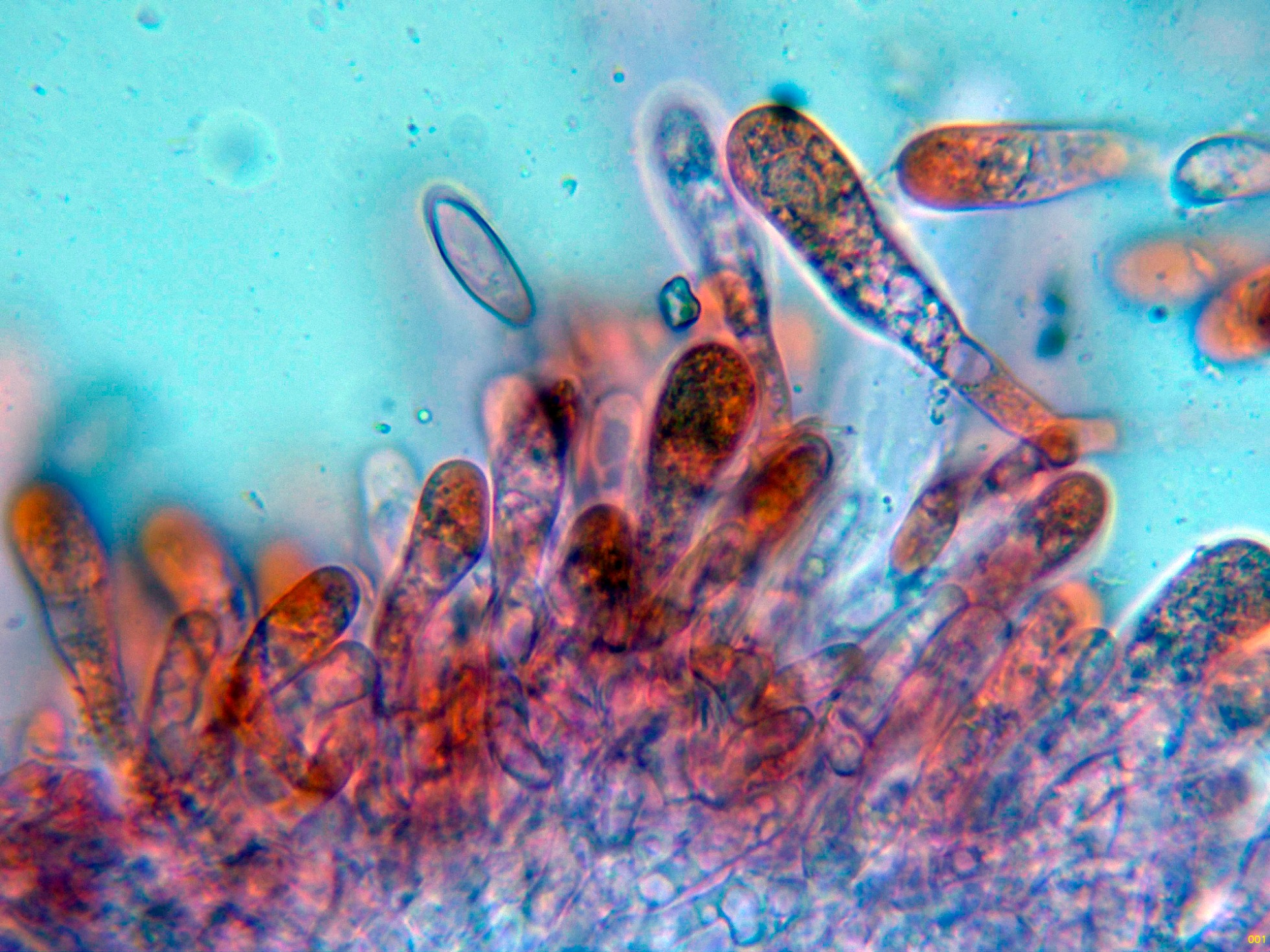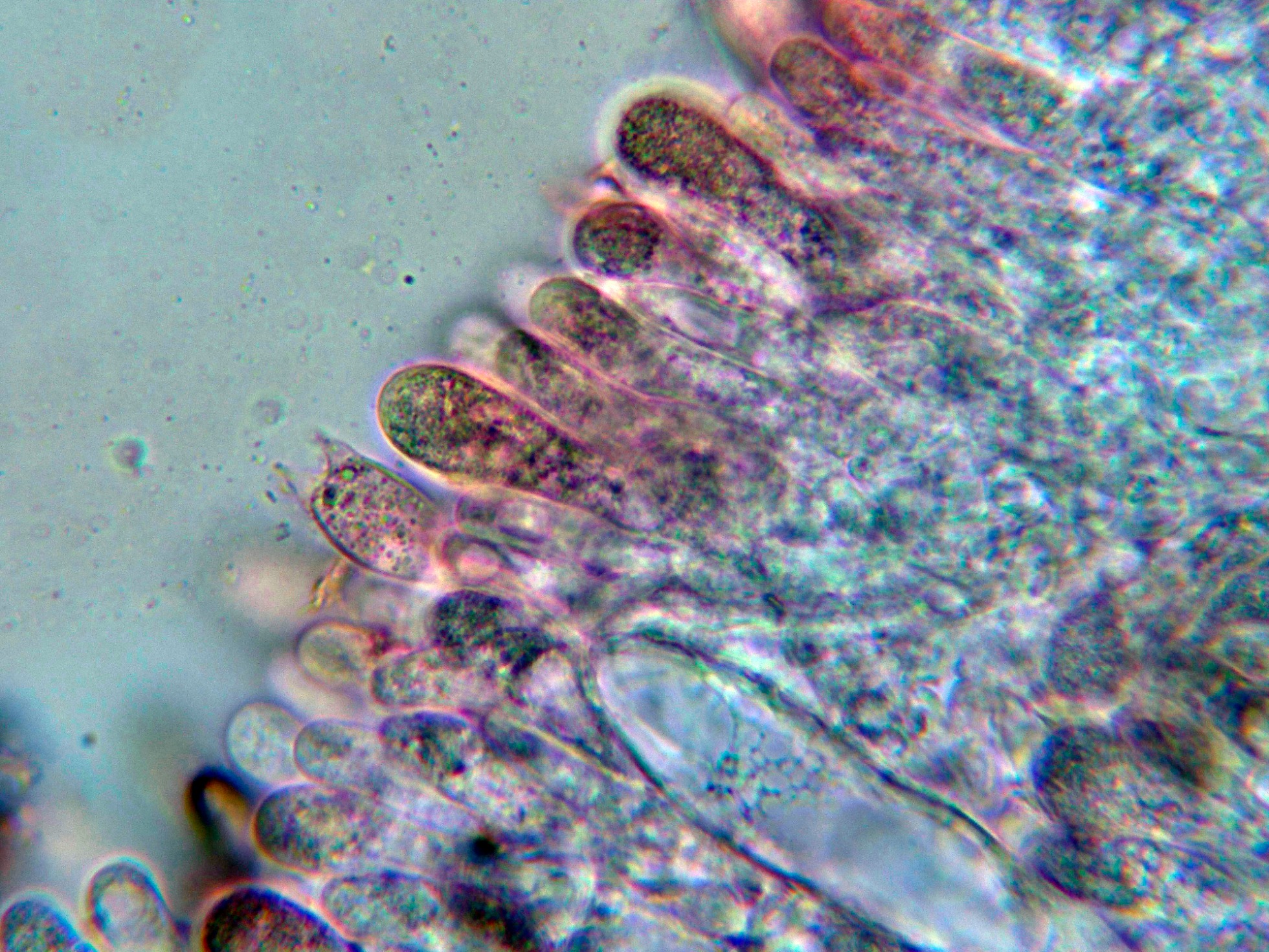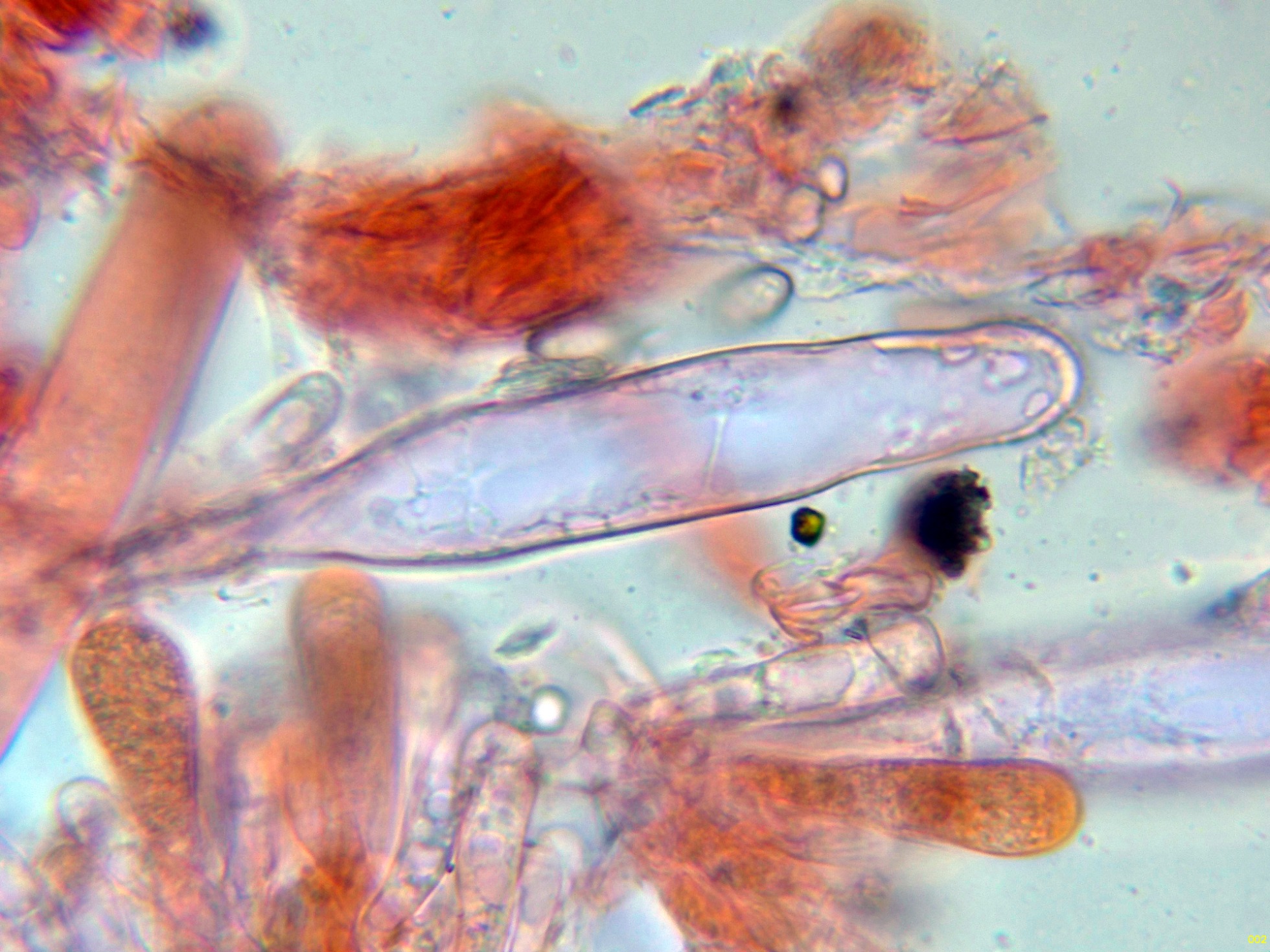 Las hifas de la suprapellis en agua, muy ligeramente pigmentadas, separadas por gelificación y sin fíbulas: