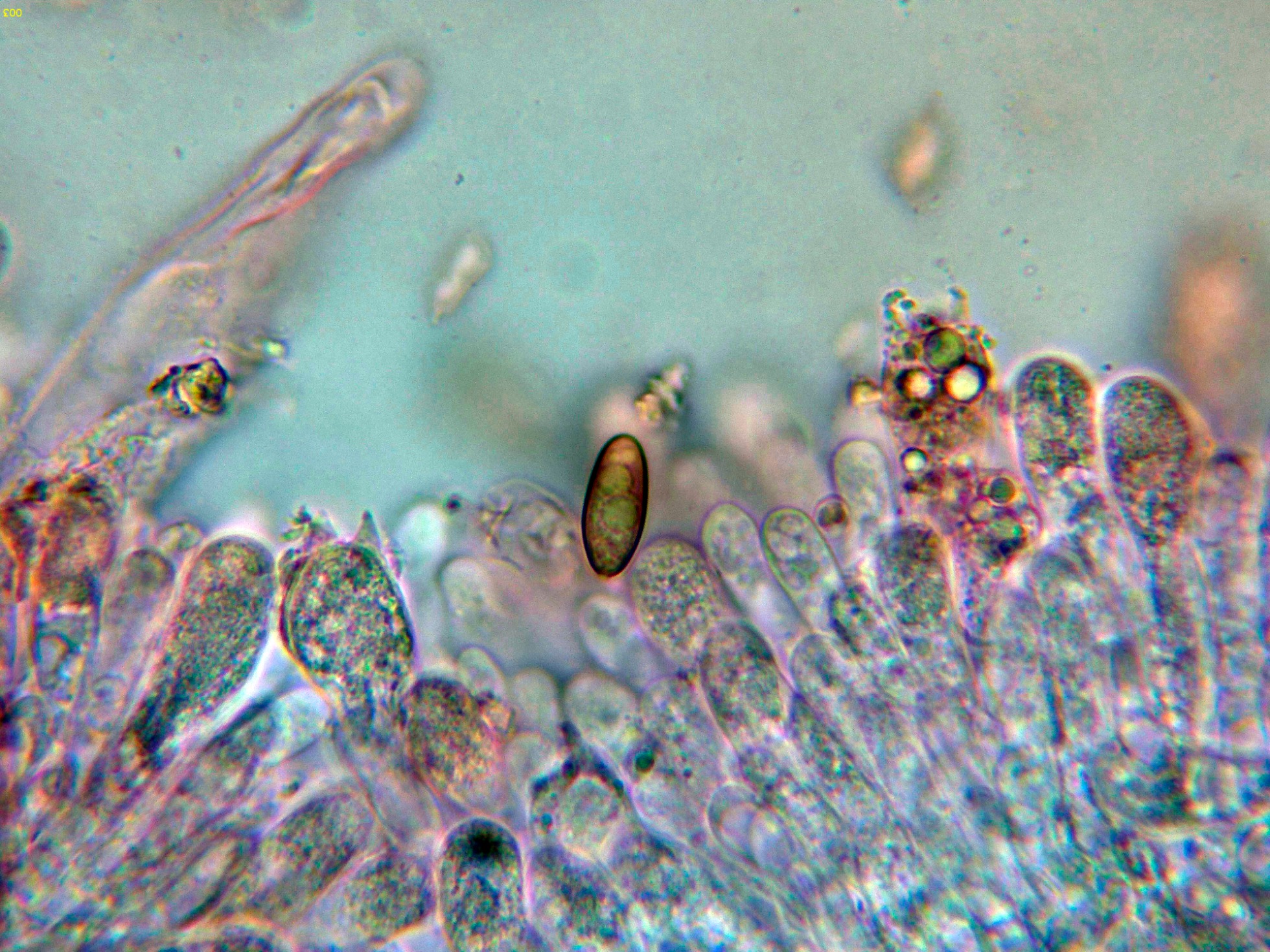 Gracias Javi por participar, según la opinión de Javier Marcos Martínez, el Chroogomphus helveticus su aparición estaría restringida solo a abetos, en el aspecto microscópico debo reconocer que prácticamente no he podido encontrar diferencias entre ambas, y aunque las medidas en longitud de las esporas coinciden, ya no lo hacen tanto en anchura con un cociente Q de 2.5 para el Chroogomphus mediterraneus y un cociente Q de 3.2 para el Chroogomphus helveticus.