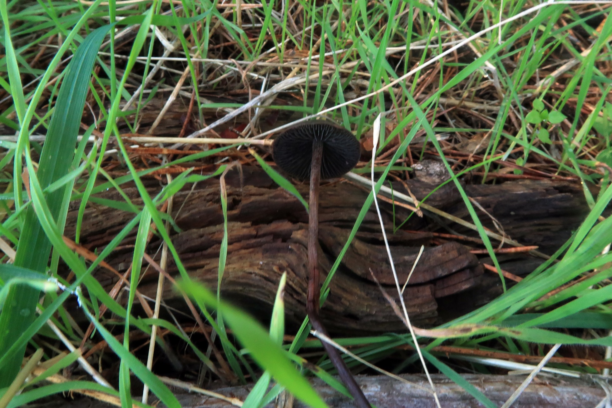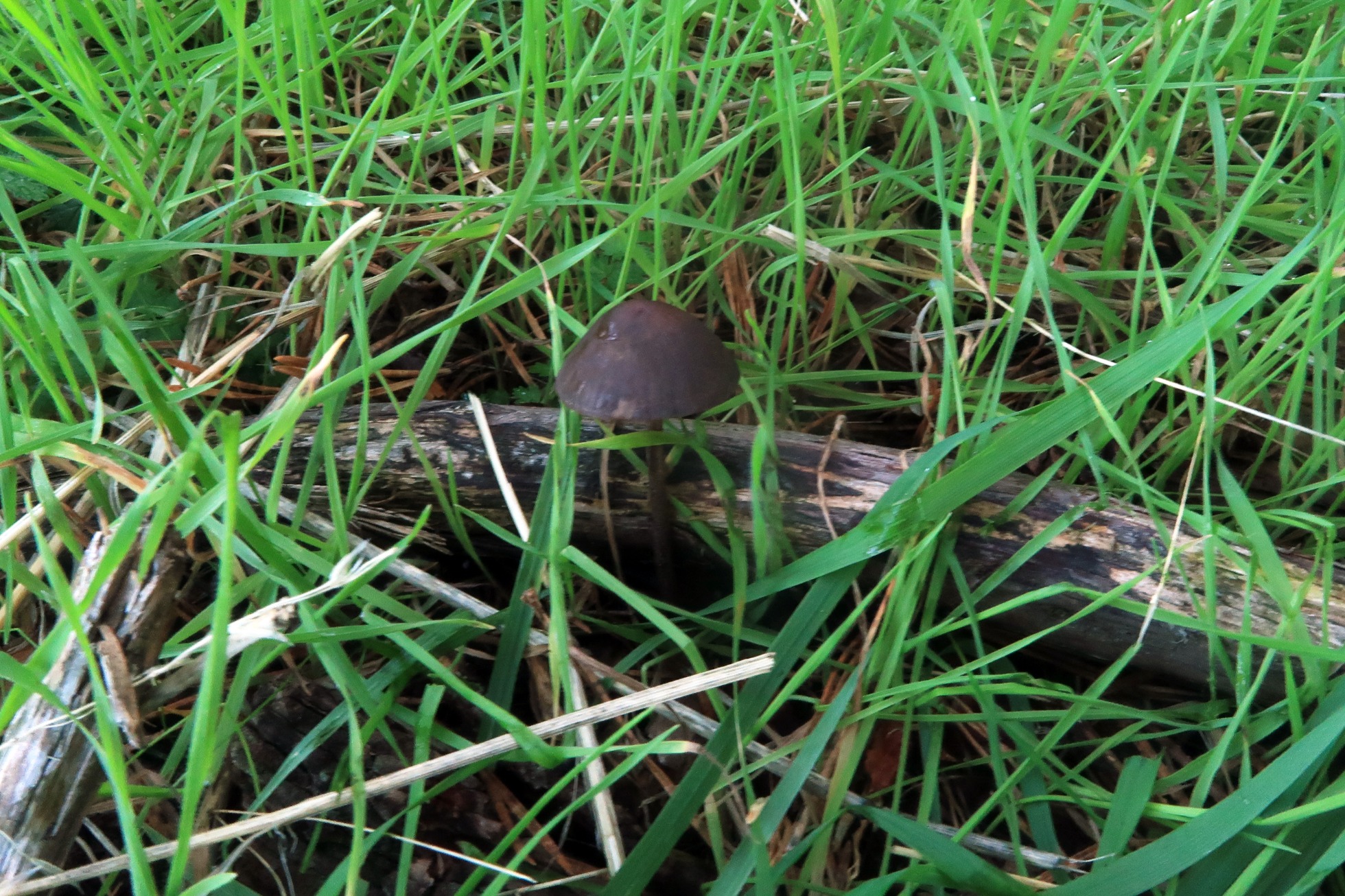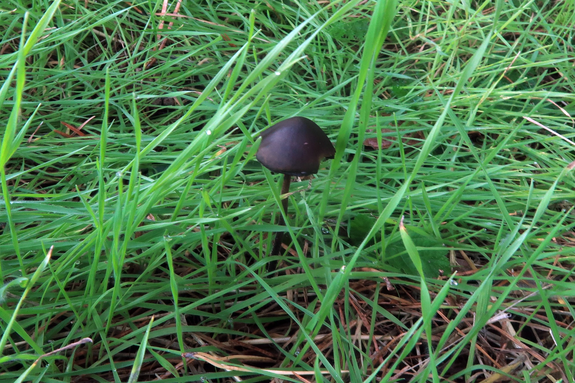 Un Panaeolus brotando entre la hierba del suelo, muy probablemente el: