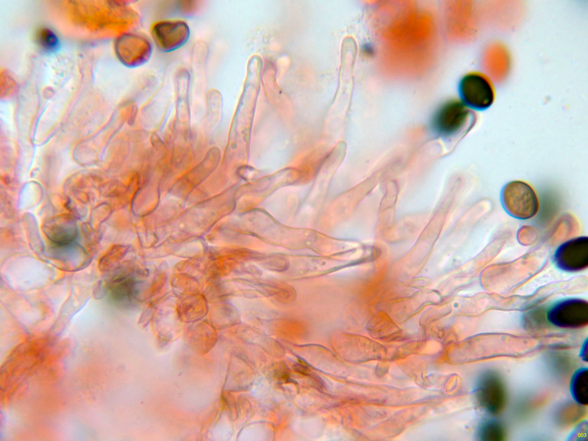 Observaciones: El Panaeolus acuminatus muchos autores lo sinonimizan con el Panaeolus rickenii, incluso se consideran sinónimos en Funga Nordica, además siendo honesto no encuentro diferencia entre ambos a nivel microscópico, sin embargo ambos aparecen por separado en Index Fungorum, y ambos se separarían por presentar el Panaeolus acuminatus un sombrero más ancho que alto, todo lo contrario del Panaeolus rickenii, con un sombrero más alto que ancho y un hábitat ya más coprófilo que el Panaeolus acuminatus, brotando directamente sobre excrementos.