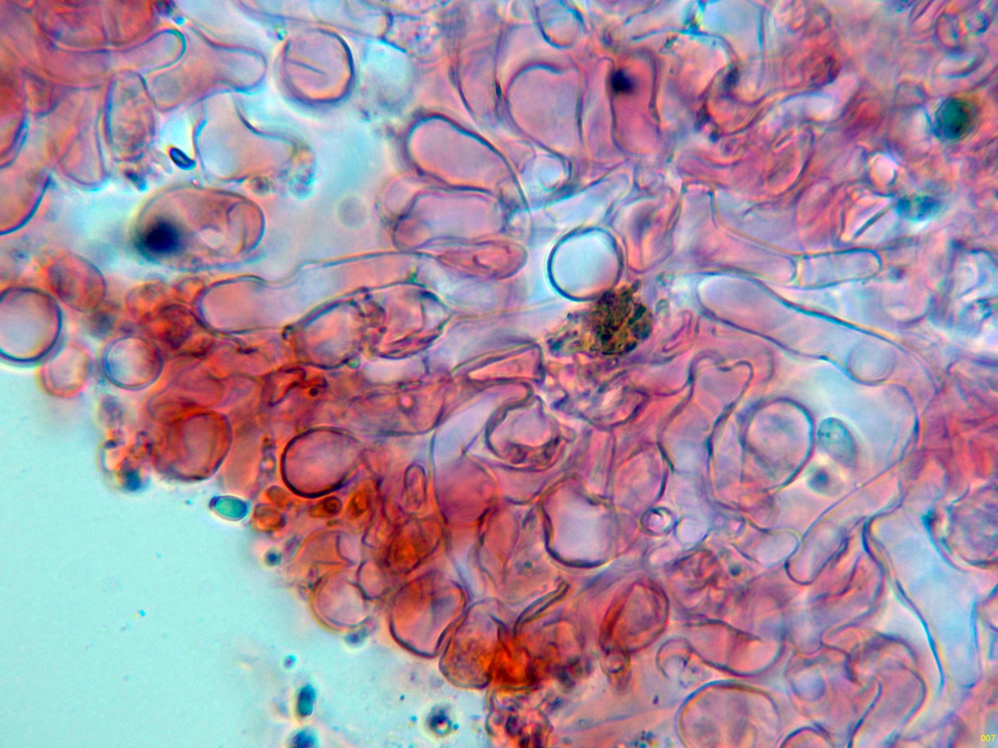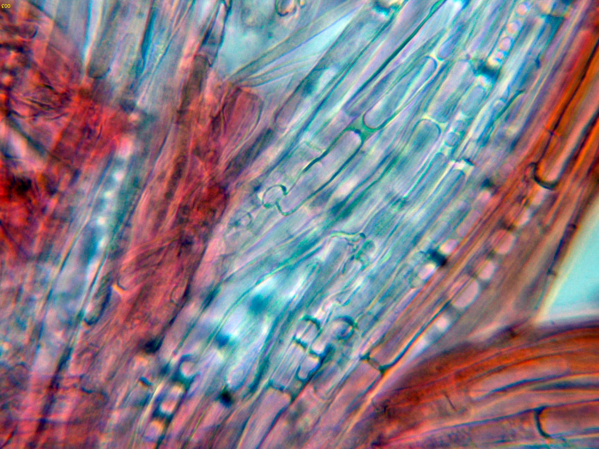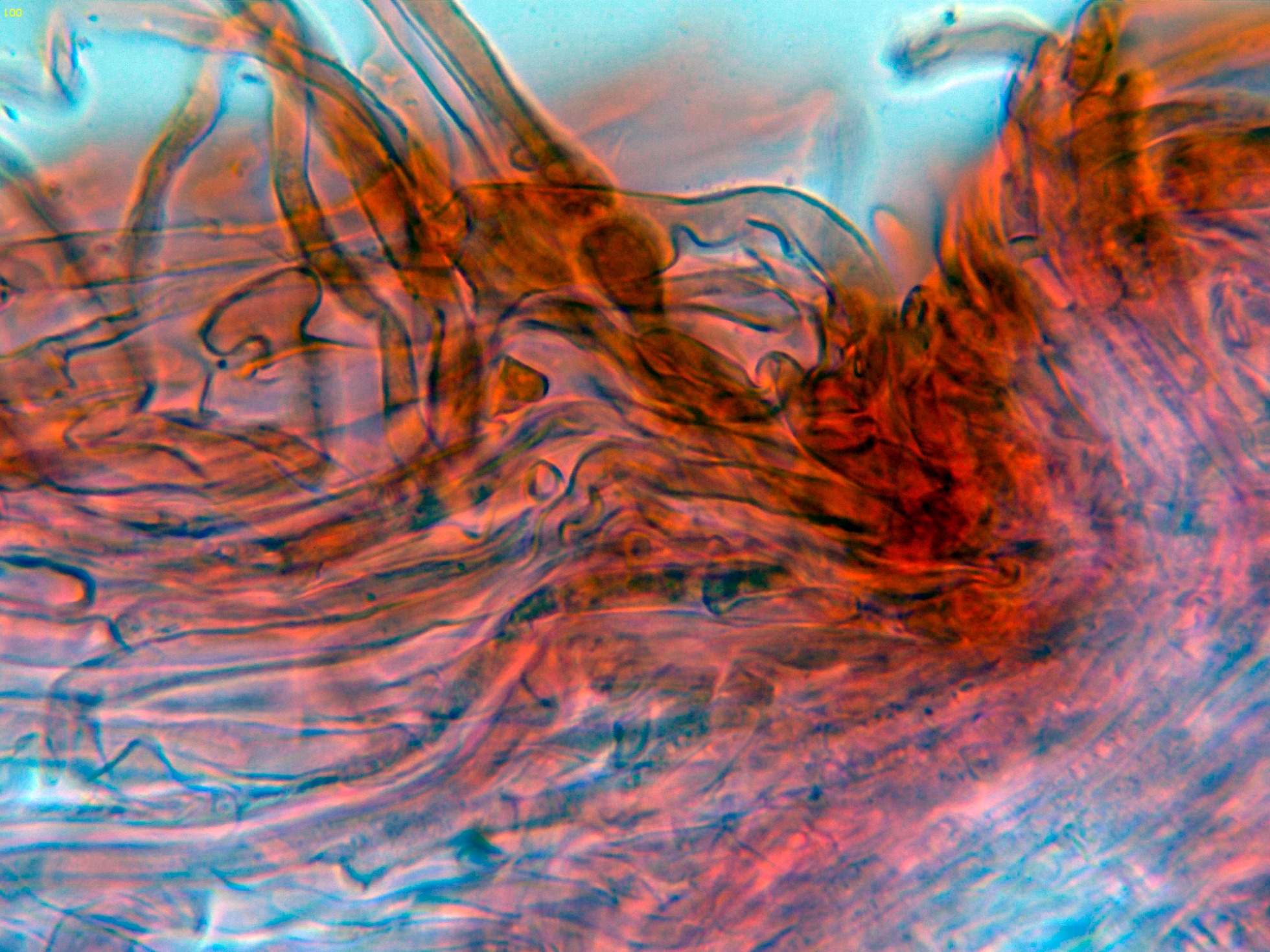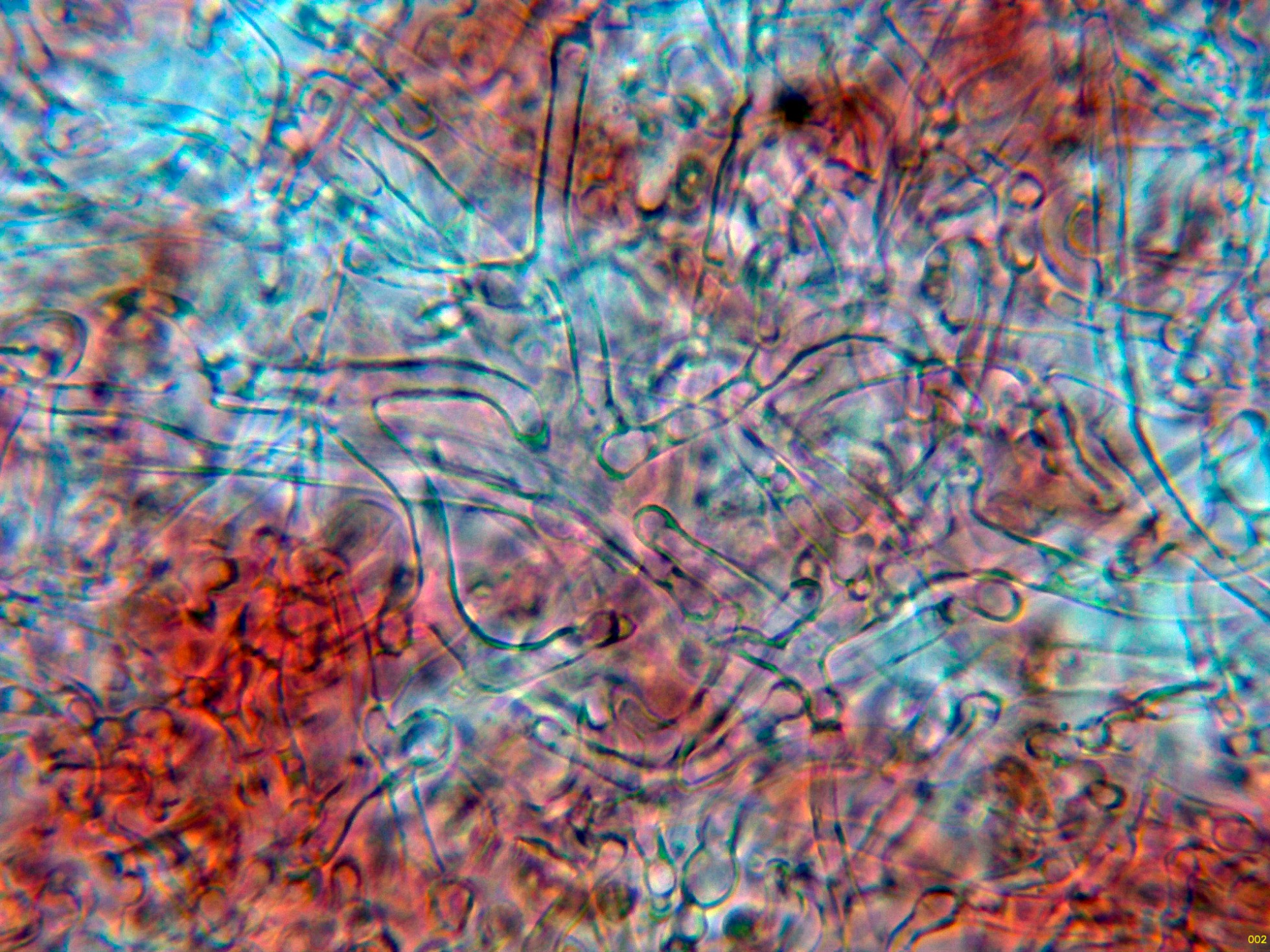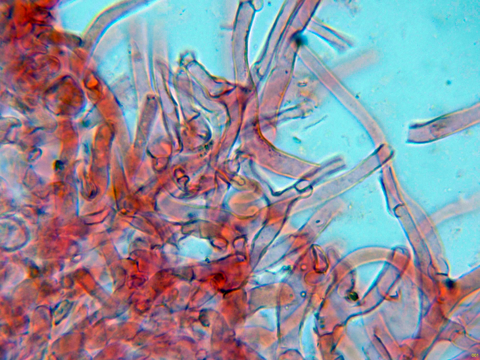 Por debajo de estas en la subpellis ya unas hifas filamentosas y fibuladas: