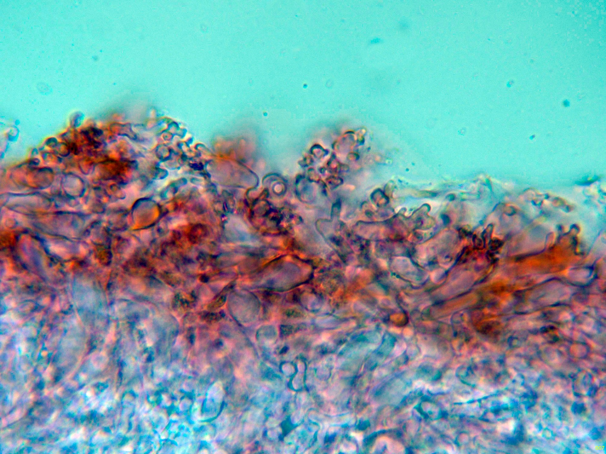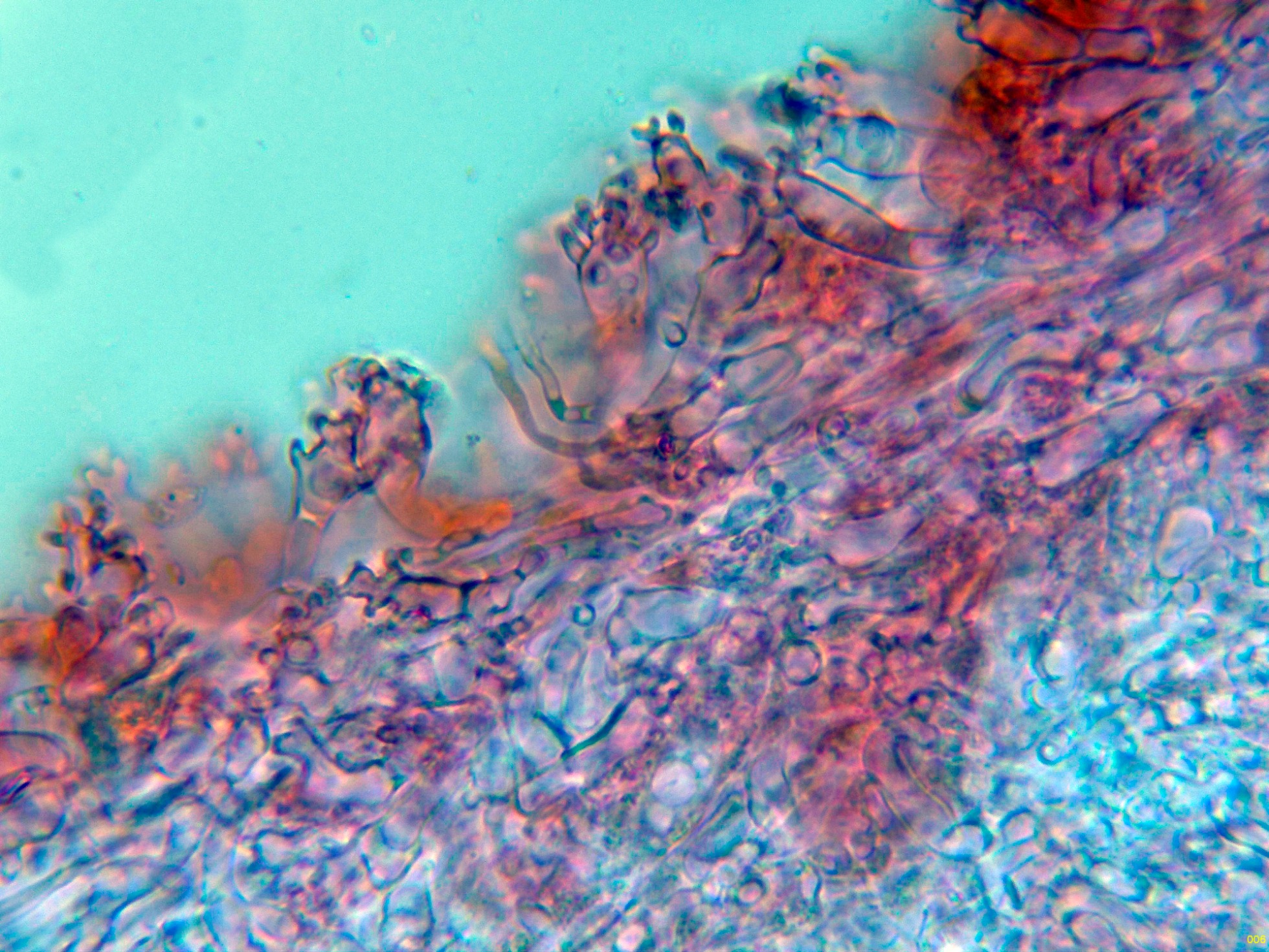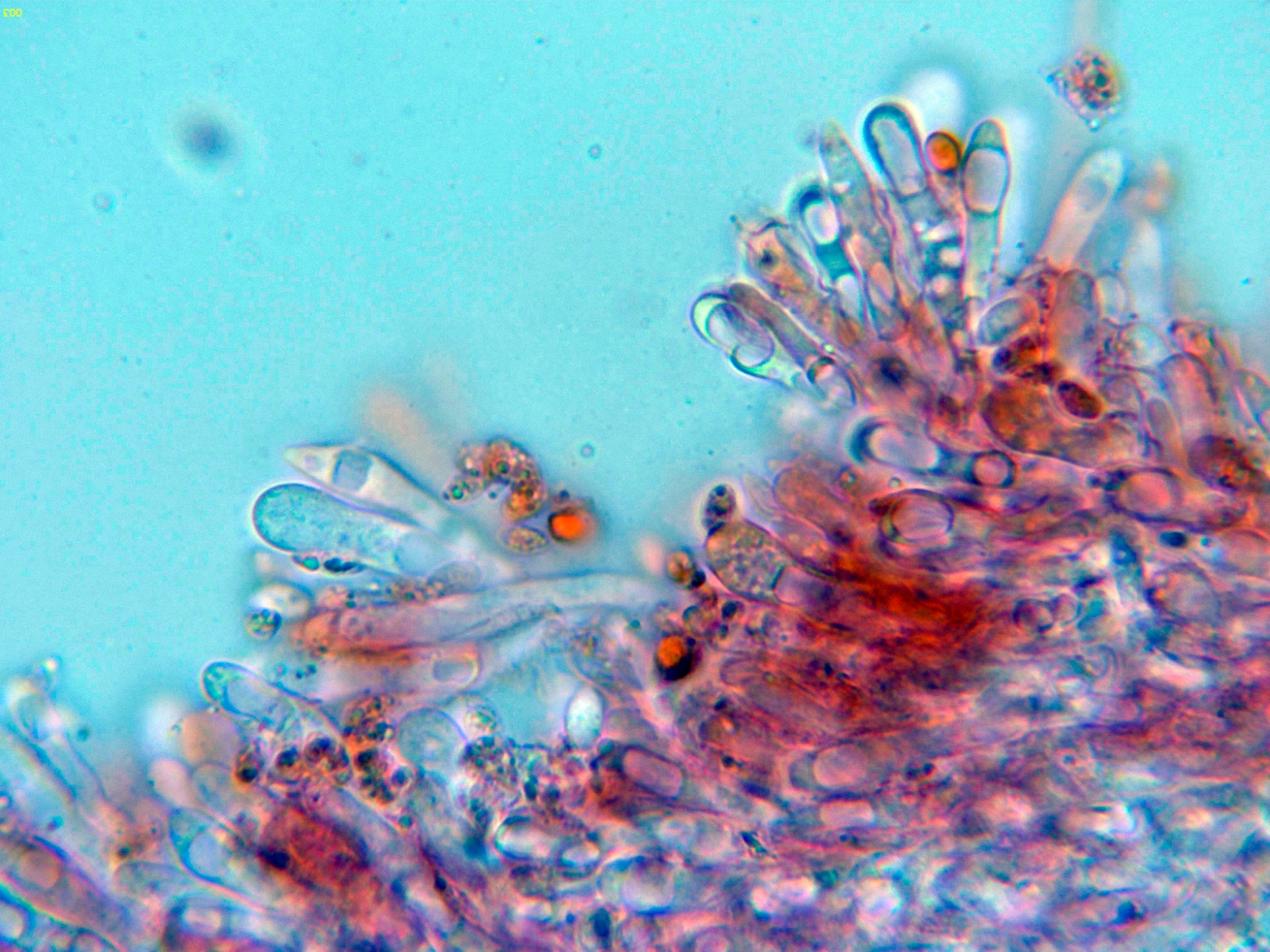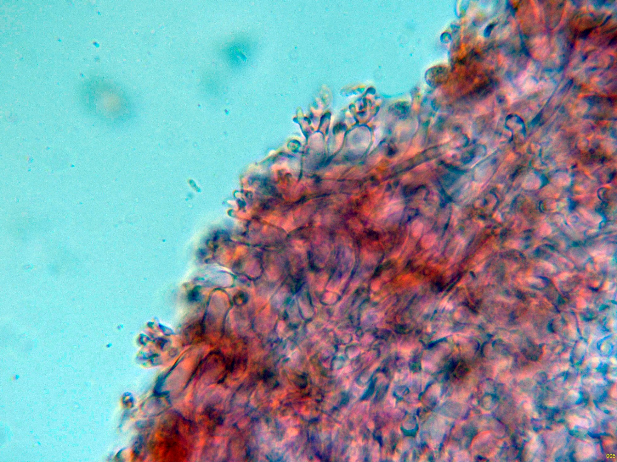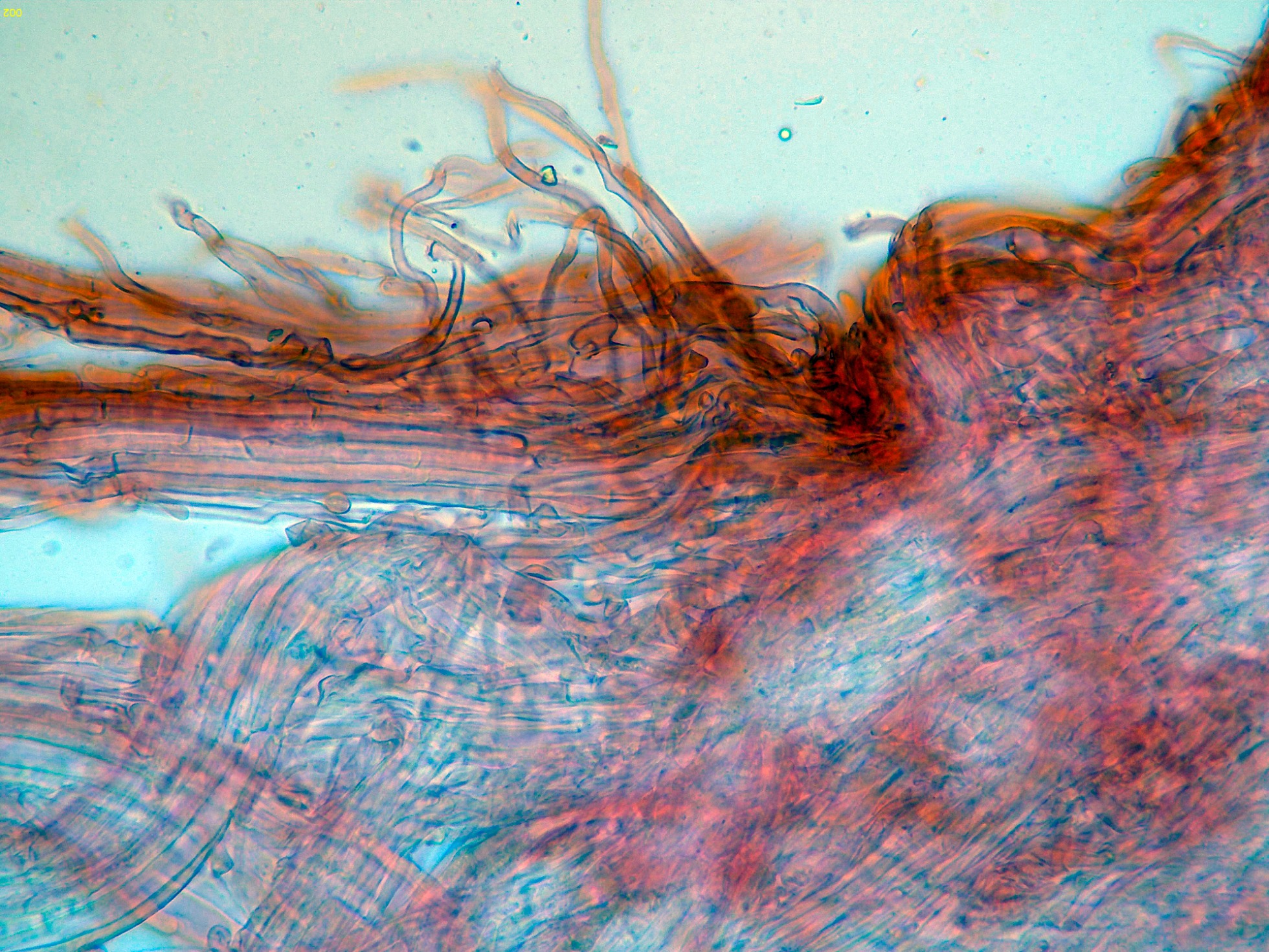 Por debajo de estas en la subpellis ya unas hifas filamentosas y fibuladas: