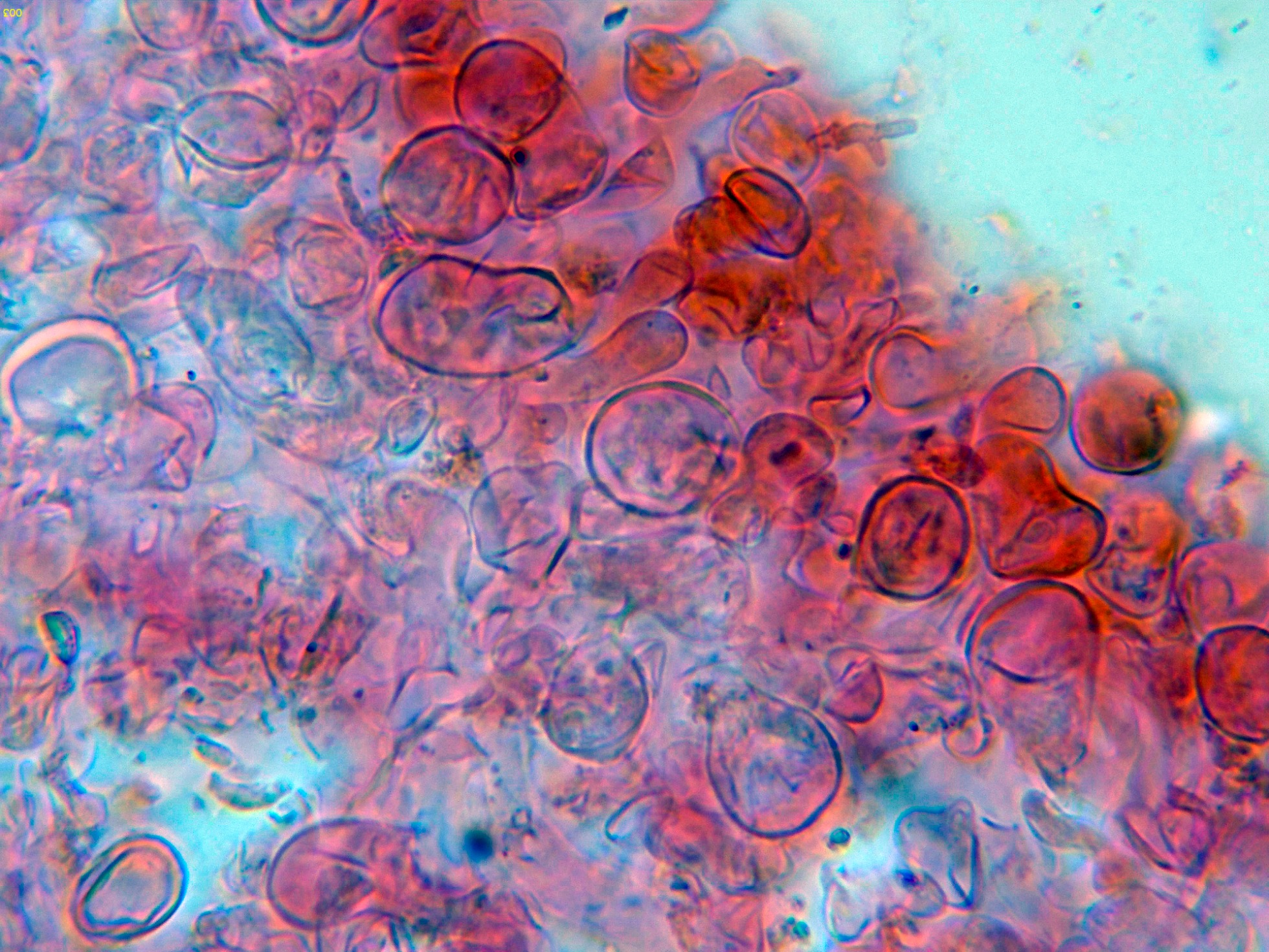 Un hongo con olor a ajo, recolectado el 29 de septiembre, que solo había estudiado en una ocasión allá por 2018, y del que solo disponía de una microscopía realizada en 10 minutos, y en la que que me faltaban muchos detalles.